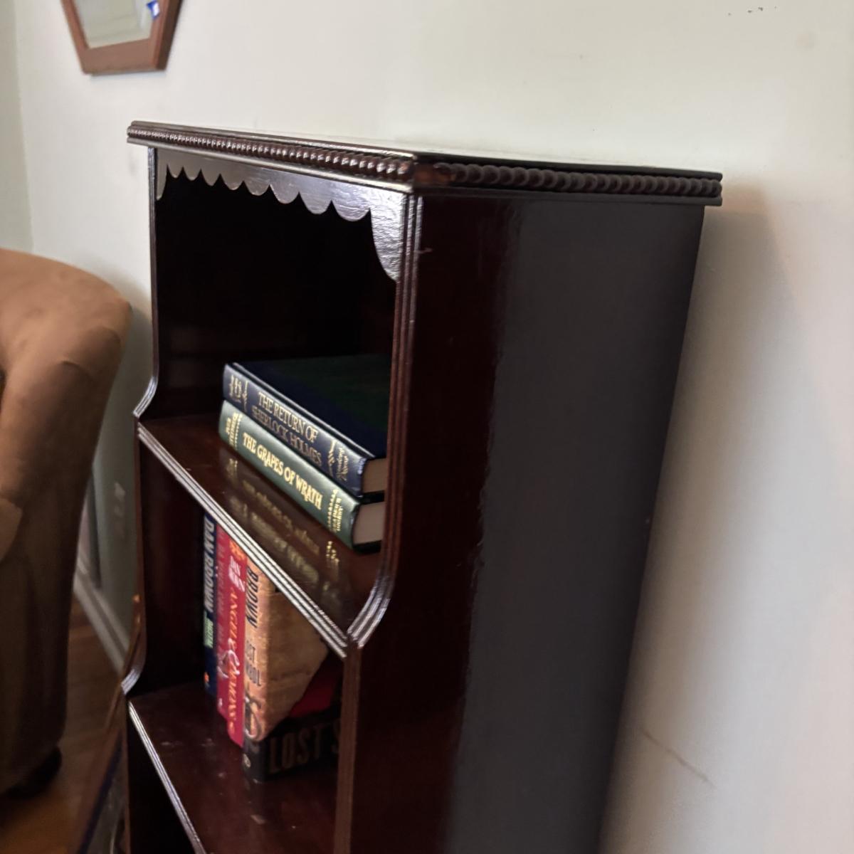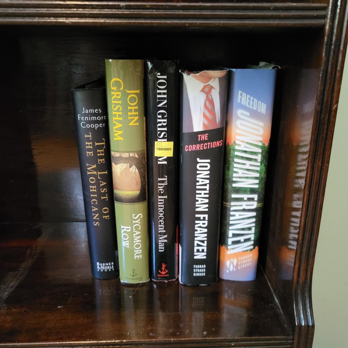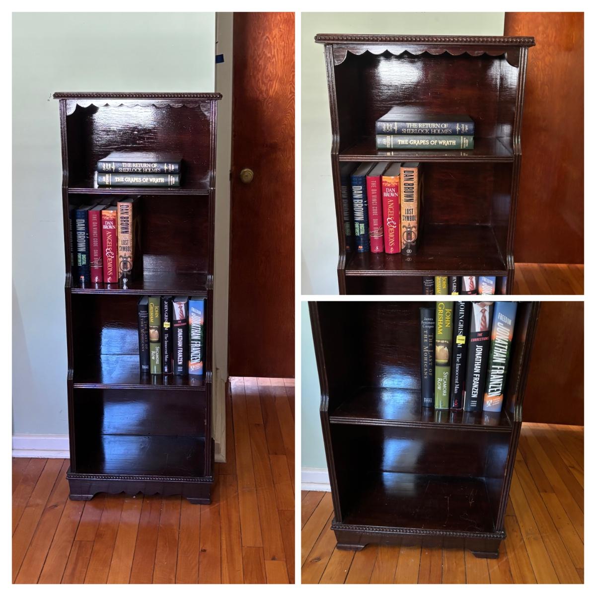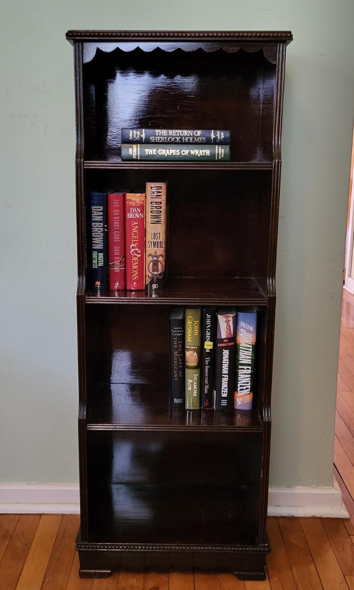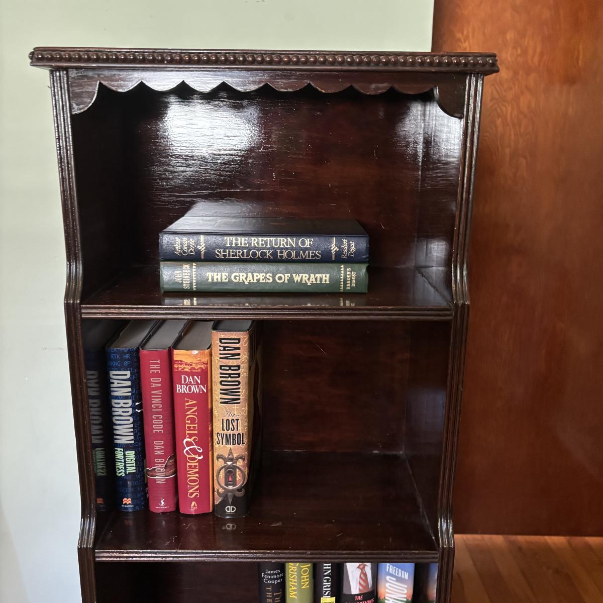 LOT 48: Vintage Bookcase with Variously Titled Books Featuring The Da Vinci Code, Grapes of Wrath and More