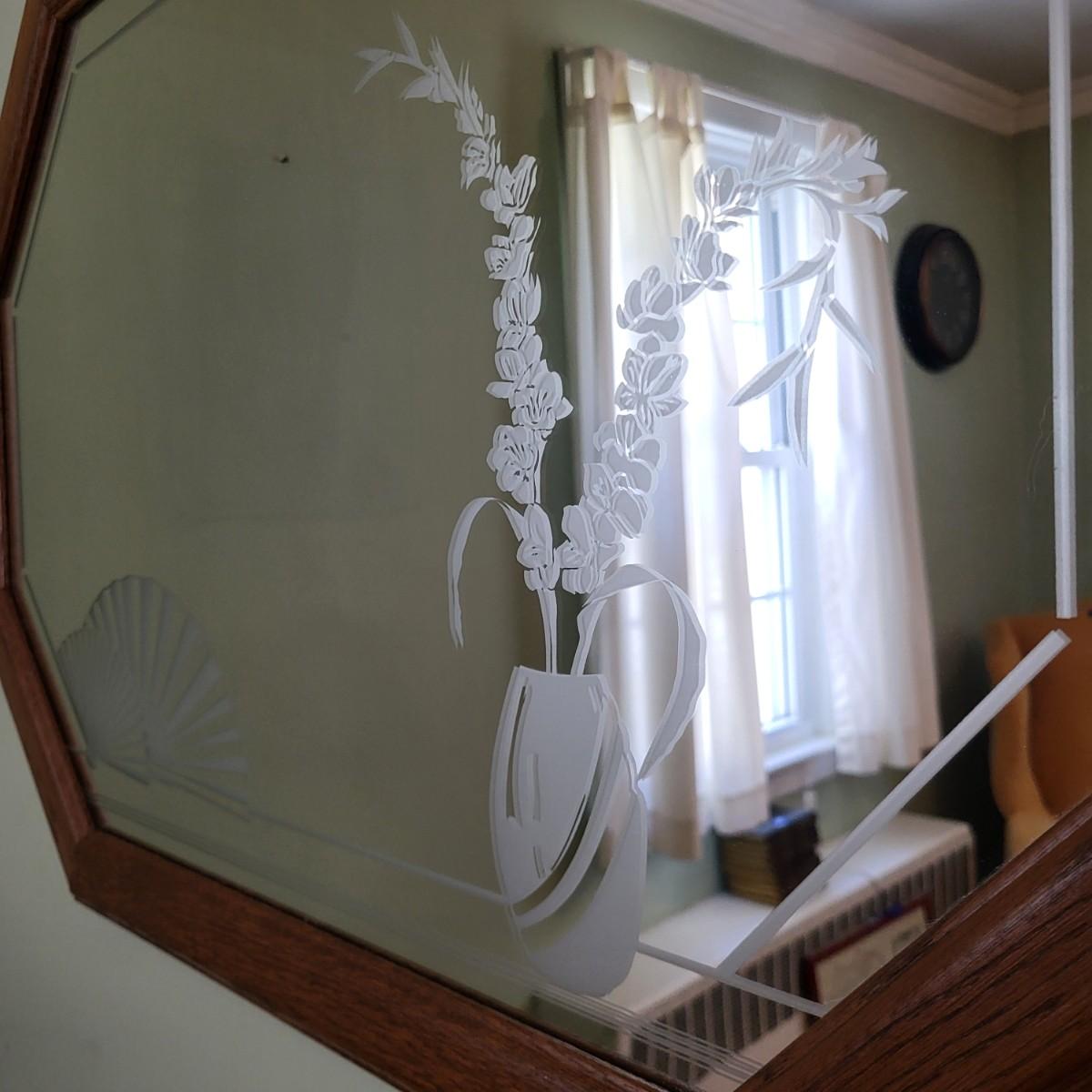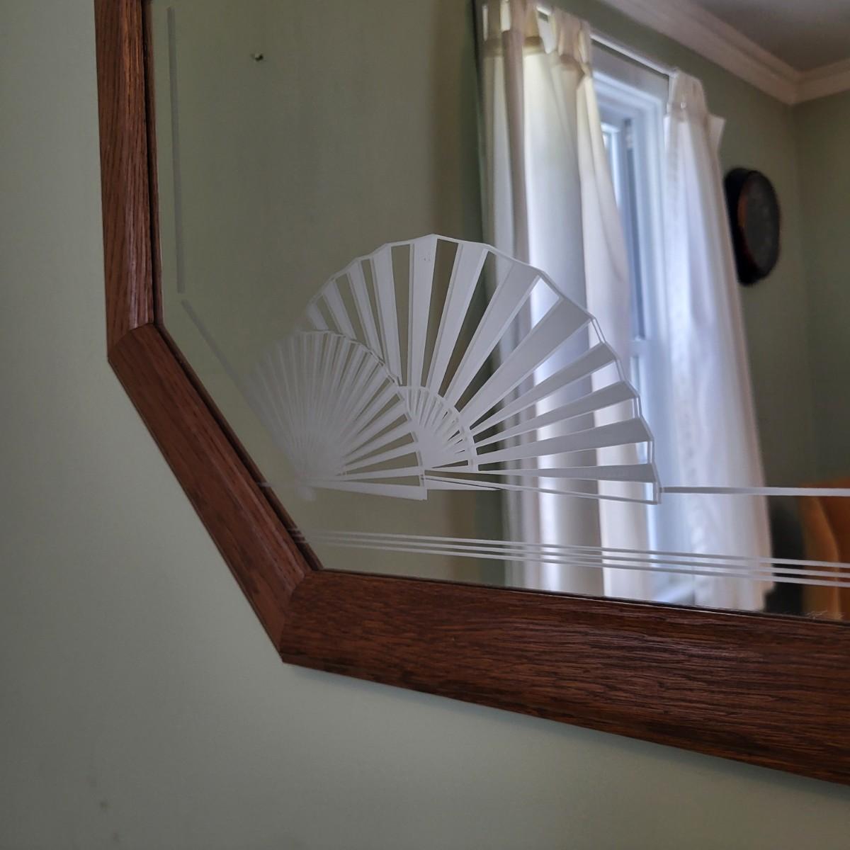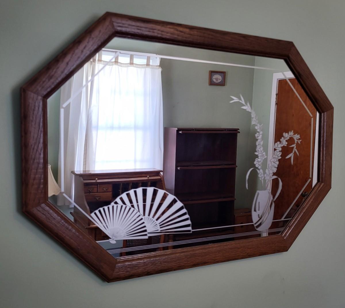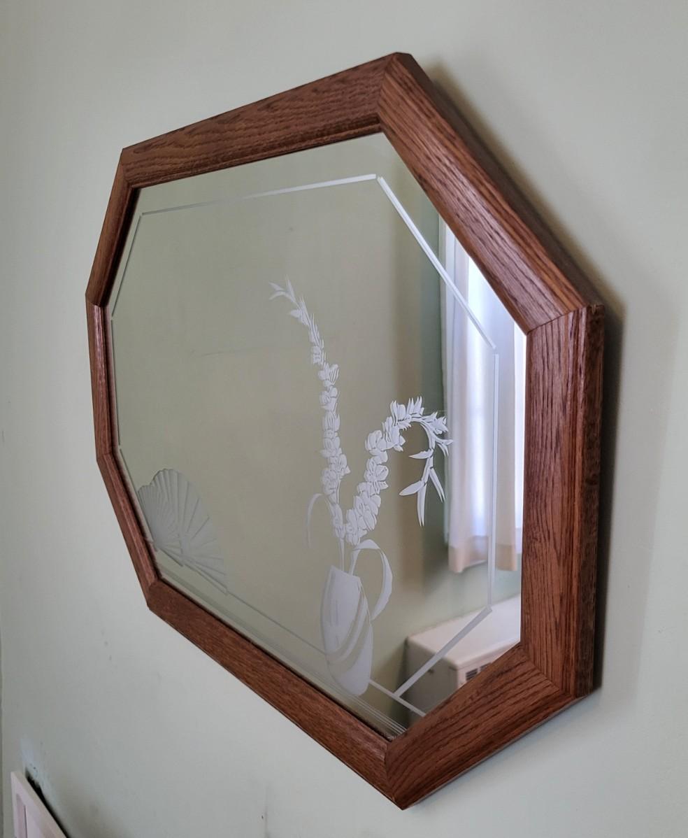 LOT 49: Vintage 1980s Etched Octagonal Wooden Framed Wall Mirror