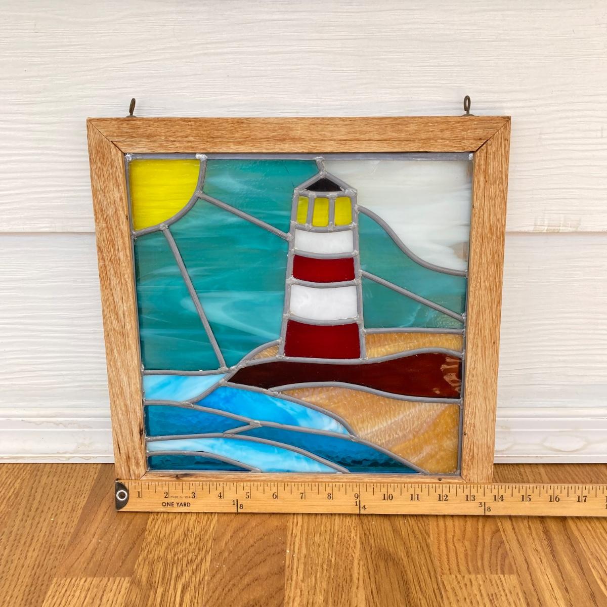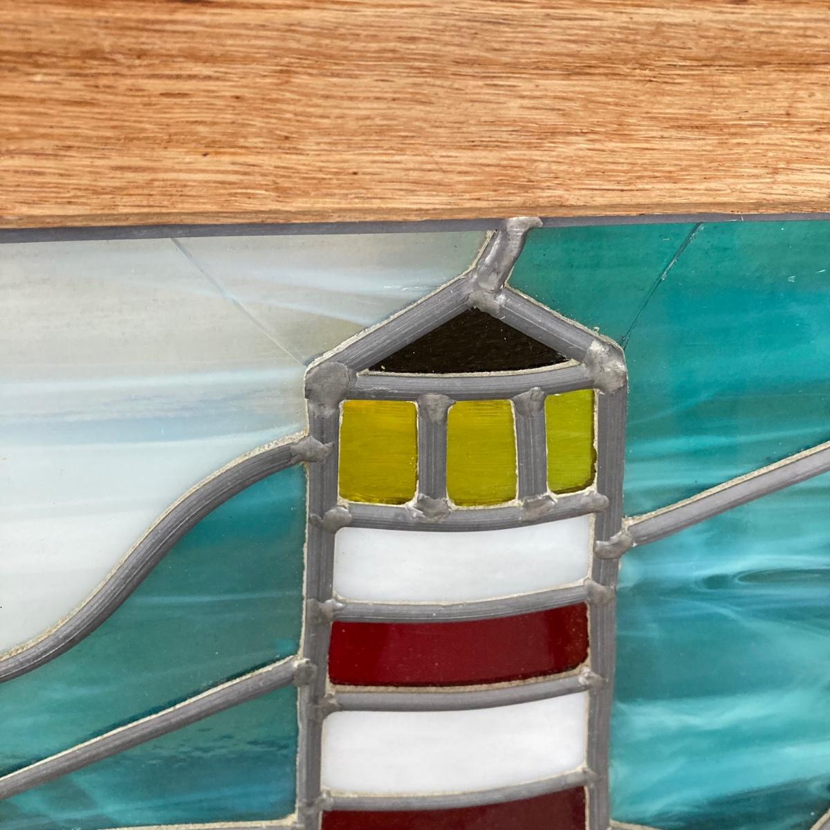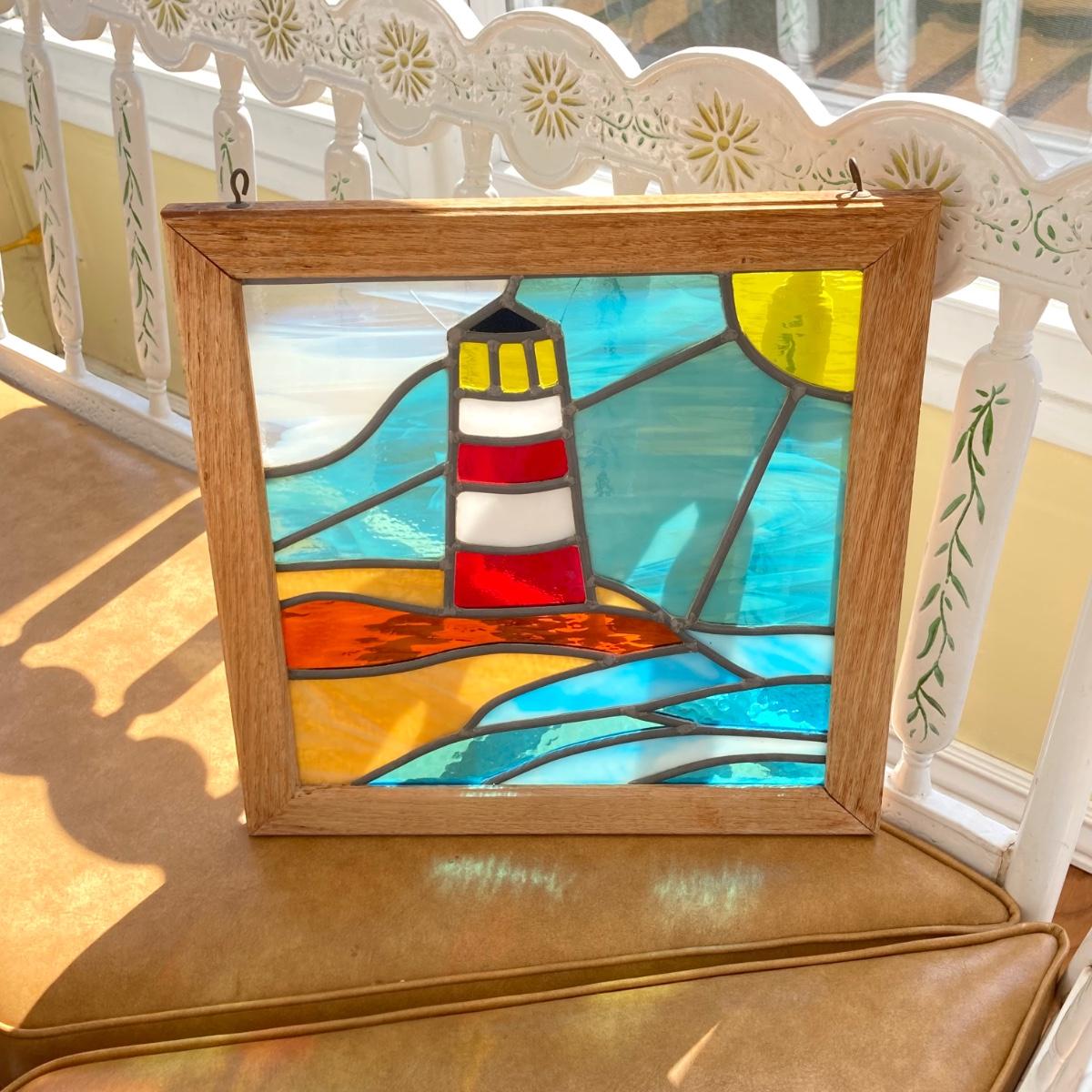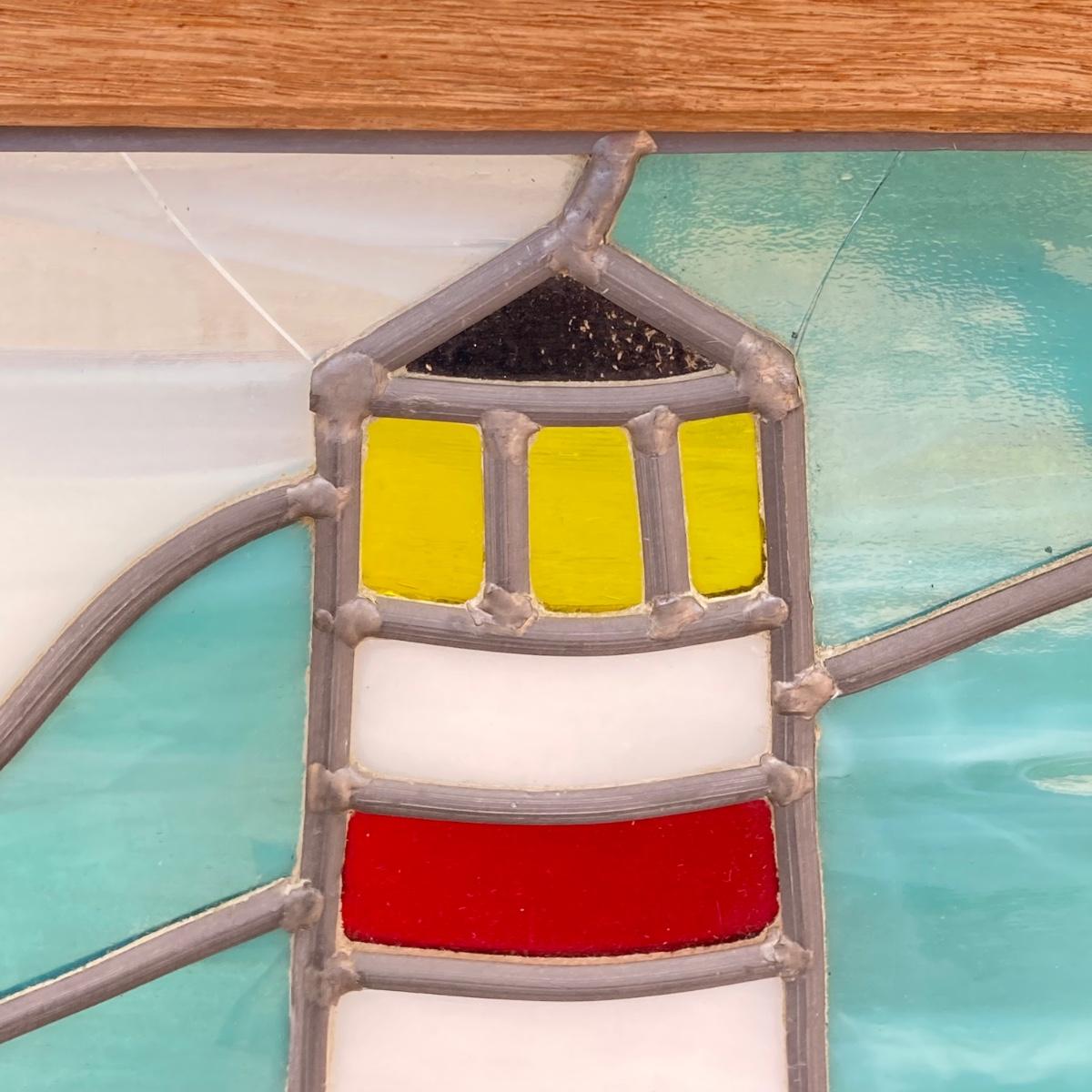 LOT 63: Nautical / Lighthouse Framed Stained Glass Artwork