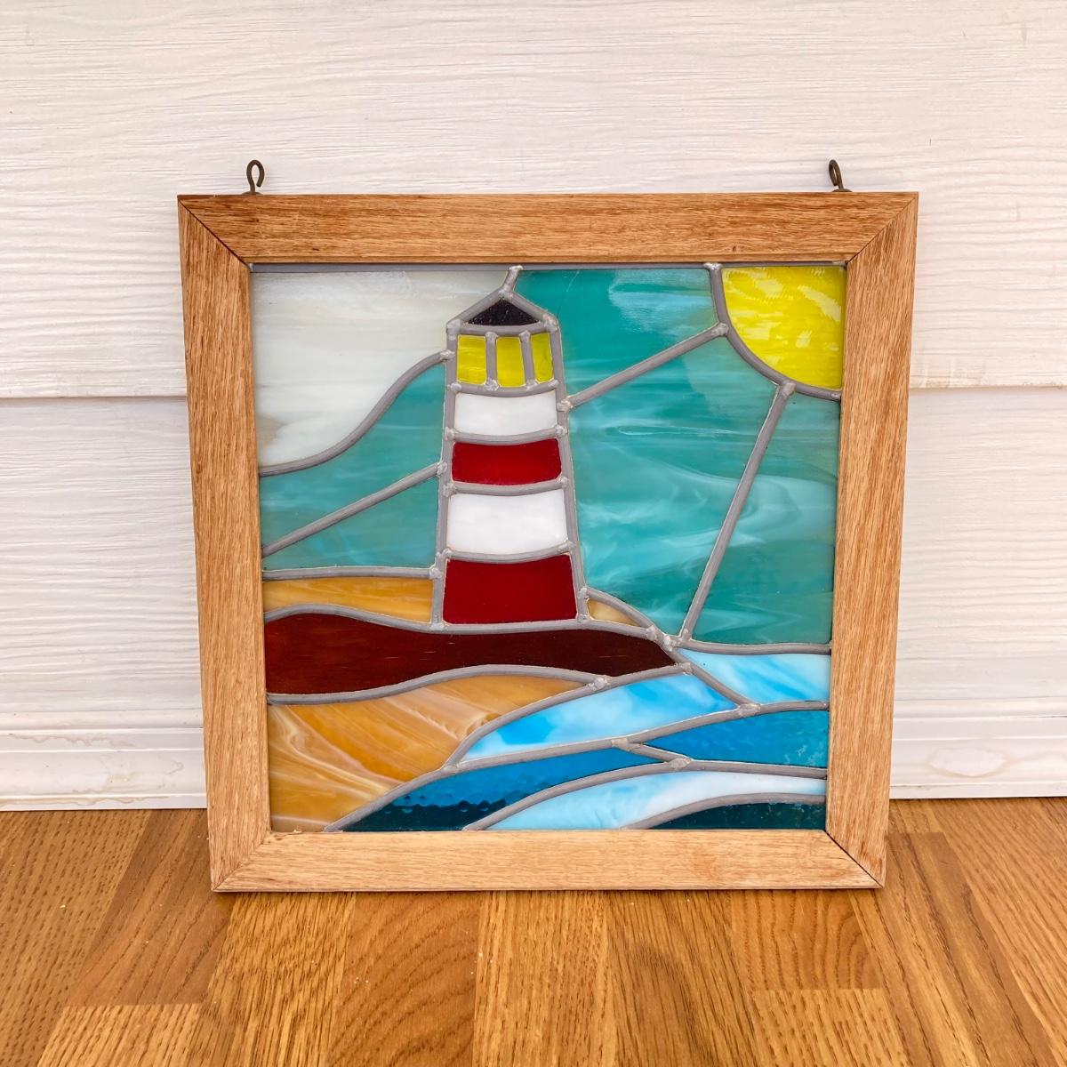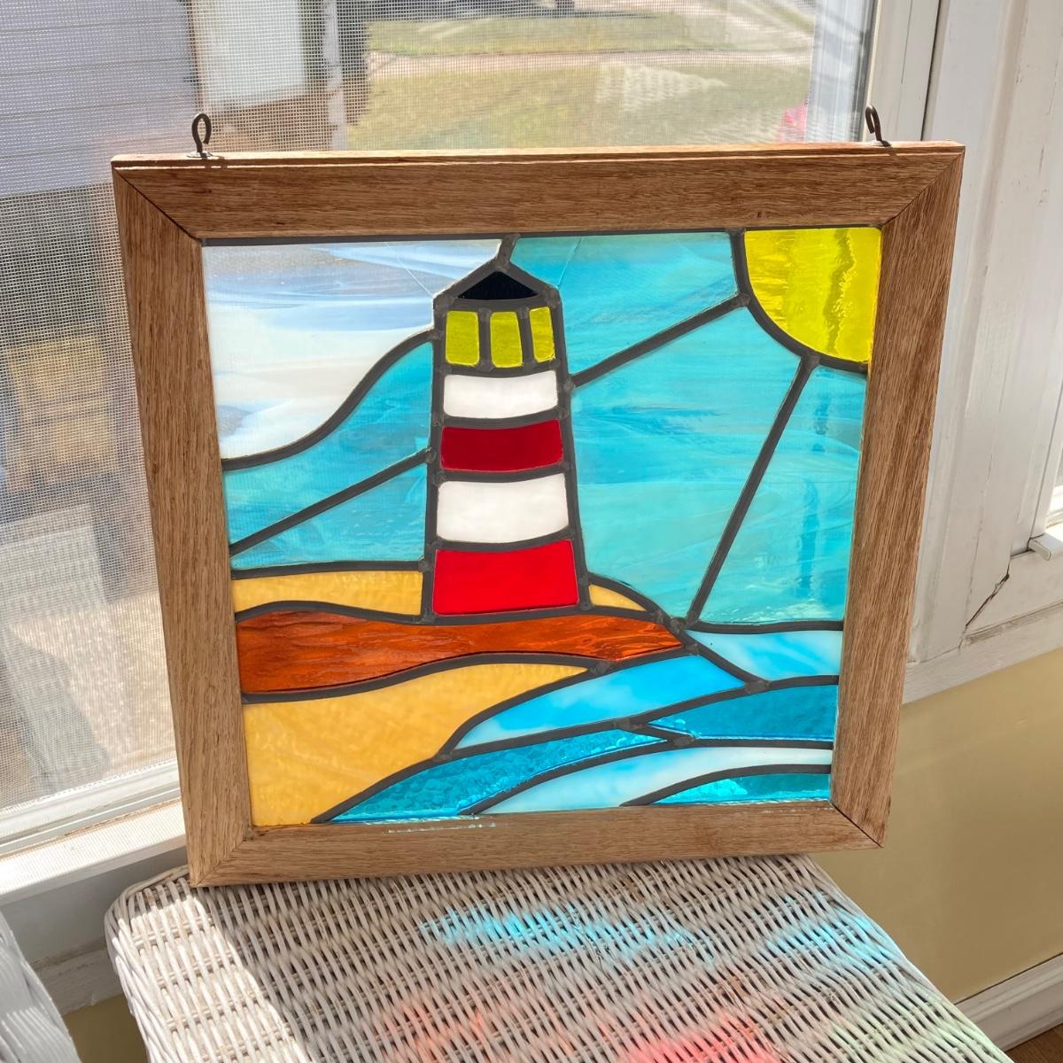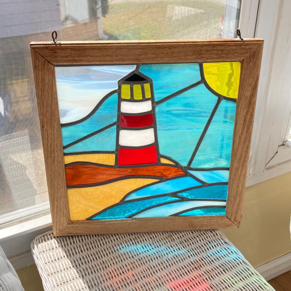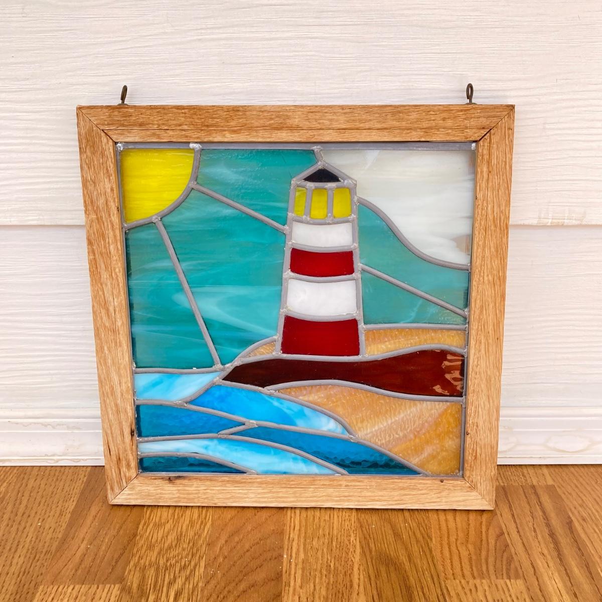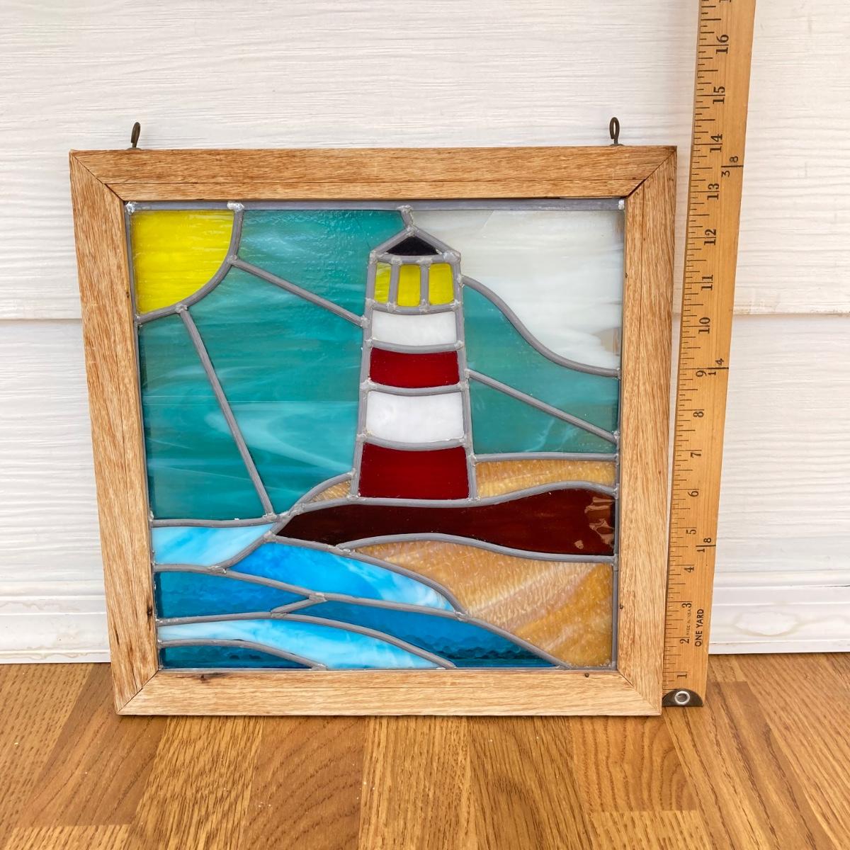 LOT 63: Nautical / Lighthouse Framed Stained Glass Artwork