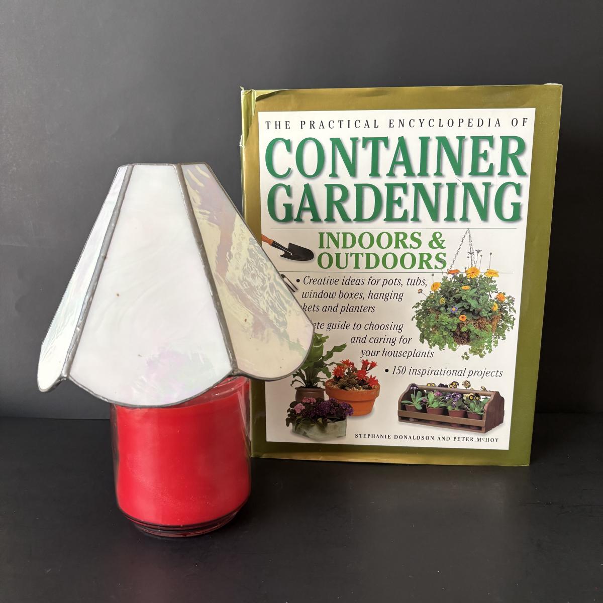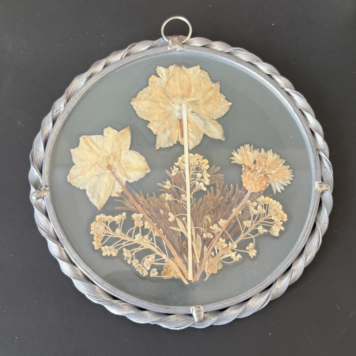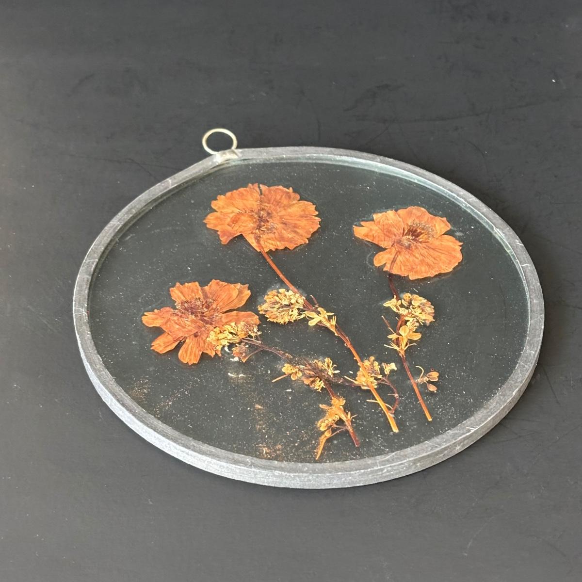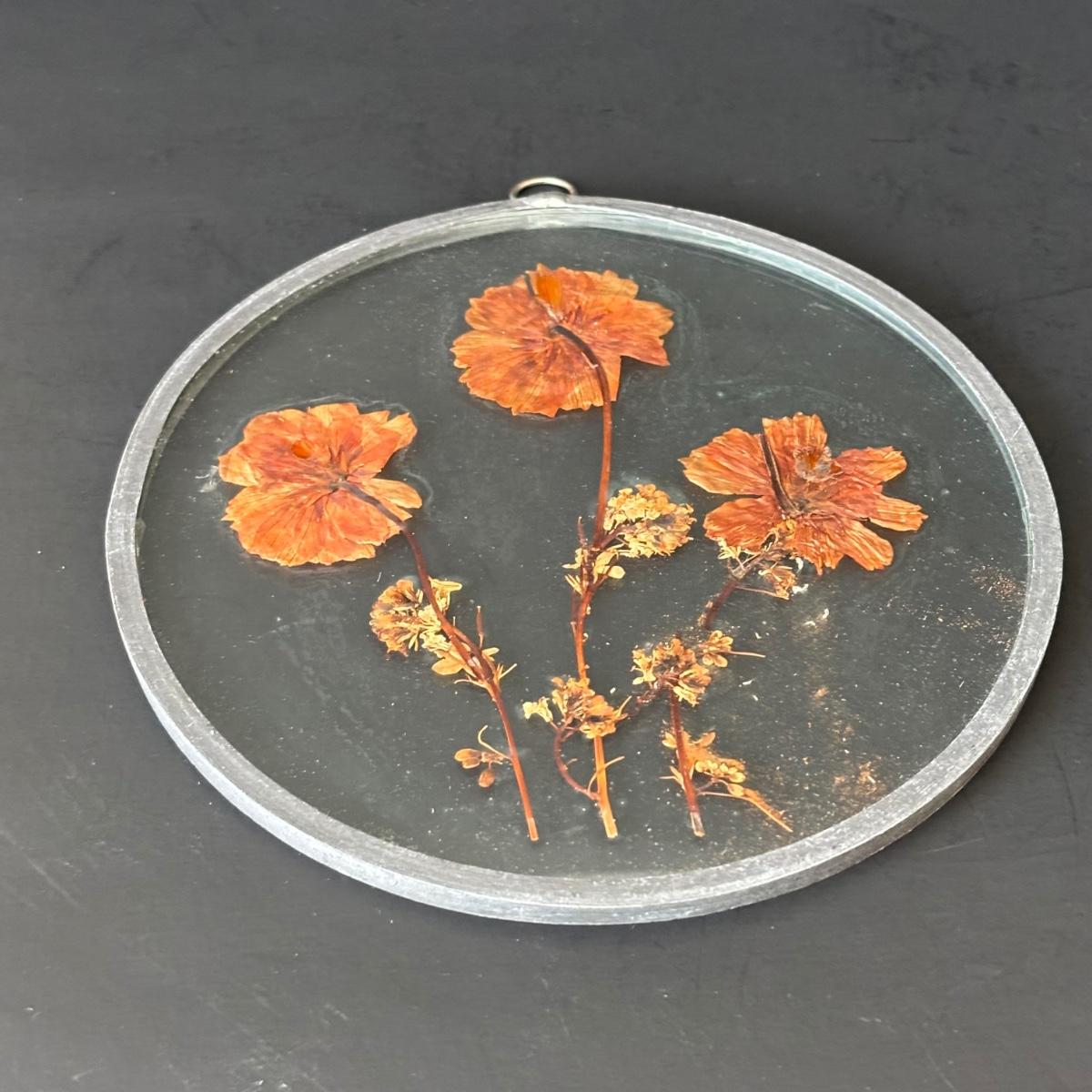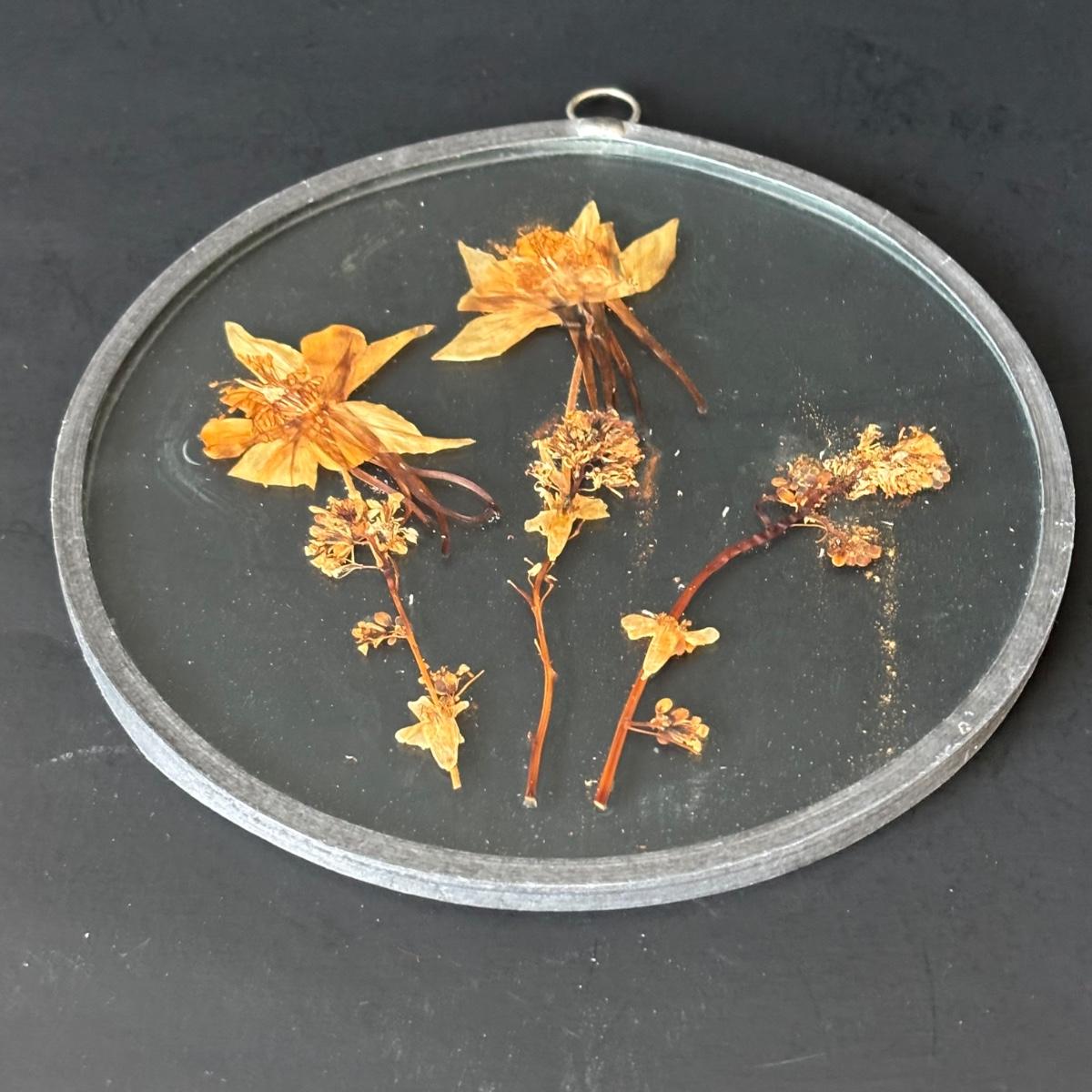 LOT 90: Stained Glass Candle Shade, Pressed Dried Flowers Hanging Glass Art, Dried Flower Trinket Box and More
