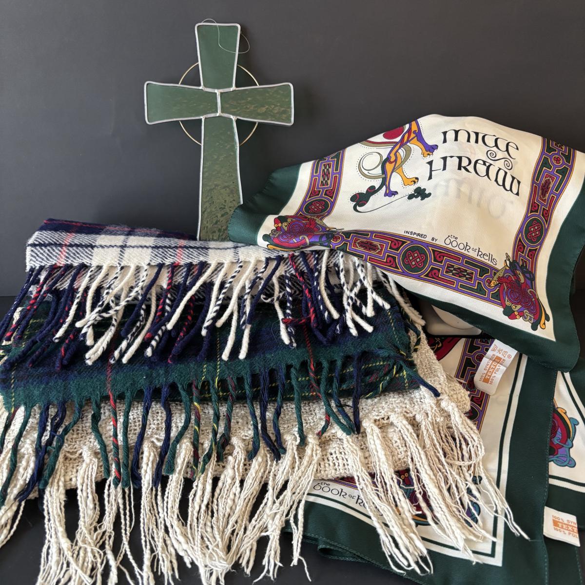 LOT 92: Made in Ireland Collection & More: Anoca Handweavers, Foxford and Mucros Wool Scarves, Stained Glass Cross