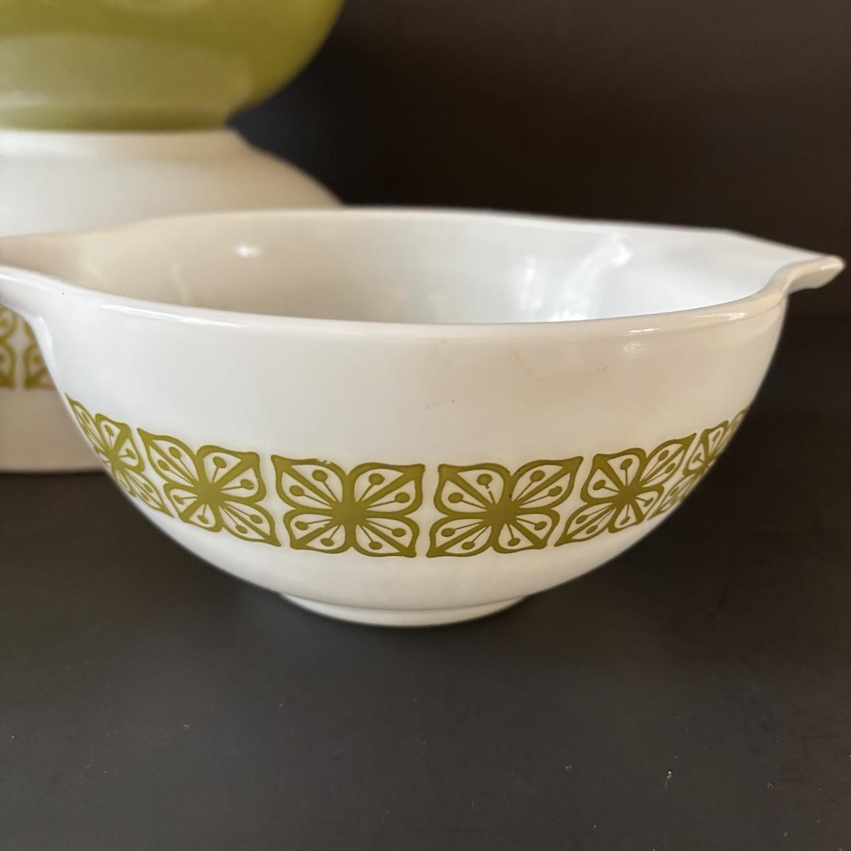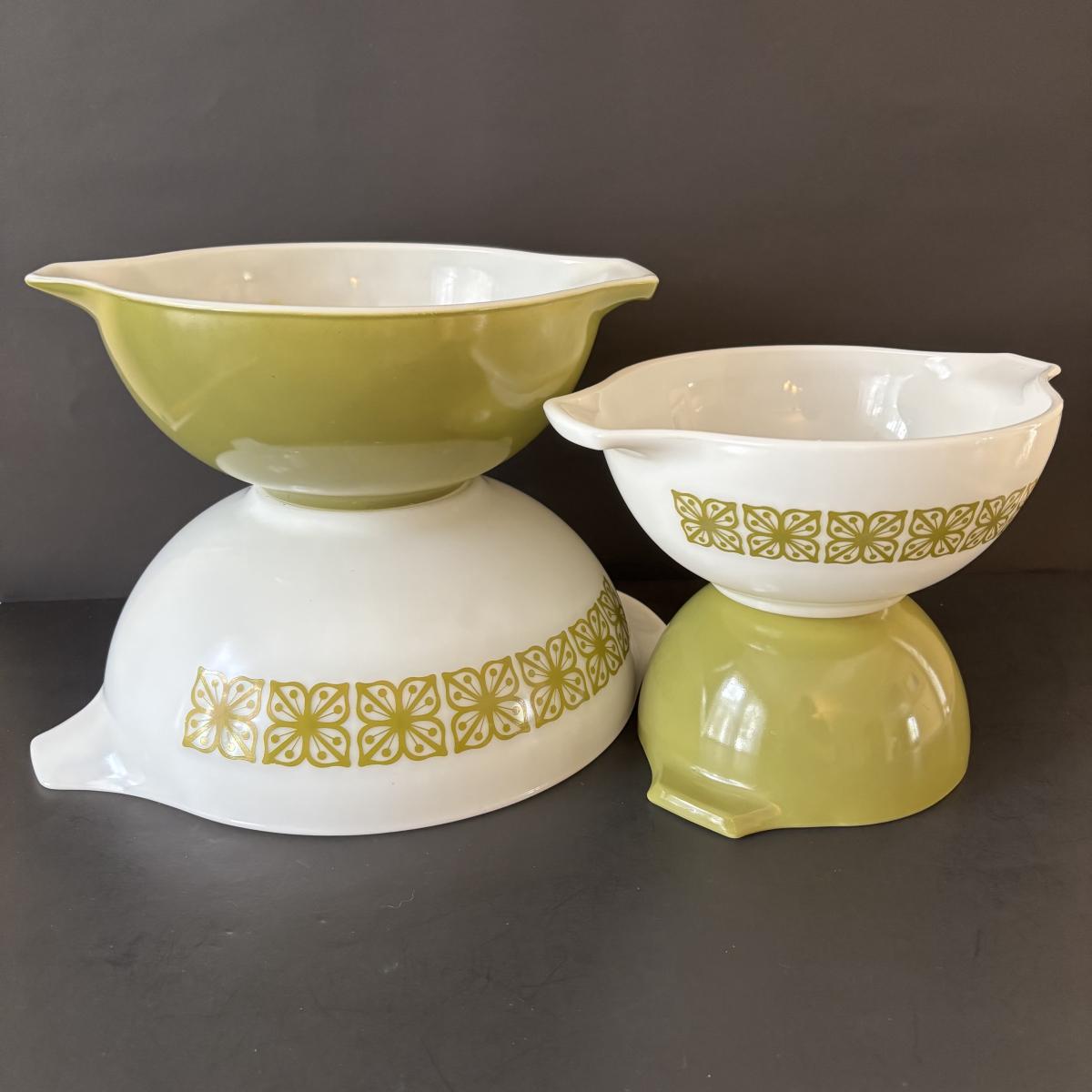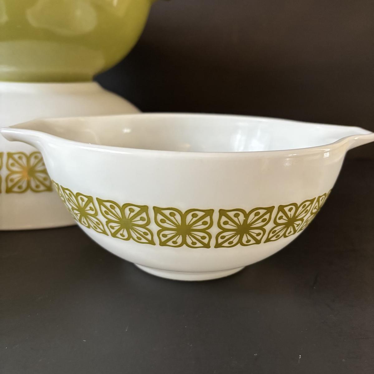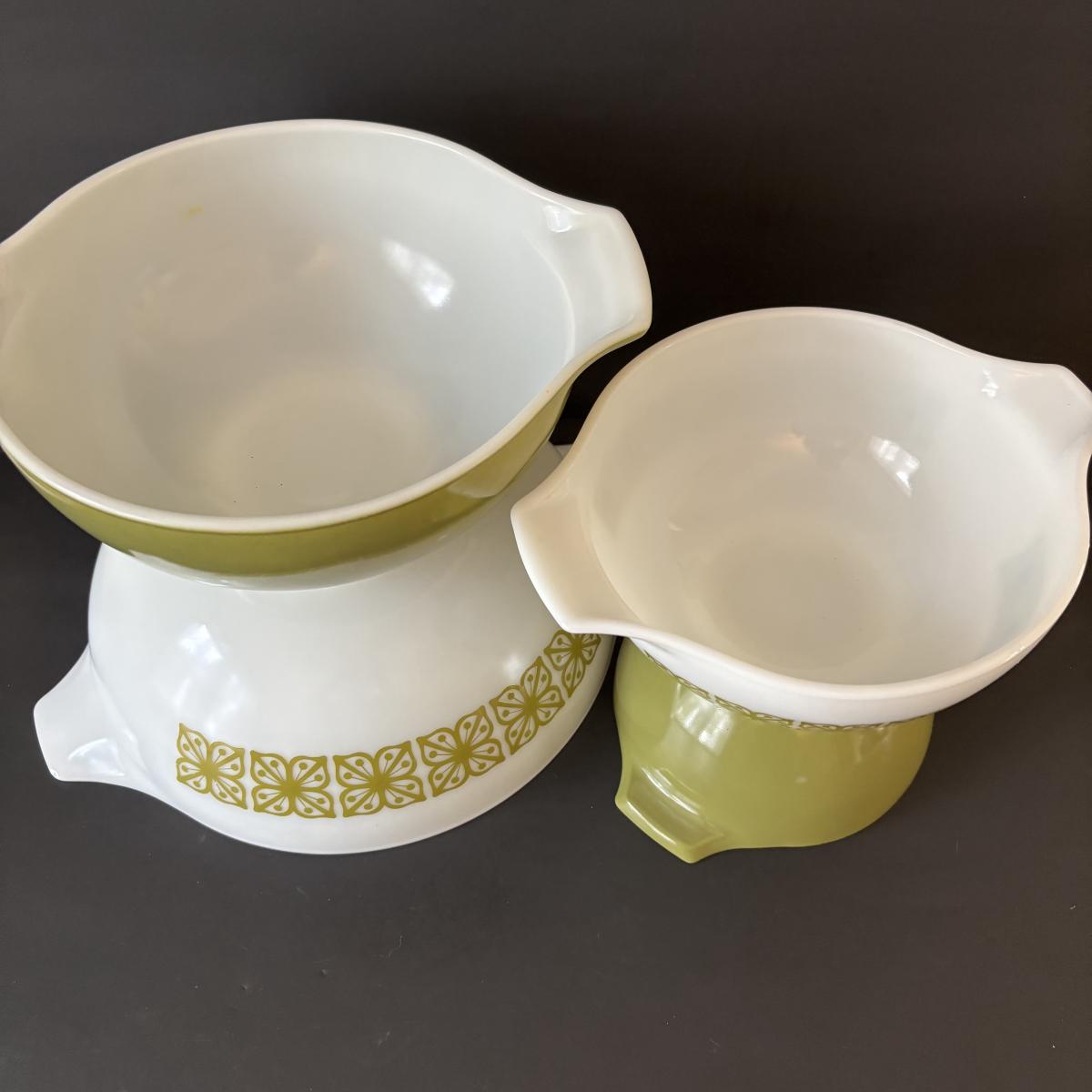 LOT 98: Vintage Pyrex Cinderella Nesting Bowls: Autumn Floral Verde