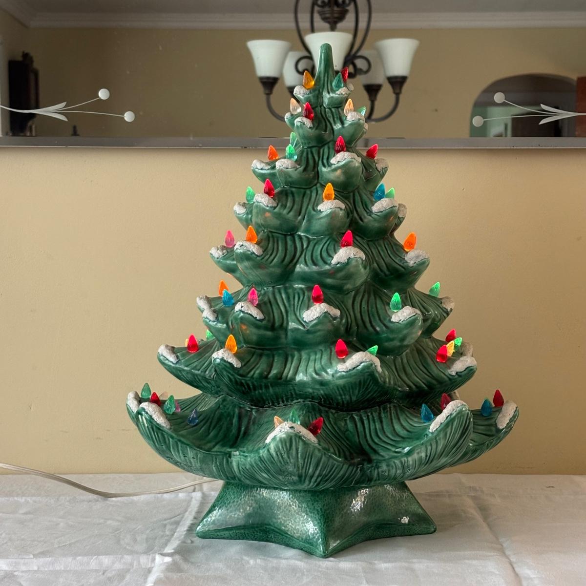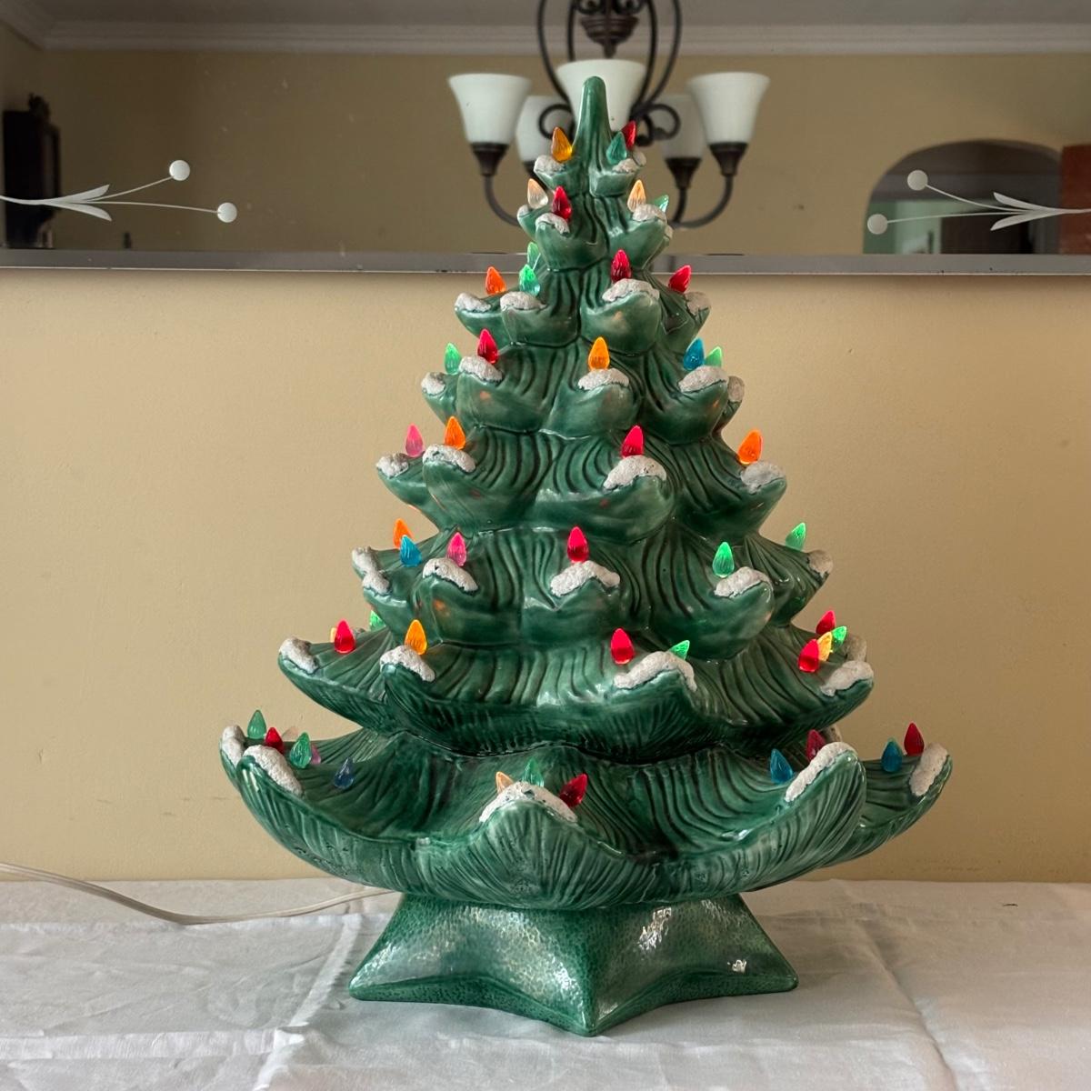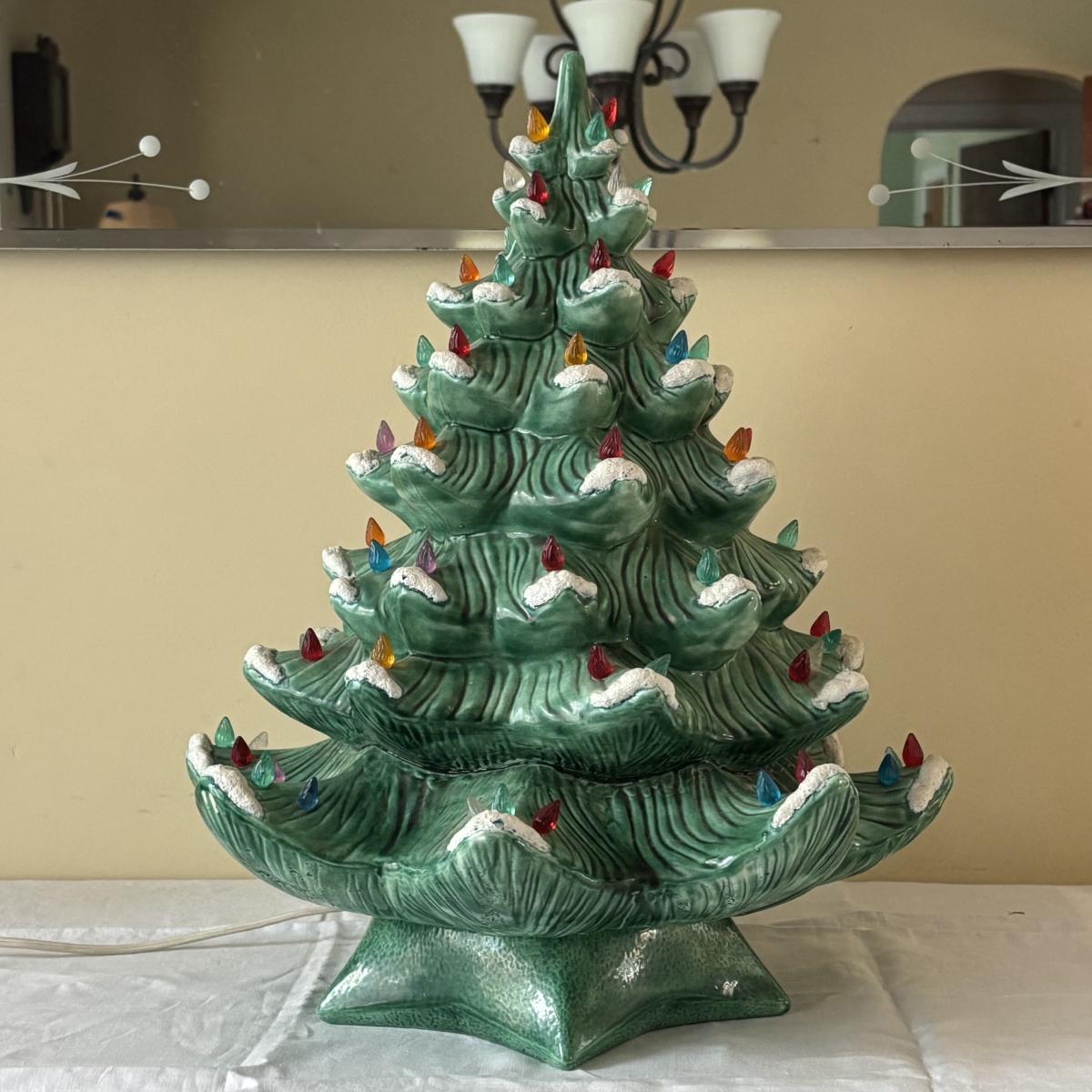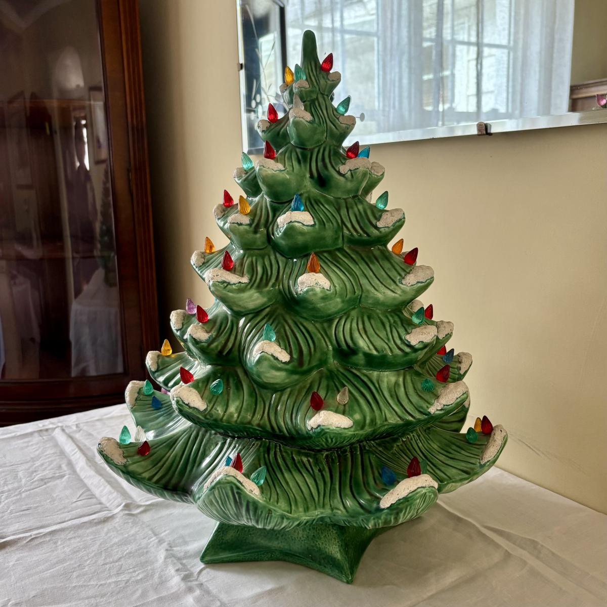 LOT 99: Glazed Green w/Snow Accents Ceramic Christmas Tree