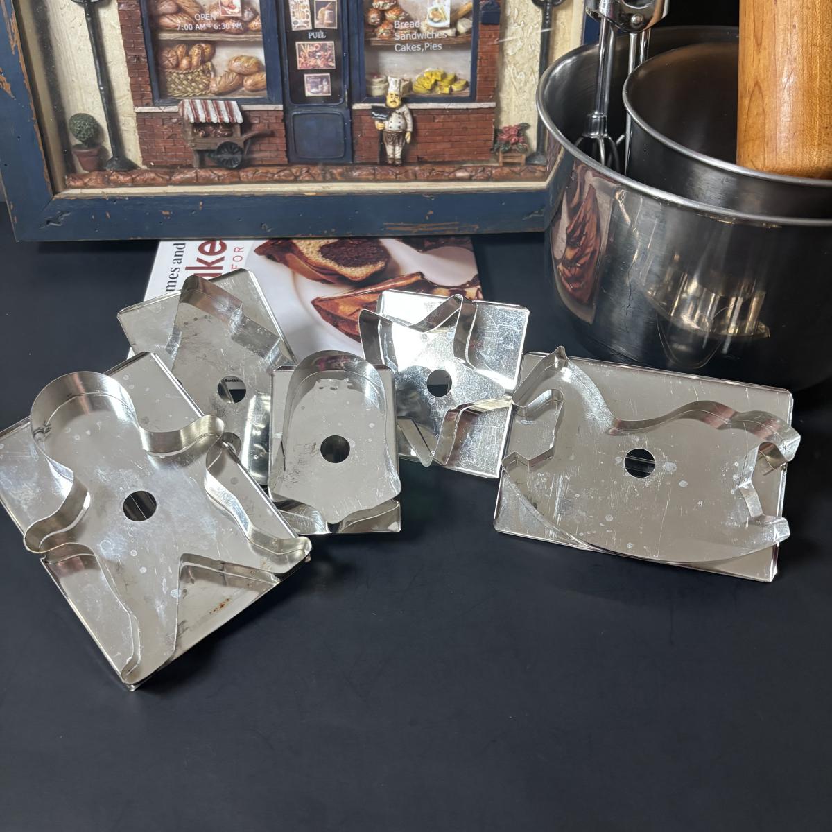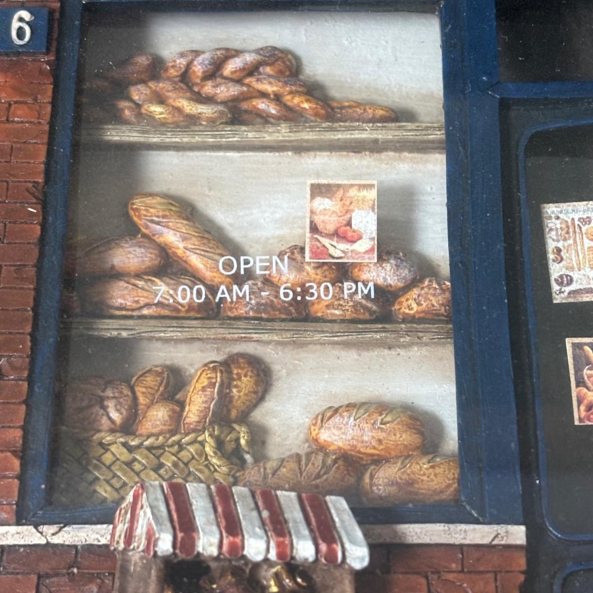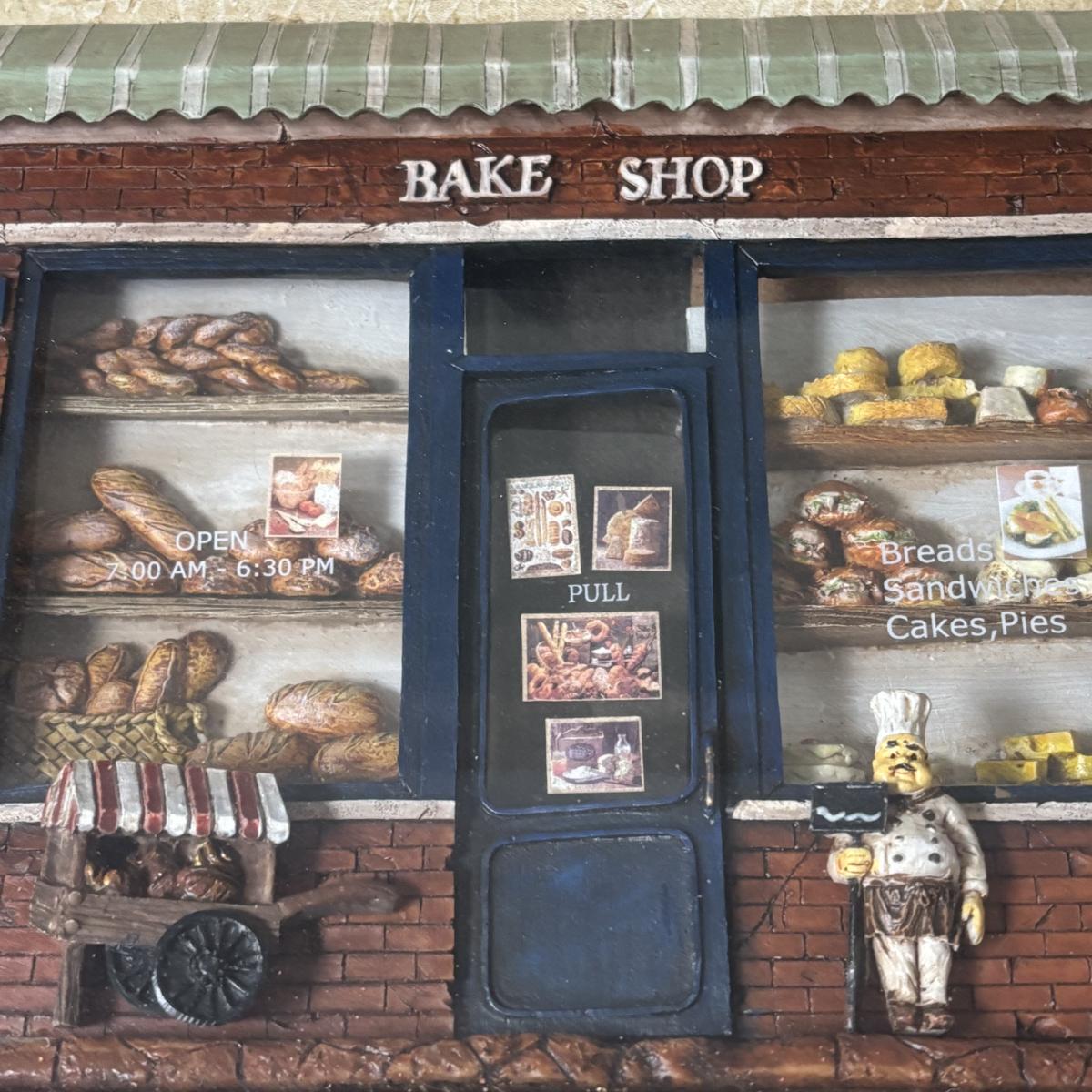 LOT 102: Bakery Diorama Wall Decor, Stainless Steel Bowls, Wooden Rolling Pin, Cookie Cutters & More