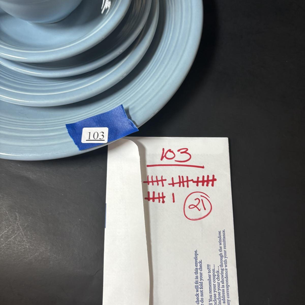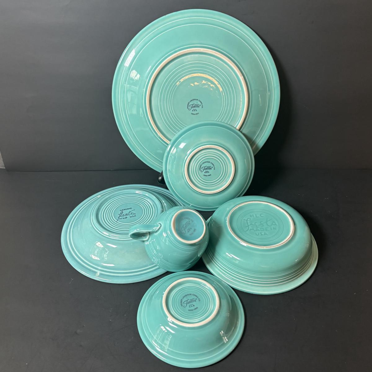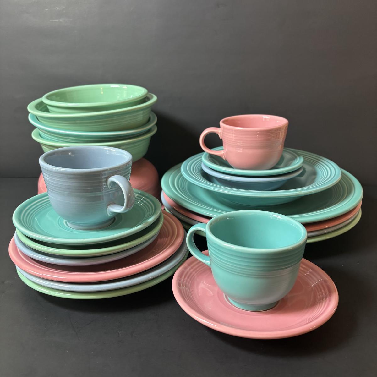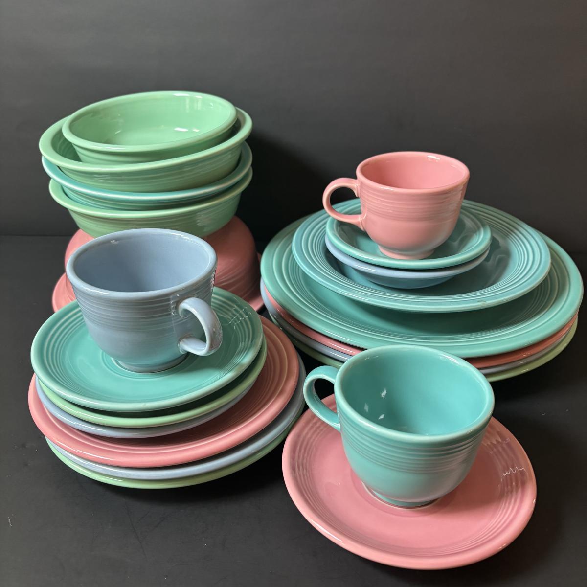 LOT 103: Collection Green Pink Blue Aqua of Fiesta Ware: 21pcs