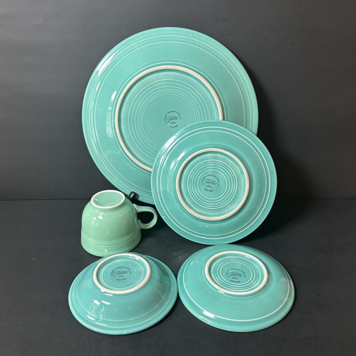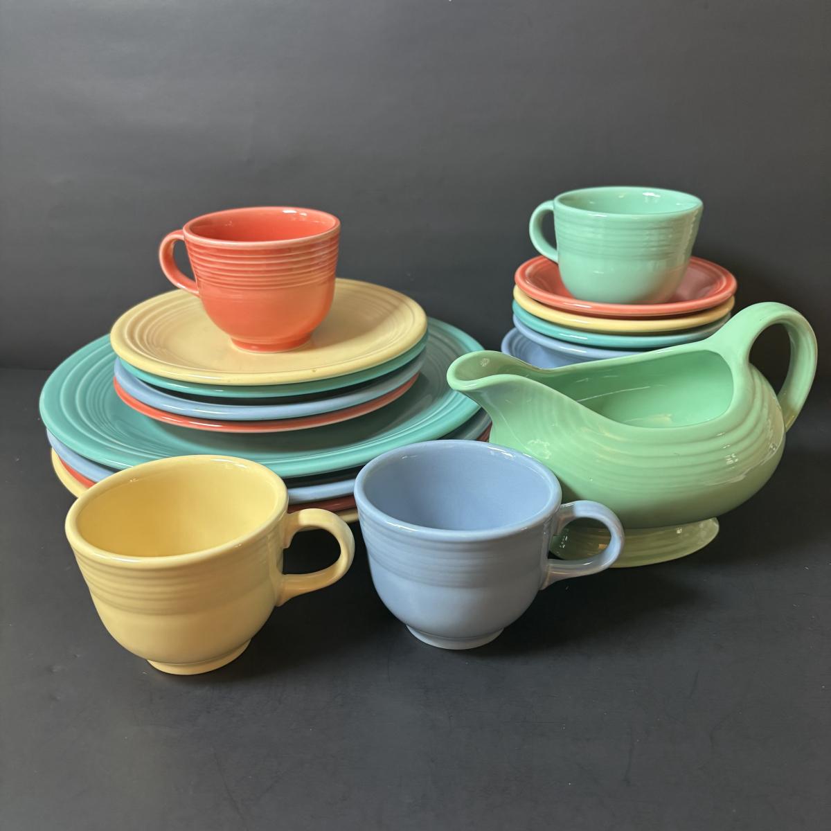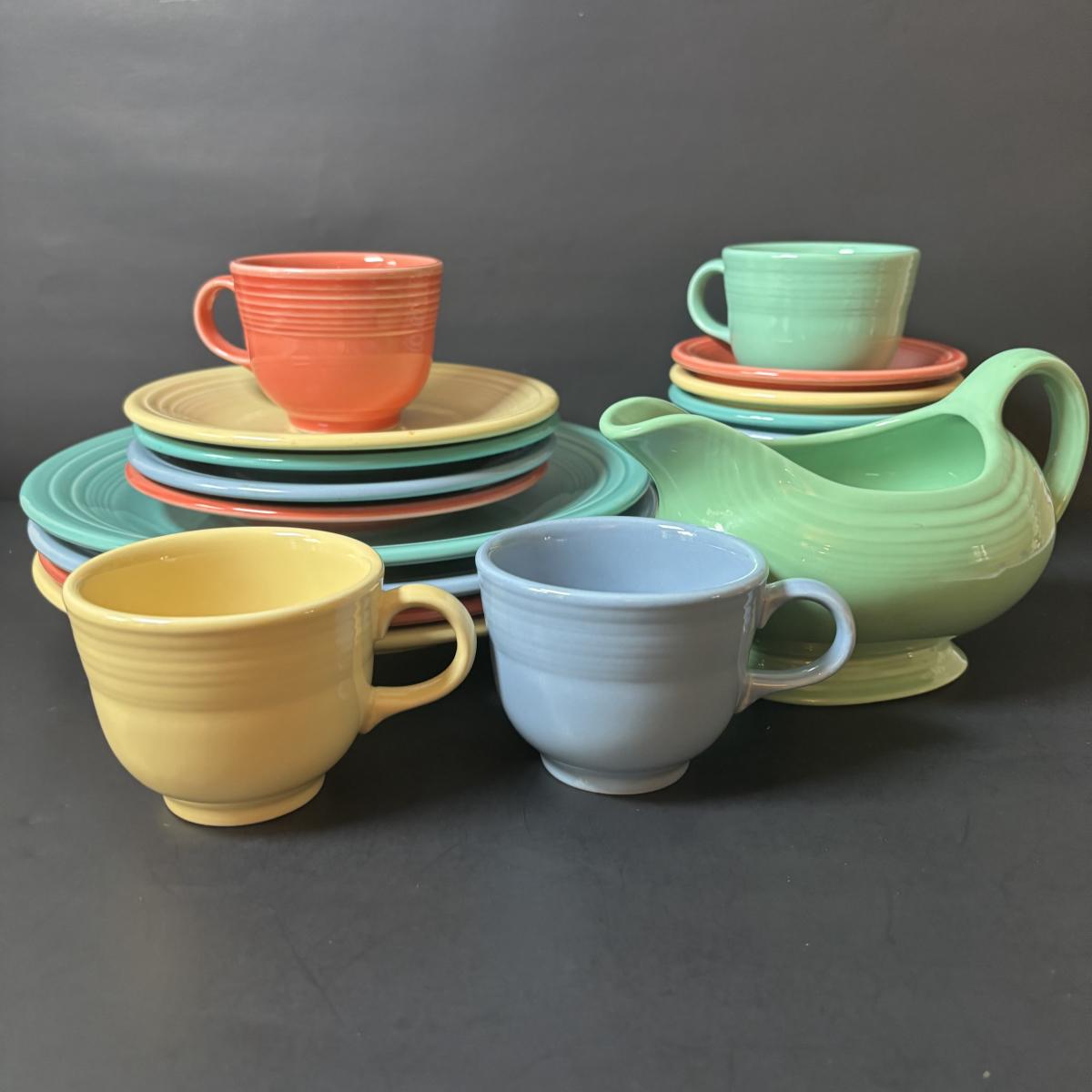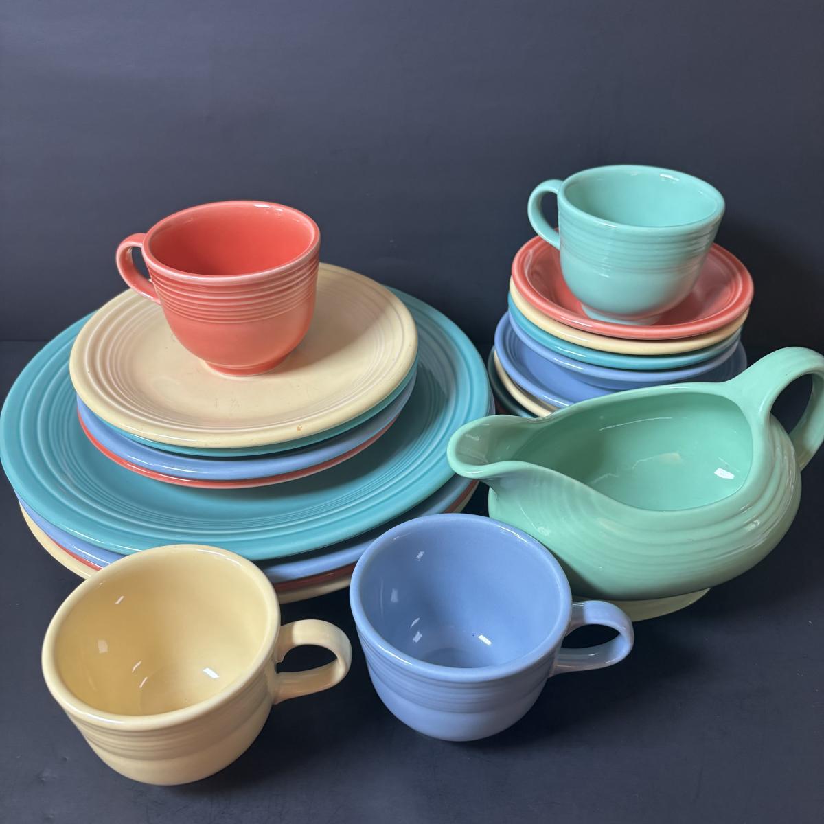 LOT 105: Collection Orange Blue Green Yellow of Fiesta Ware: 21pcs