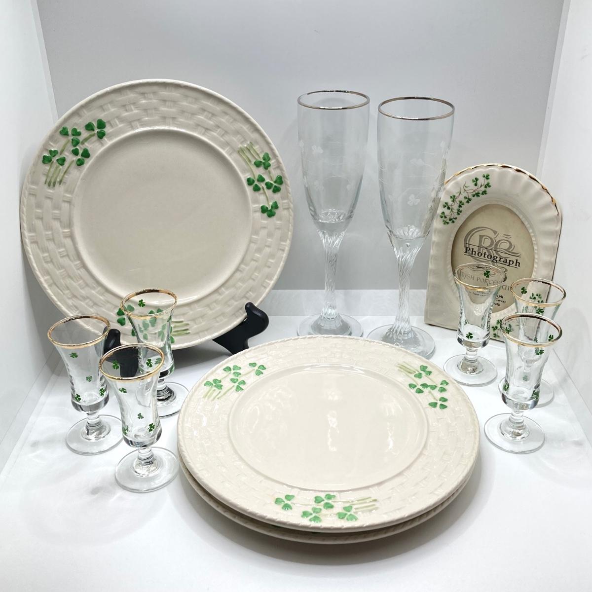 LOT 130: Celtic Classics Dinnerware, Porcelain Picture Frame and Glasses
