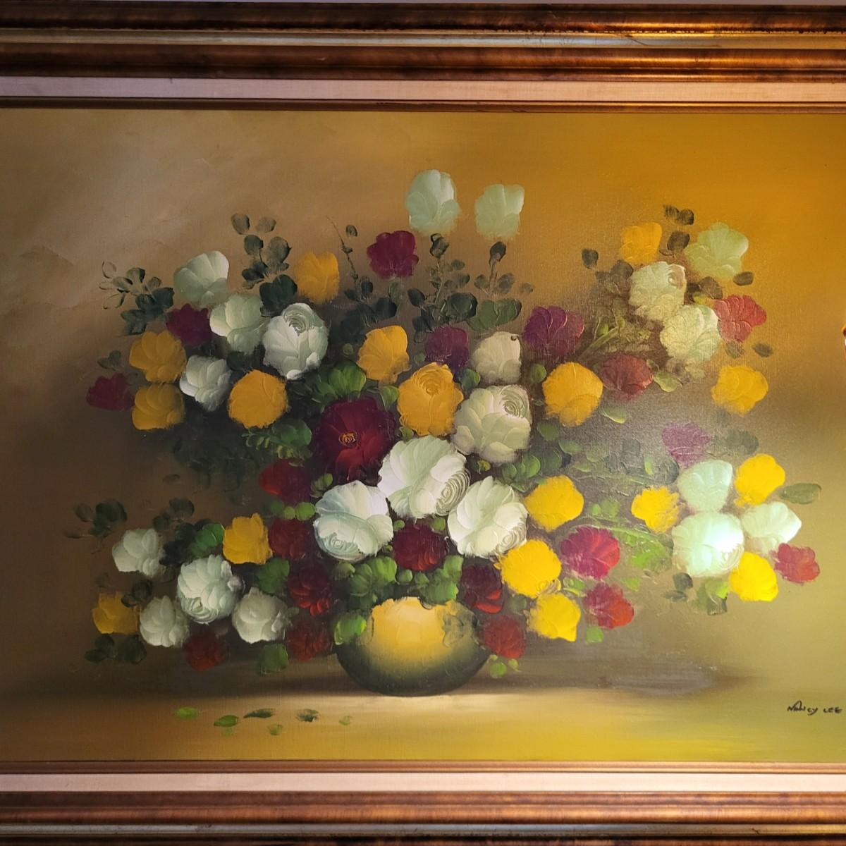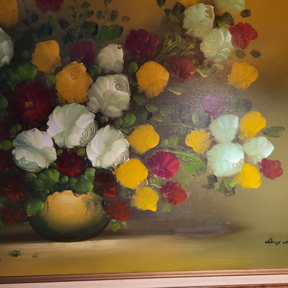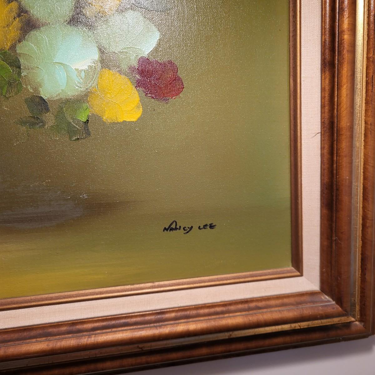 LOT 148: Framed Flowers & Vase Still-Life Oil Painting by Nancy Lee