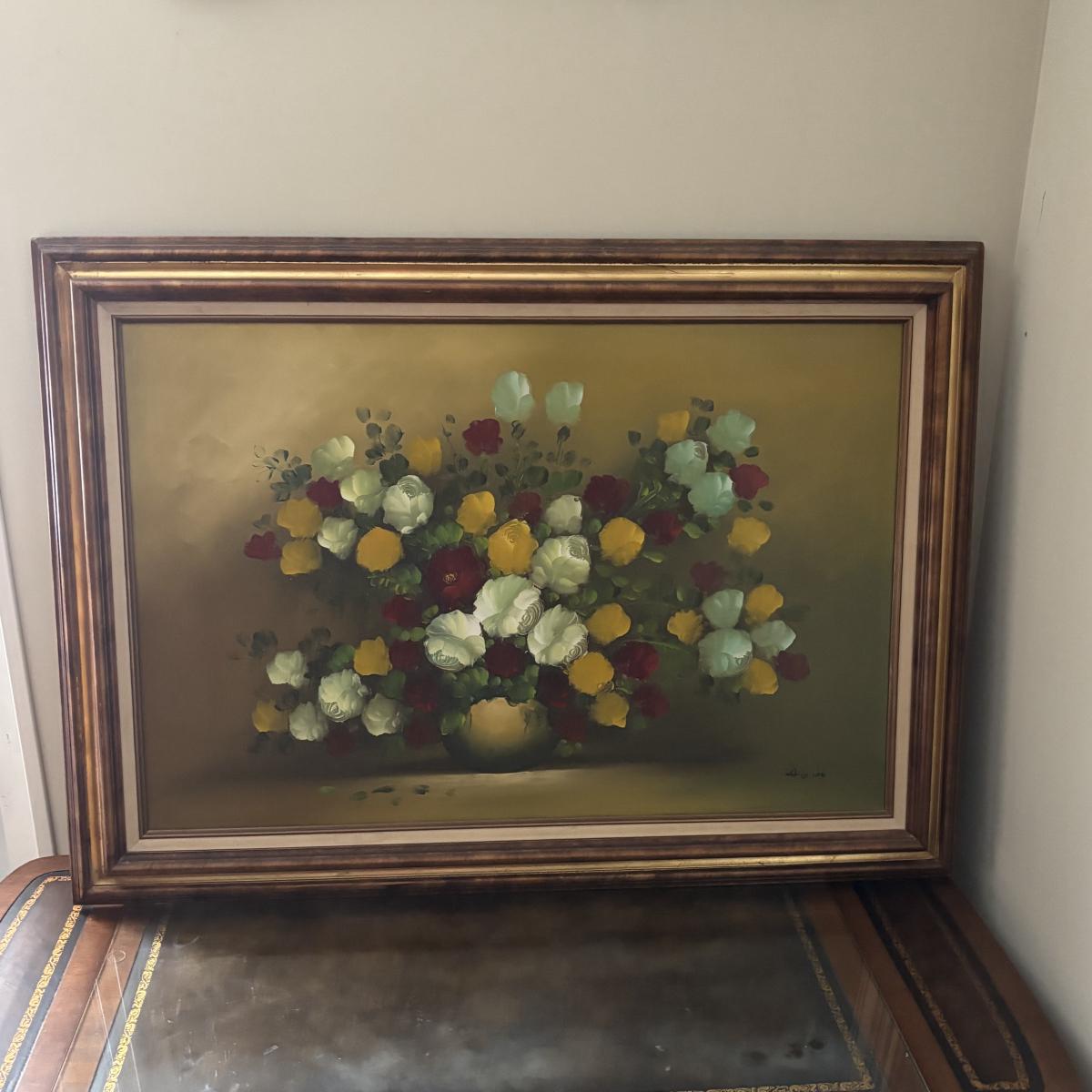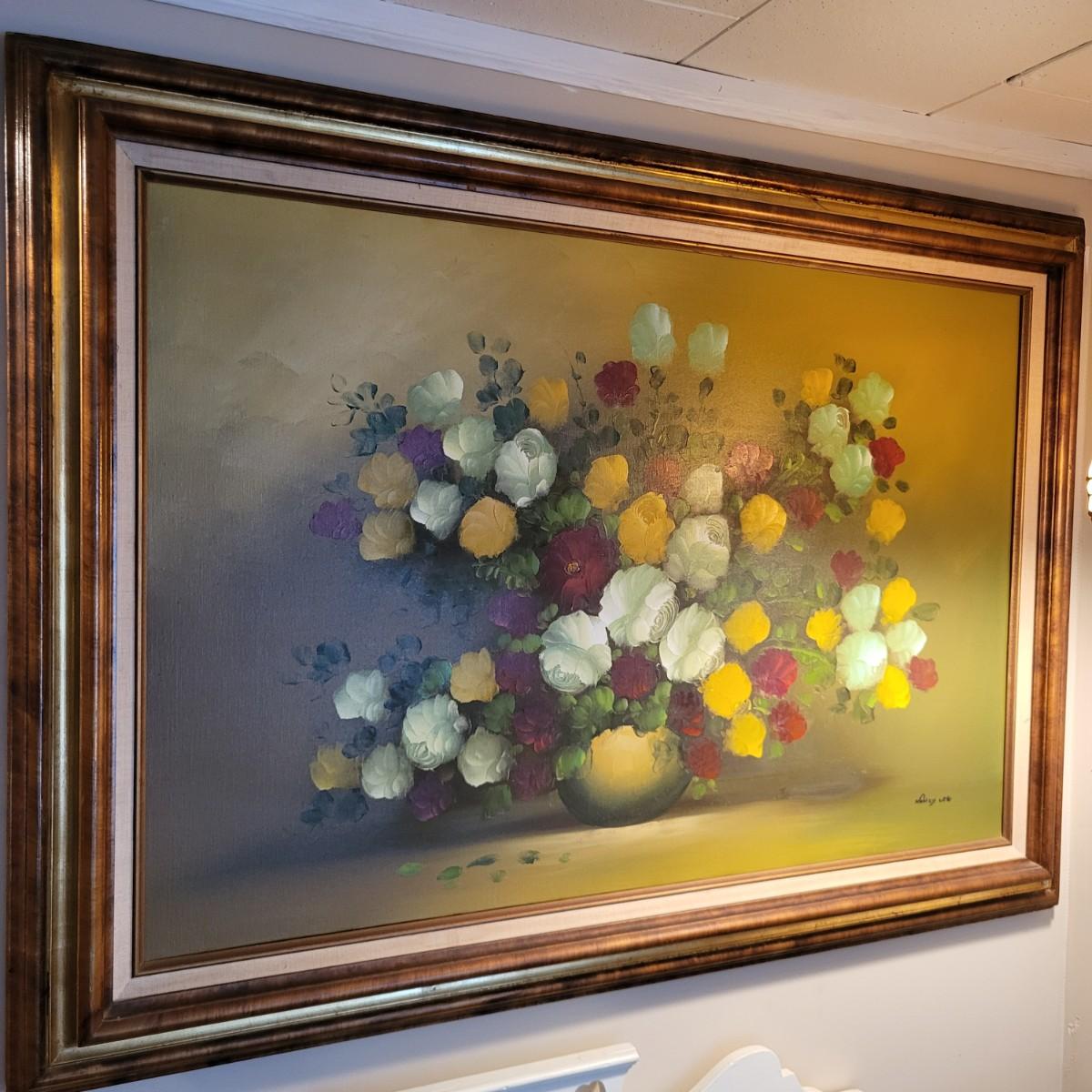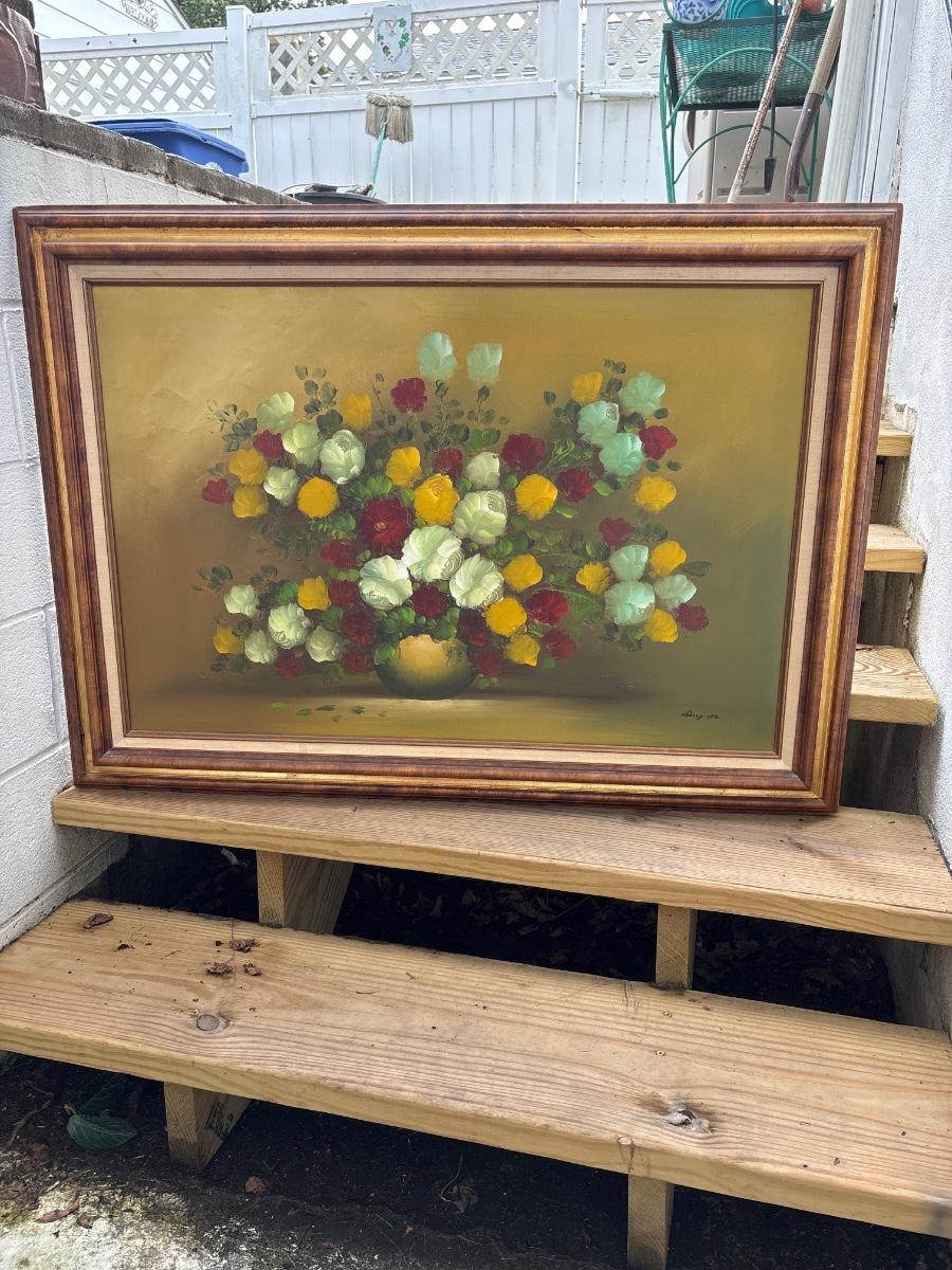 LOT 148: Framed Flowers & Vase Still-Life Oil Painting by Nancy Lee