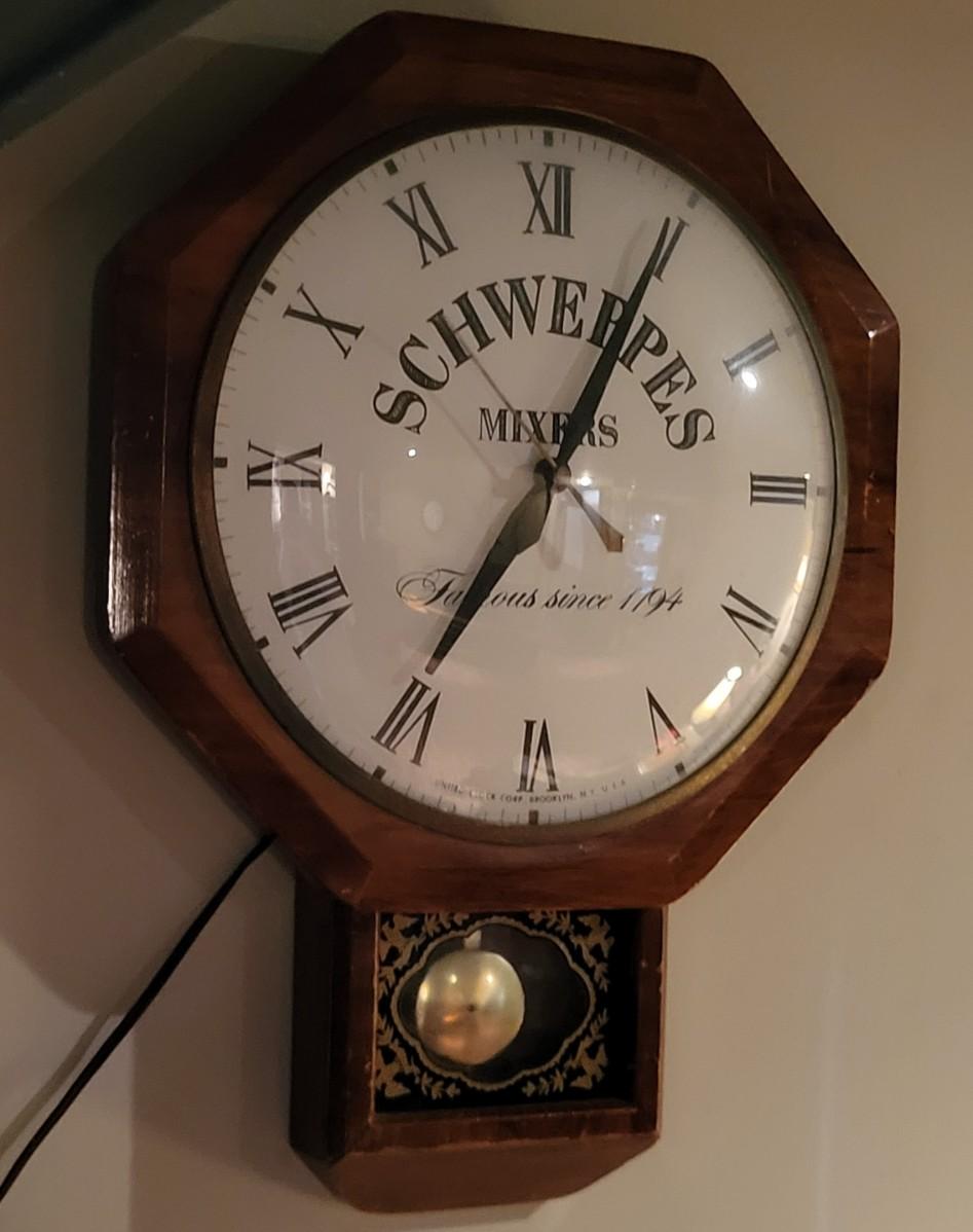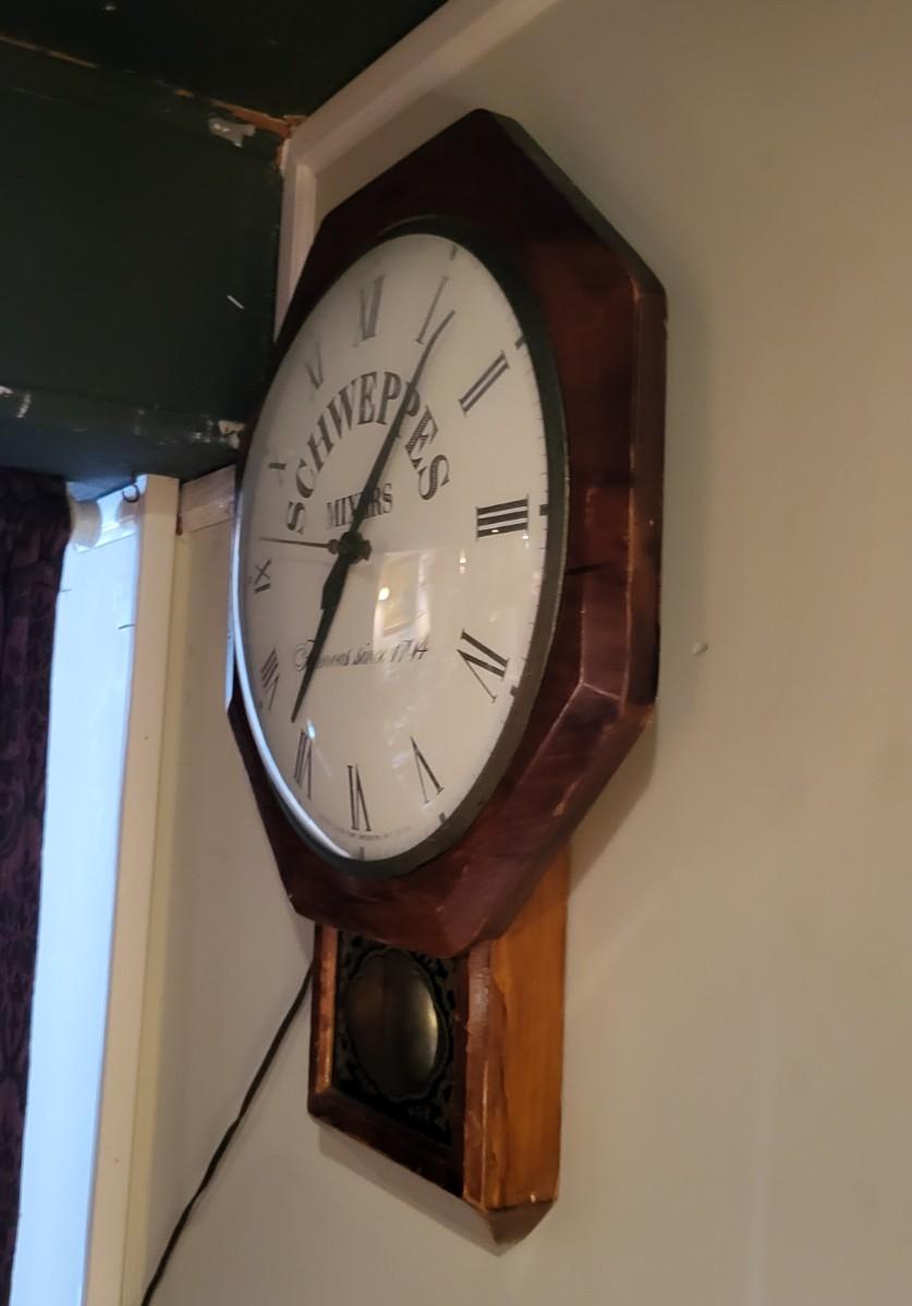 LOT 149: Vintage Schweppes Mixers Wooden Electric Pendulum Clock