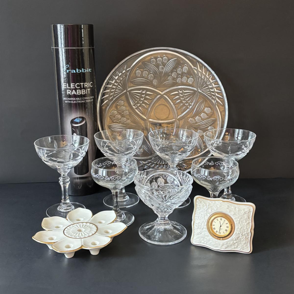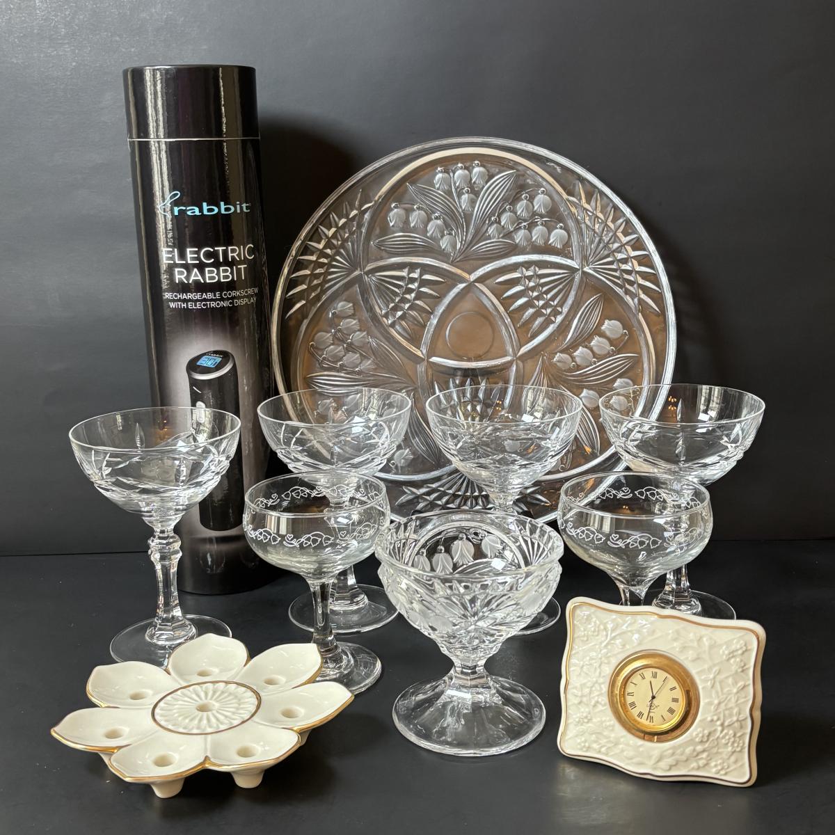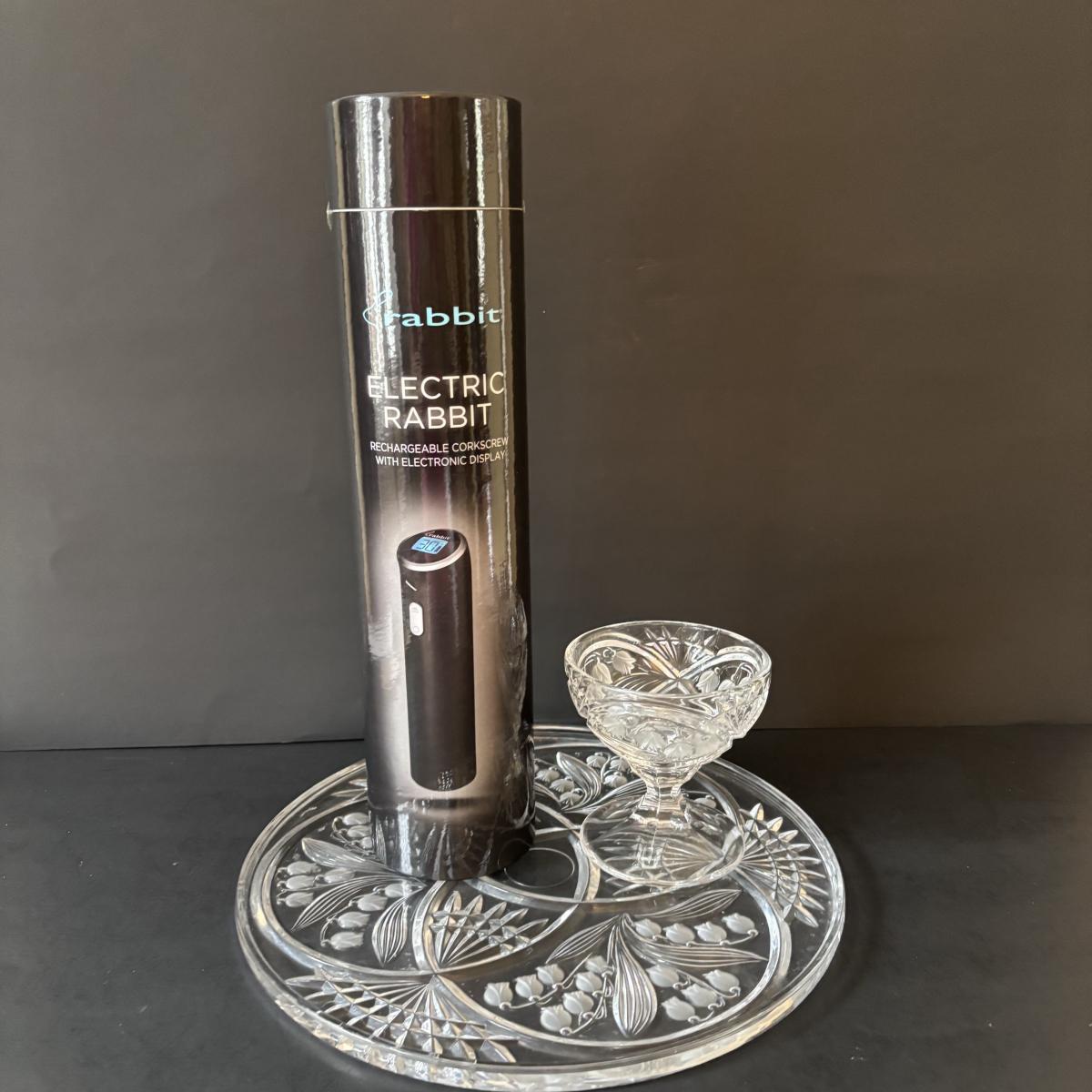 LOT 155: Rabbit Automatic Rechargeable Electric Corkscrew (NIB), Lenox & Crystal Stemware