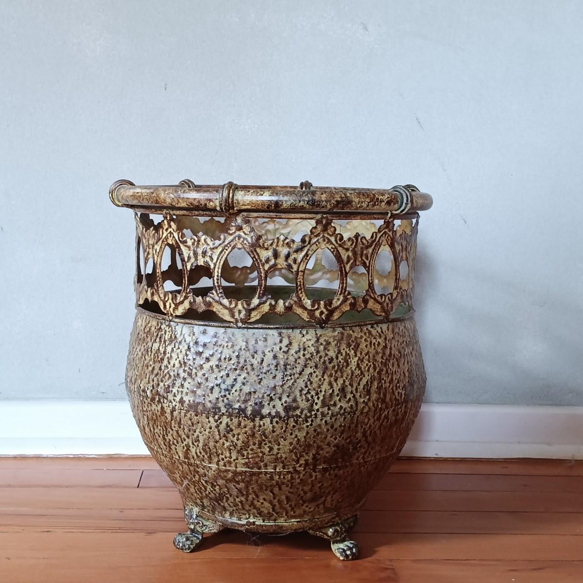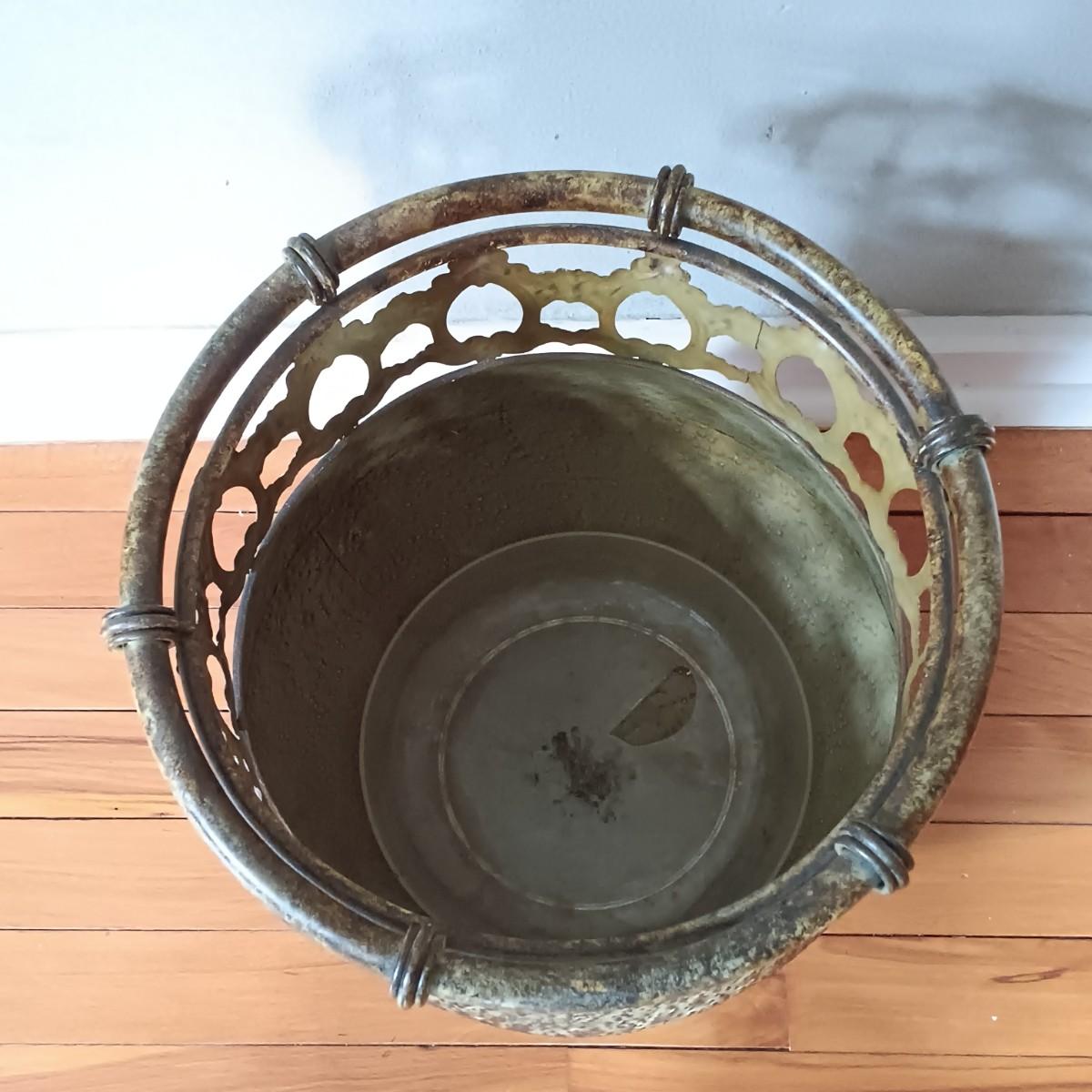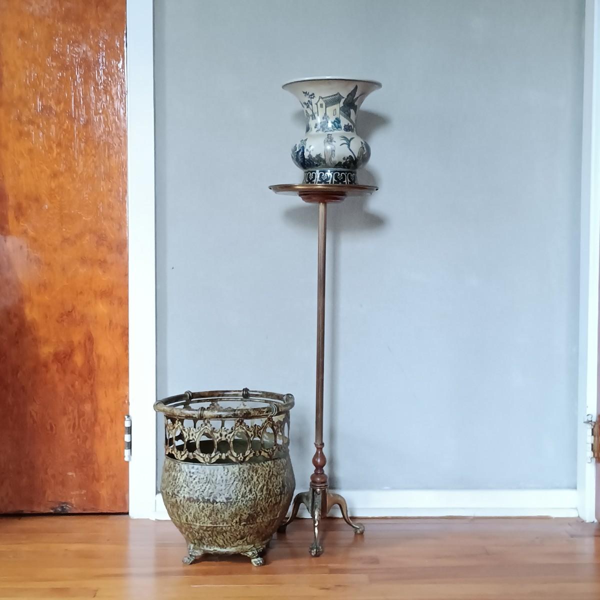 LOT 175: Metal and Pottery Plant Containers with Brass Plant Stand