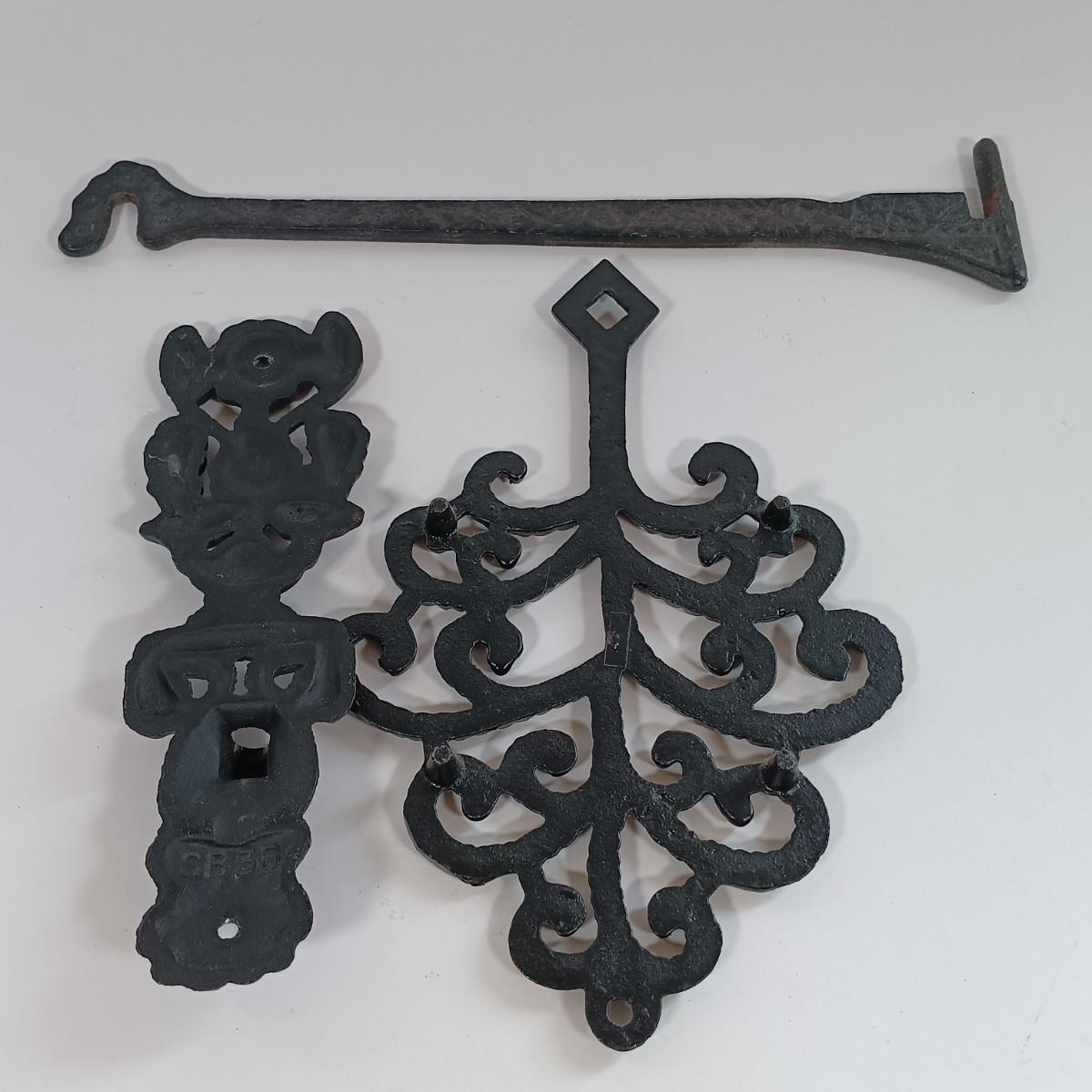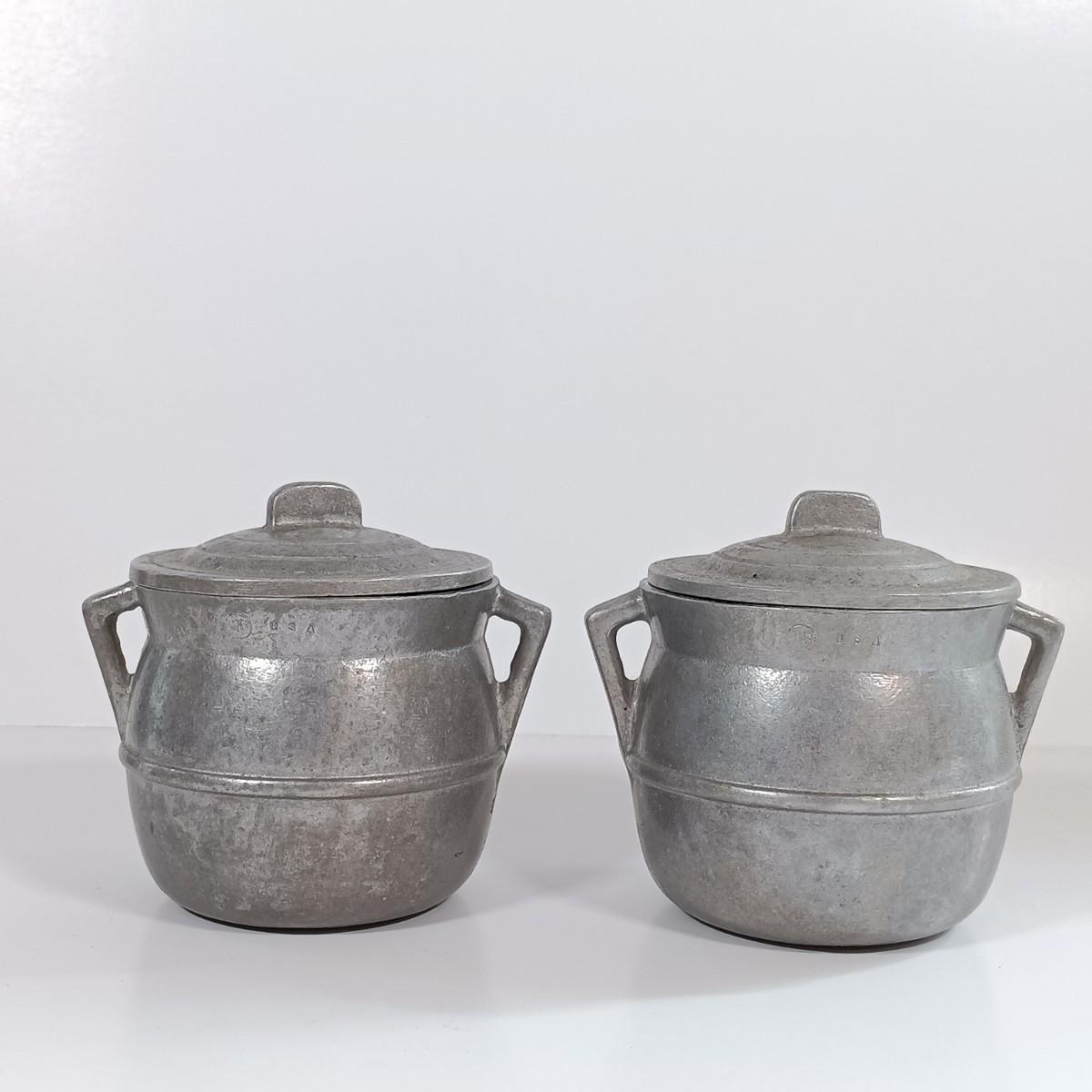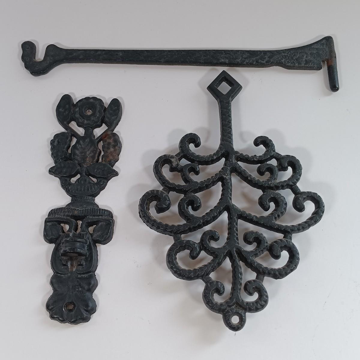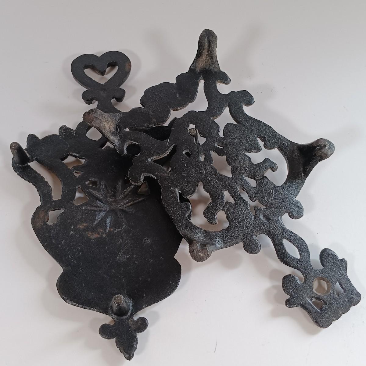 LOT 185: Cast Iron Trivets, Pewter Bean Pots, Pressed Glass Cakestand & More