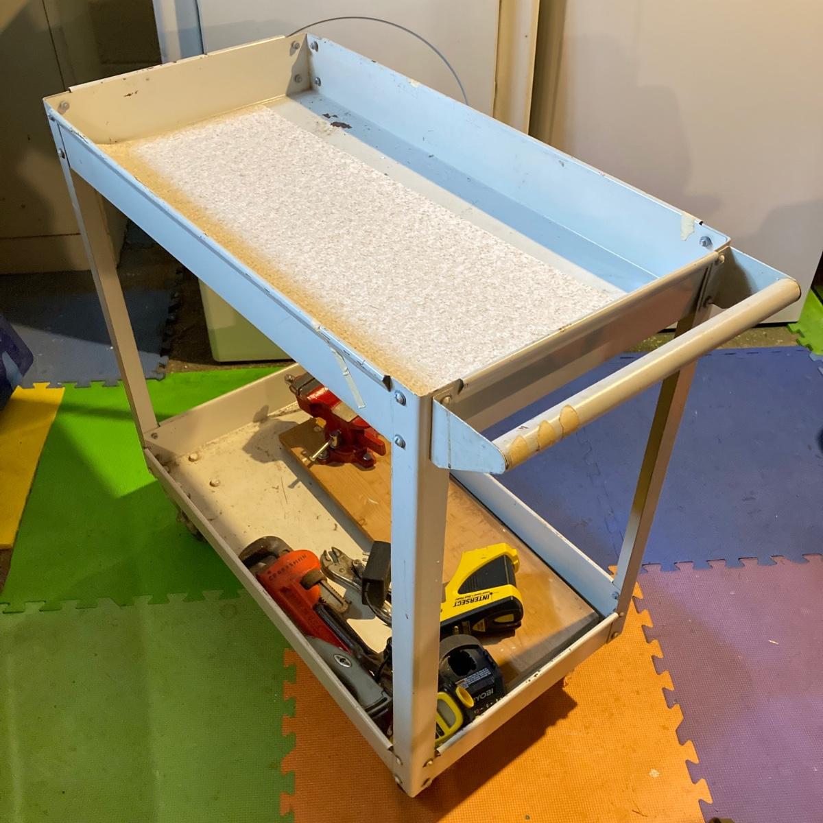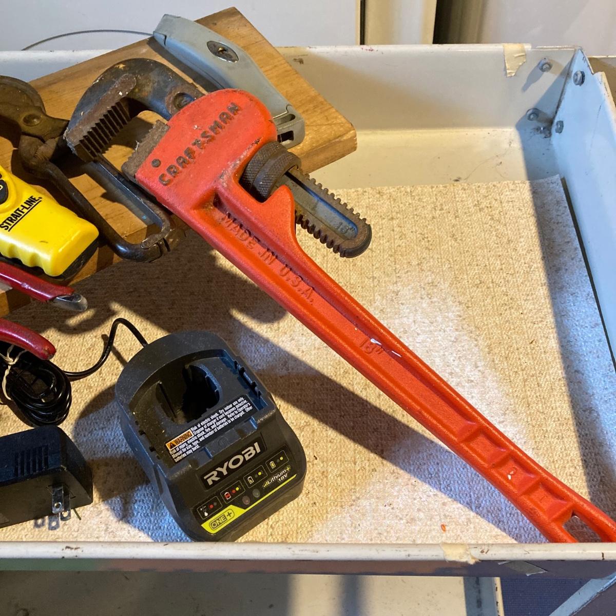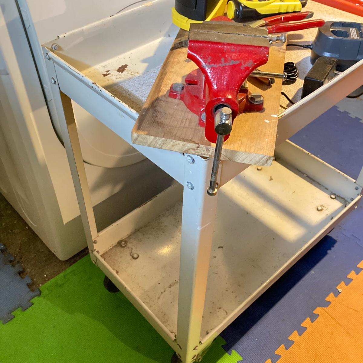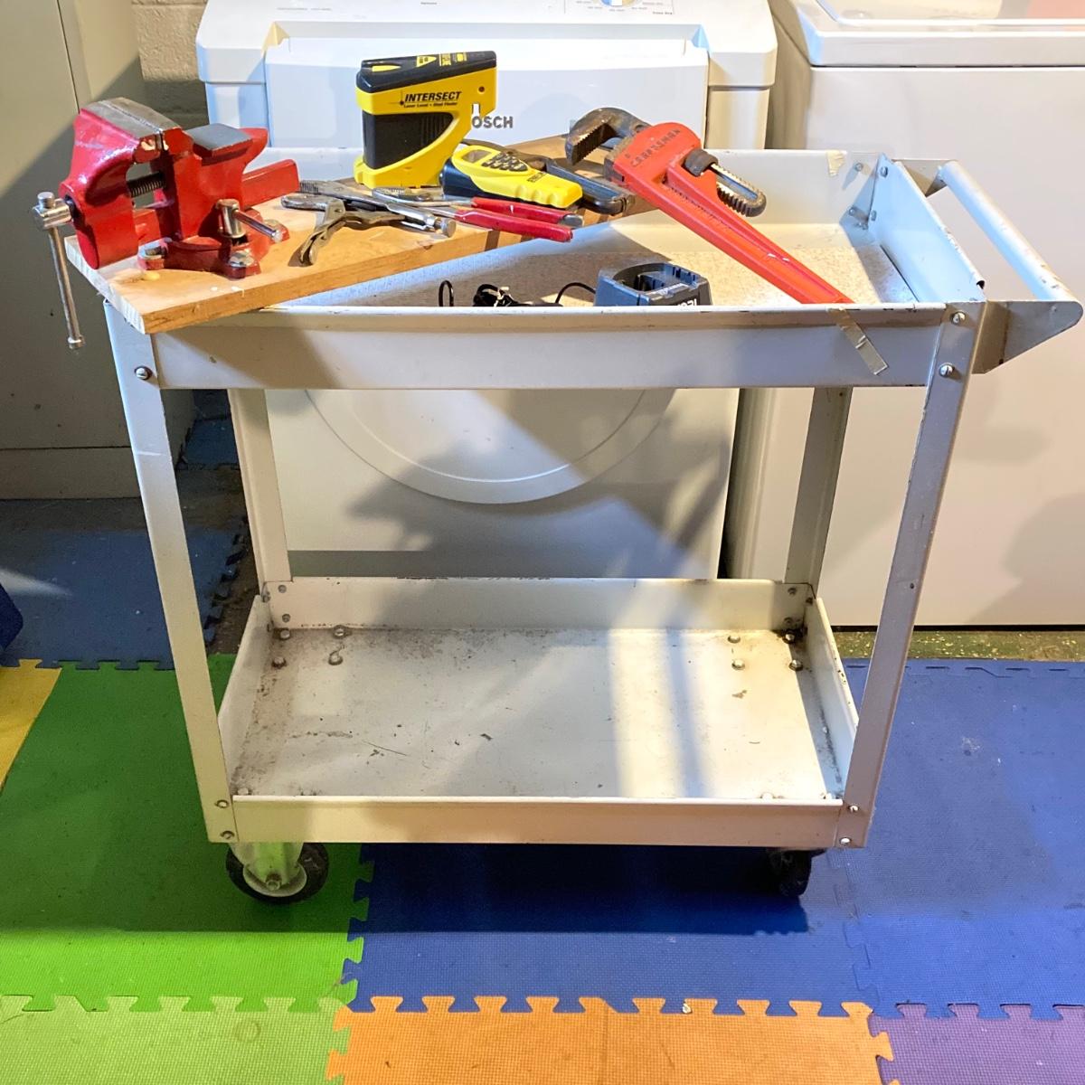 LOT 194: Metal Rolling Utility Cart with Tools - Vise, Craftsman, Ryobi Inclluded