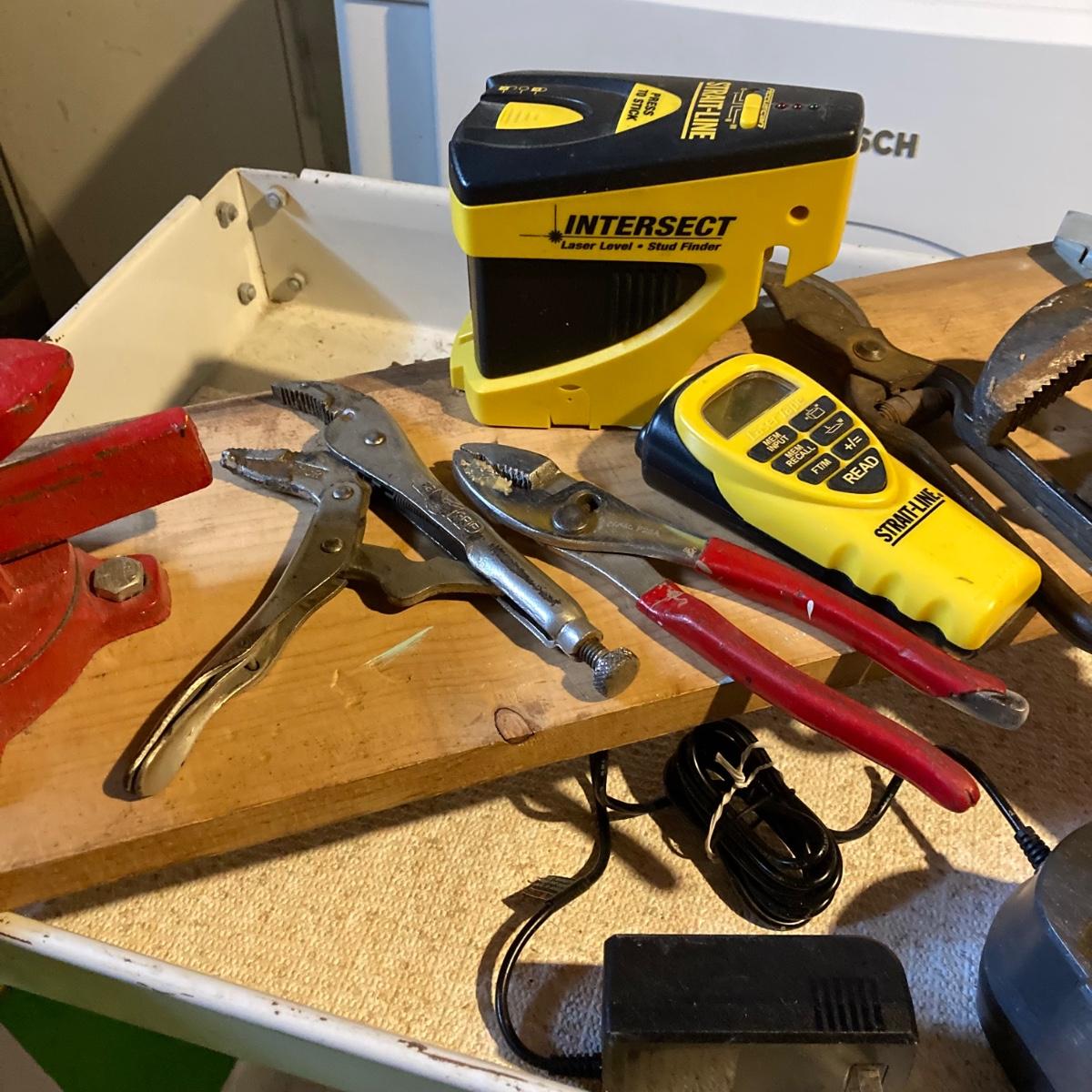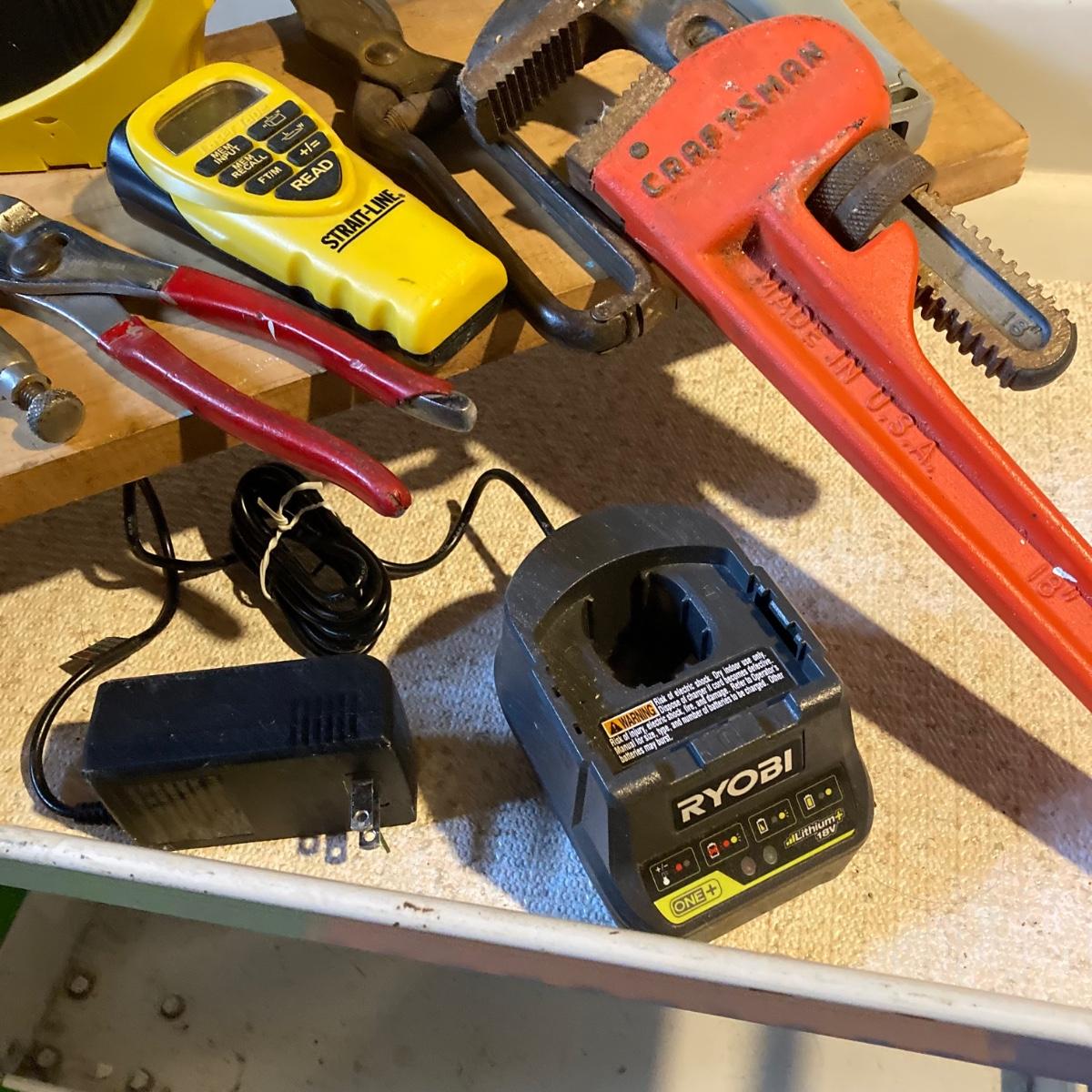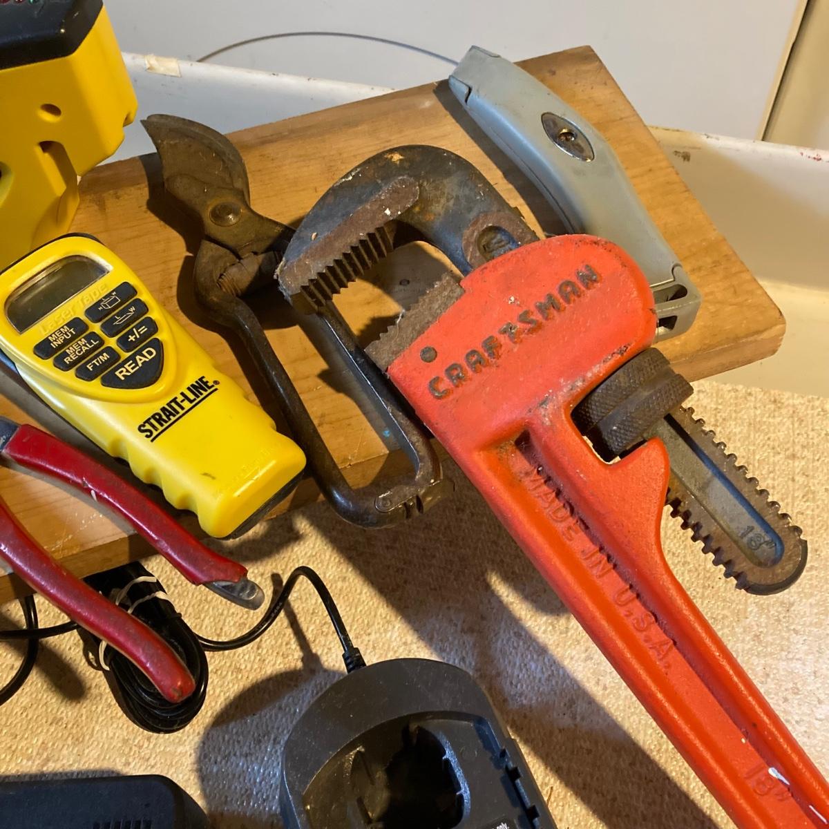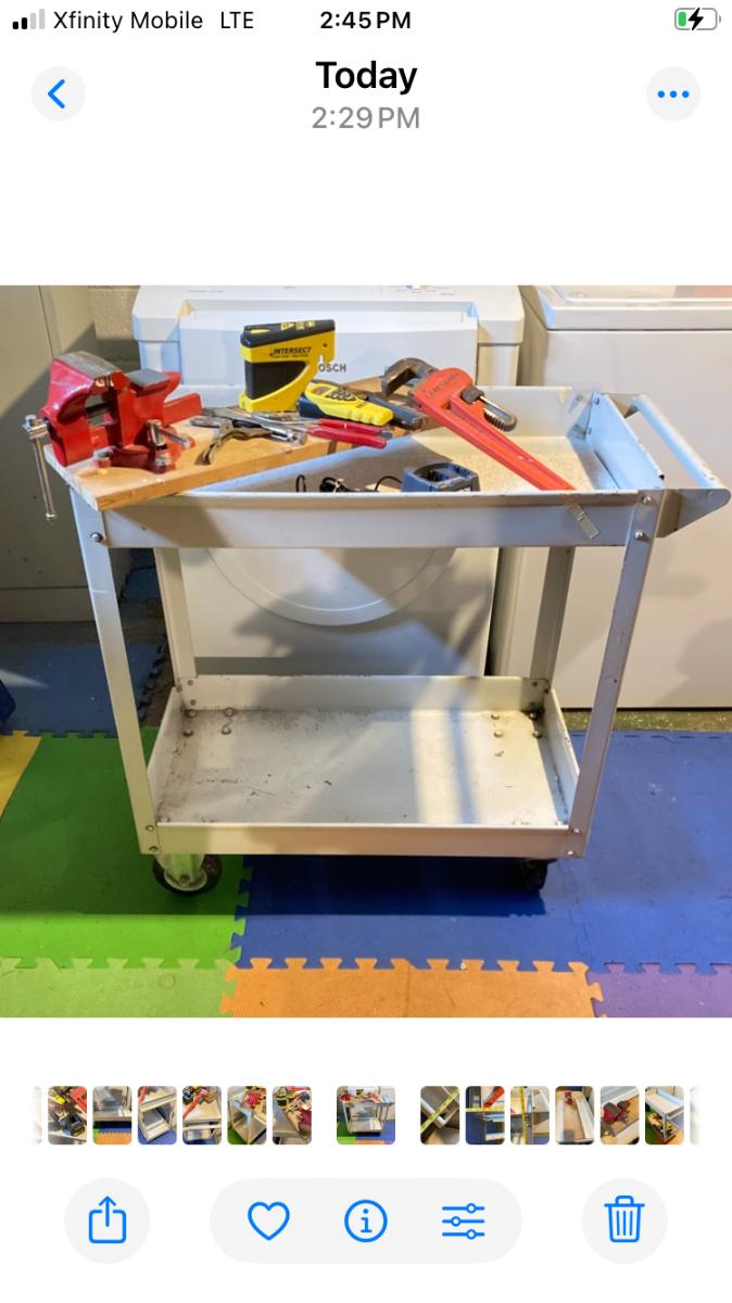 LOT 194: Metal Rolling Utility Cart with Tools - Vise, Craftsman, Ryobi Inclluded