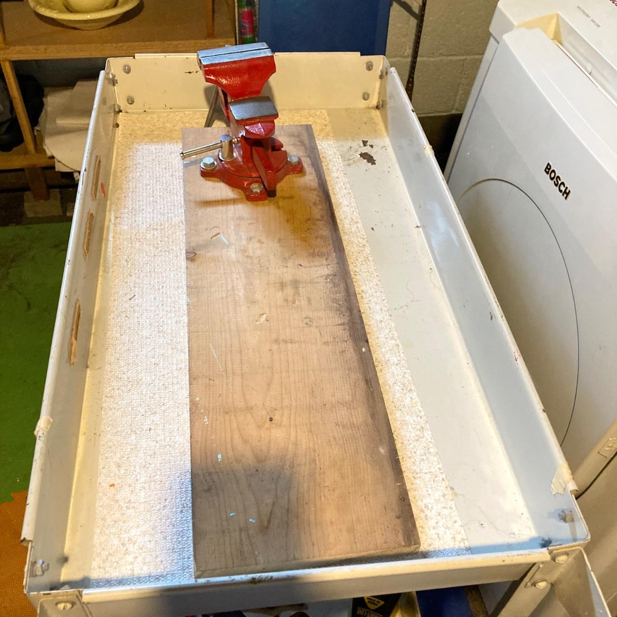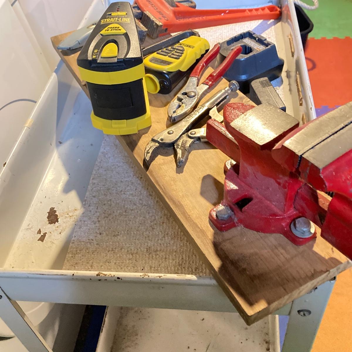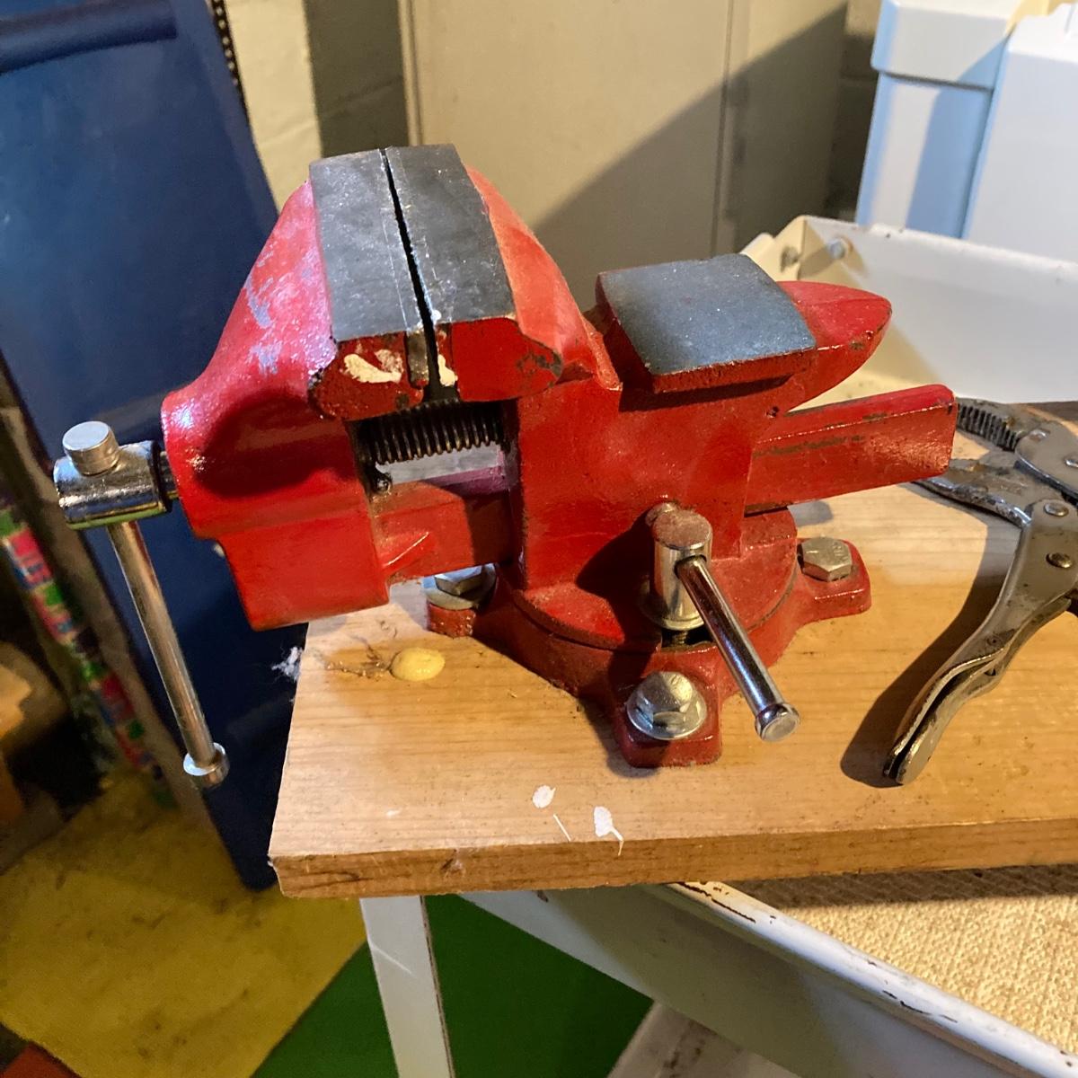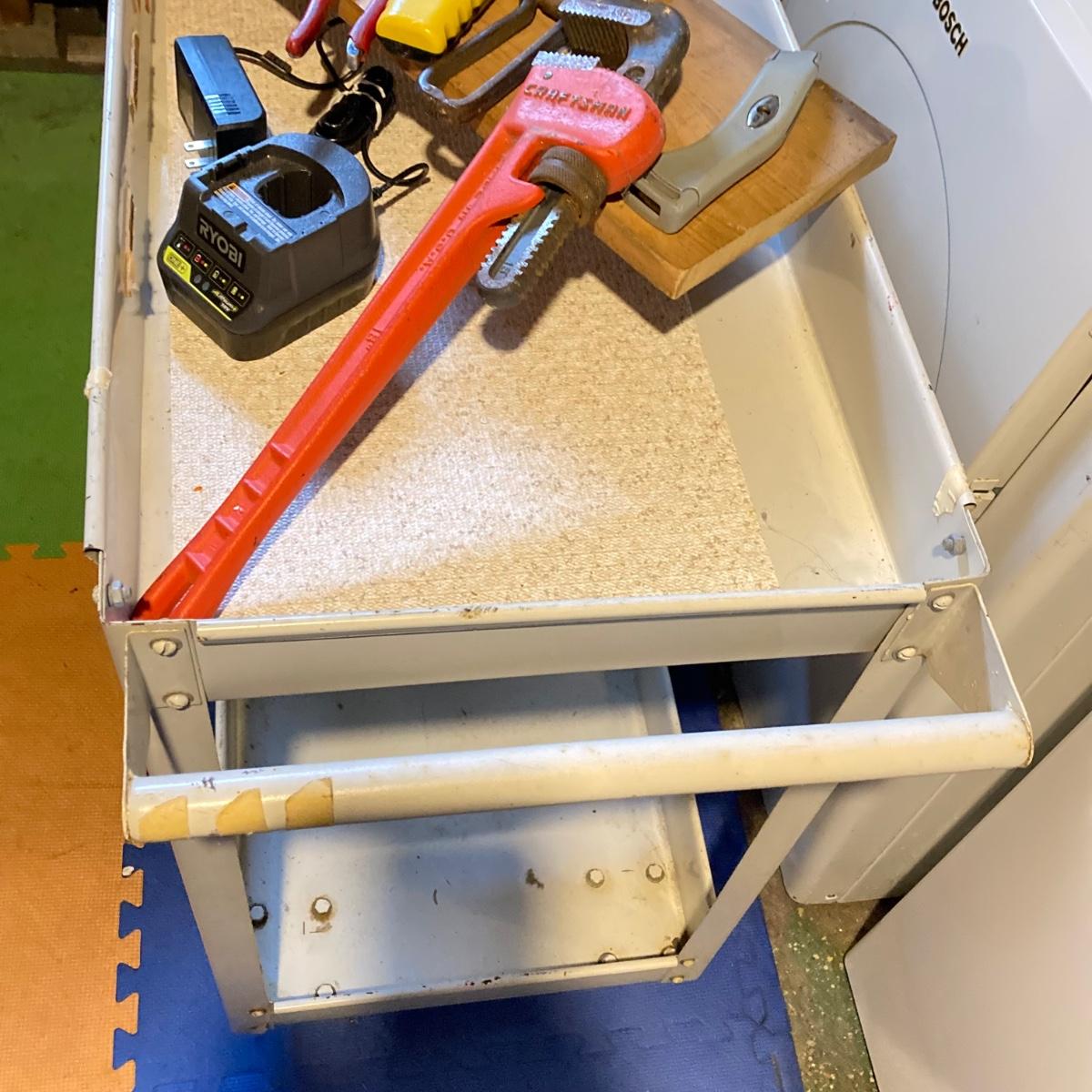 LOT 194: Metal Rolling Utility Cart with Tools - Vise, Craftsman, Ryobi Inclluded