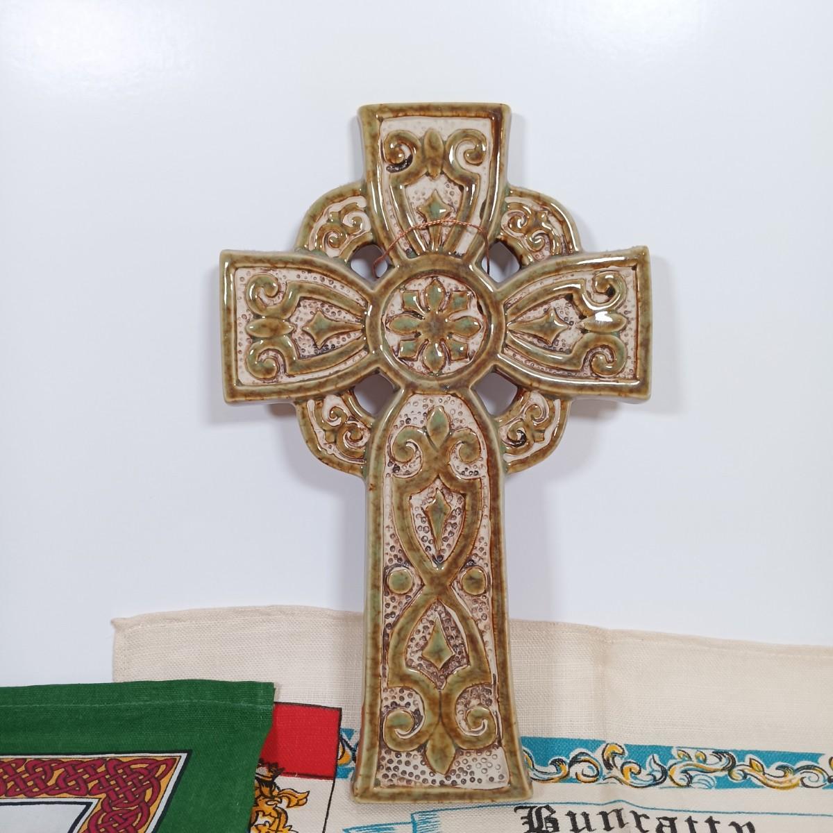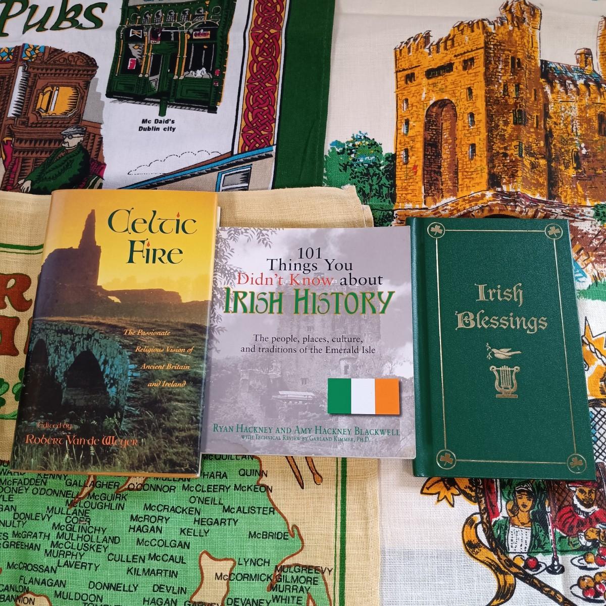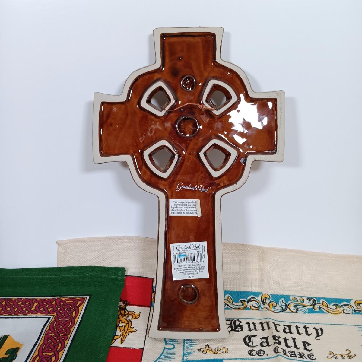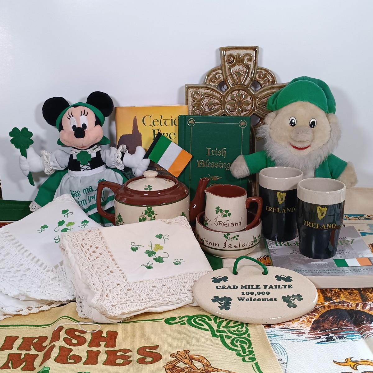 LOT 217: Irish Collection of Pottery, Linens, Celtic Cross, Books & More