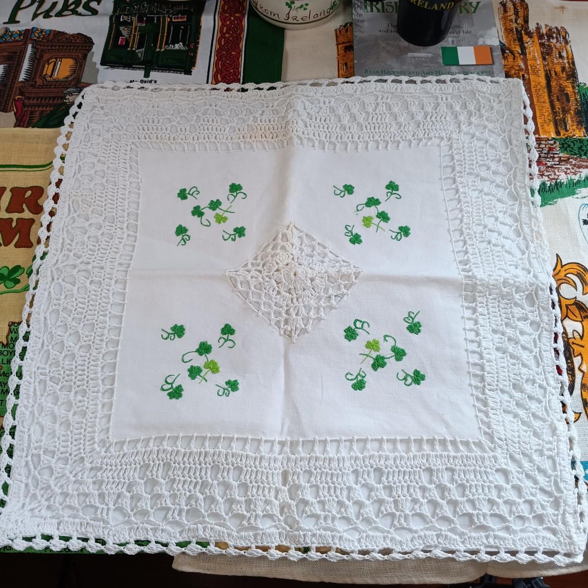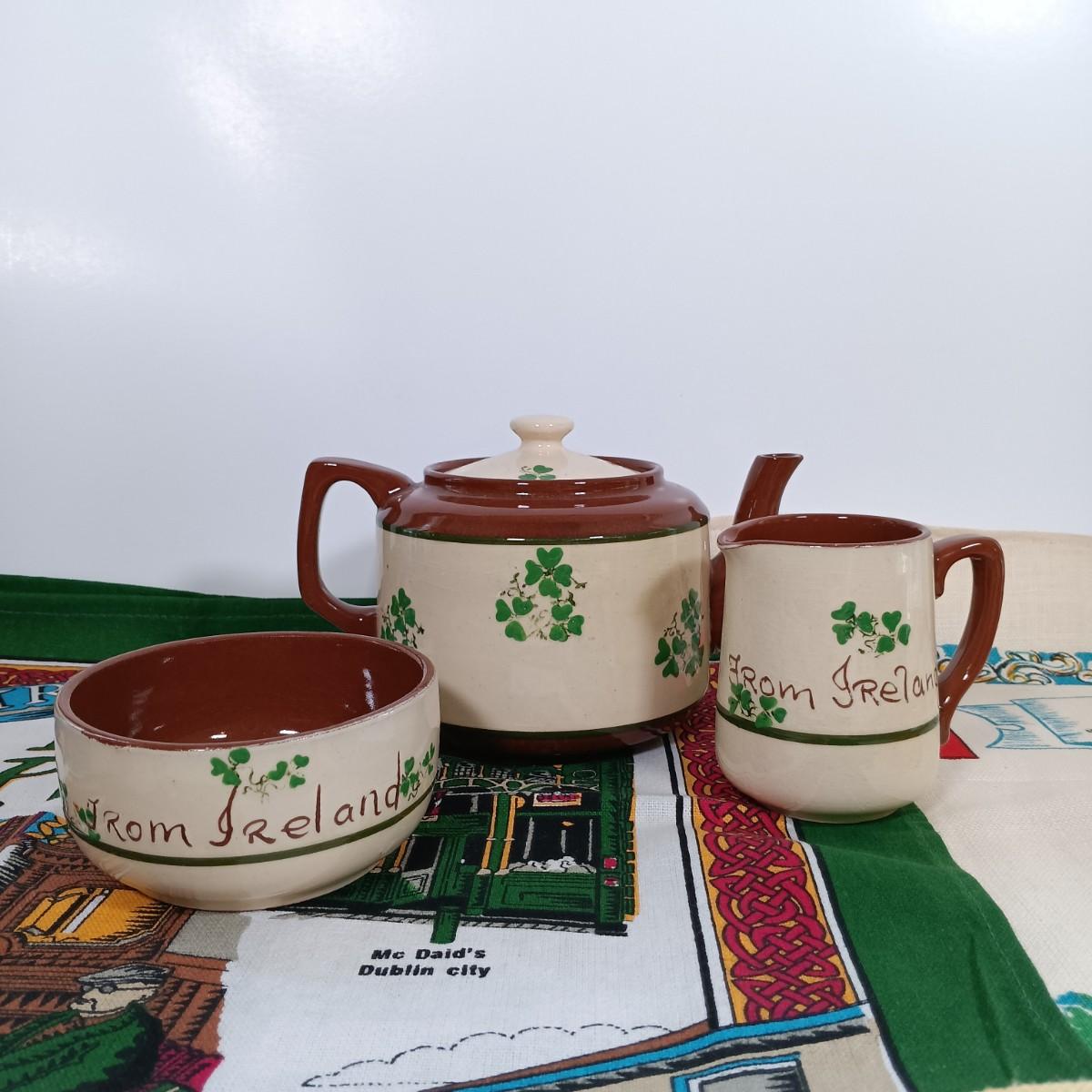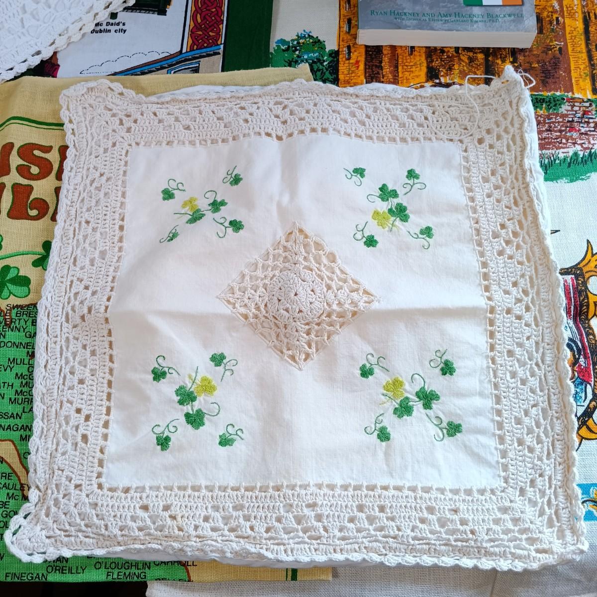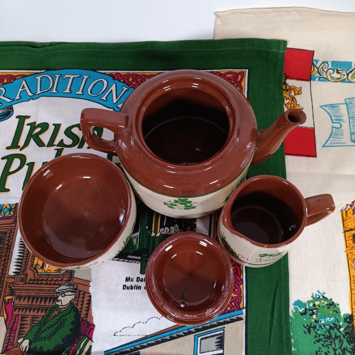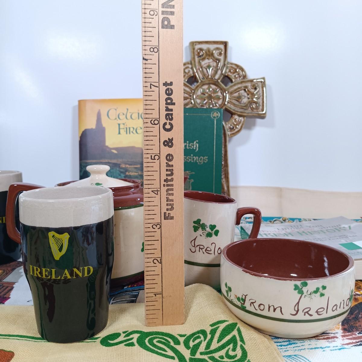 LOT 217: Irish Collection of Pottery, Linens, Celtic Cross, Books & More