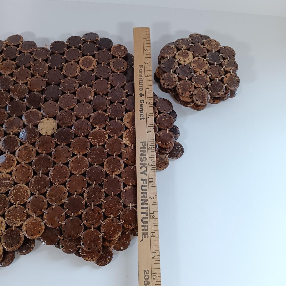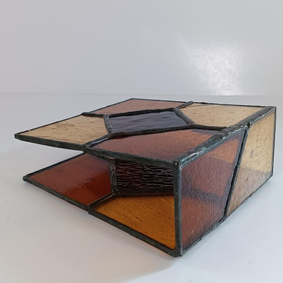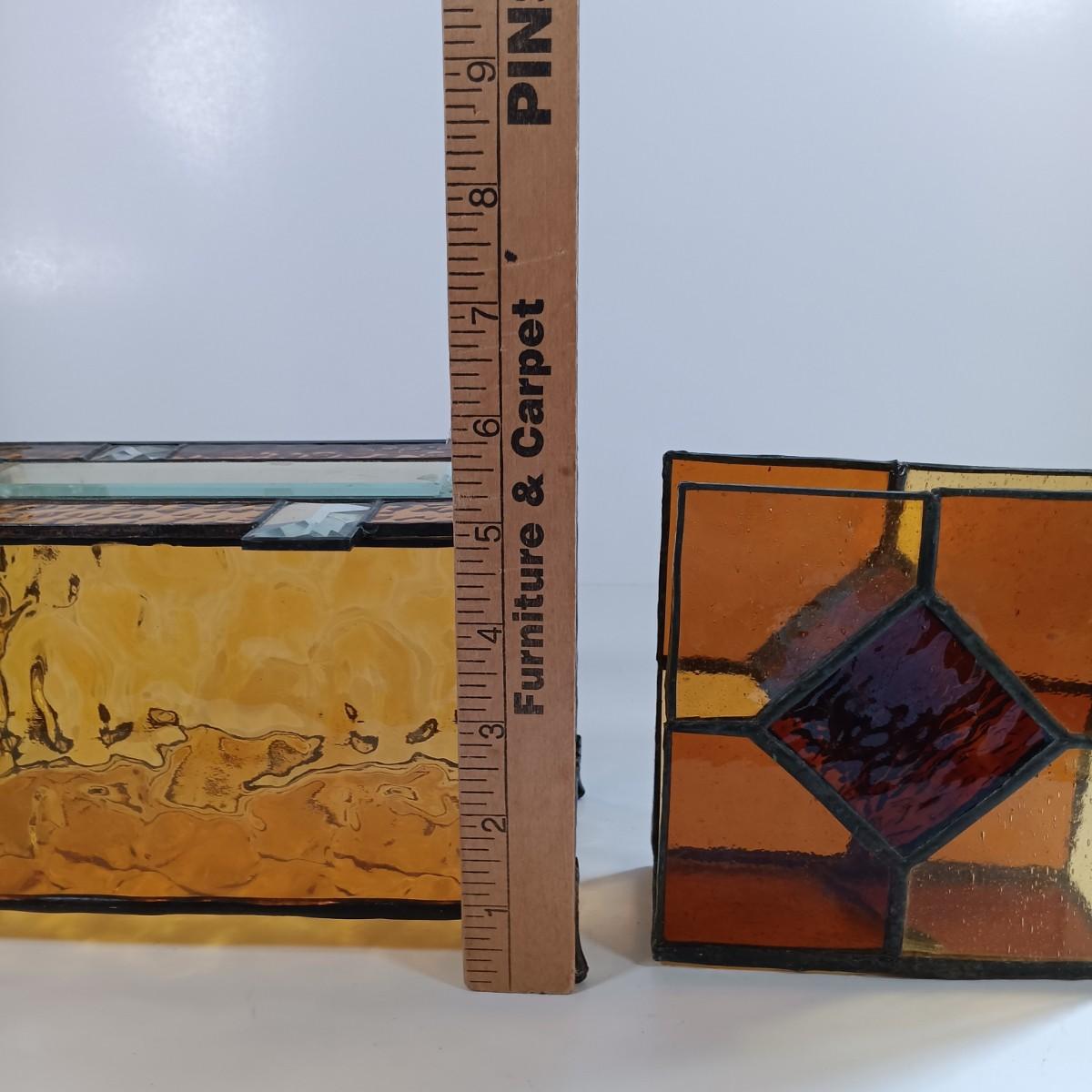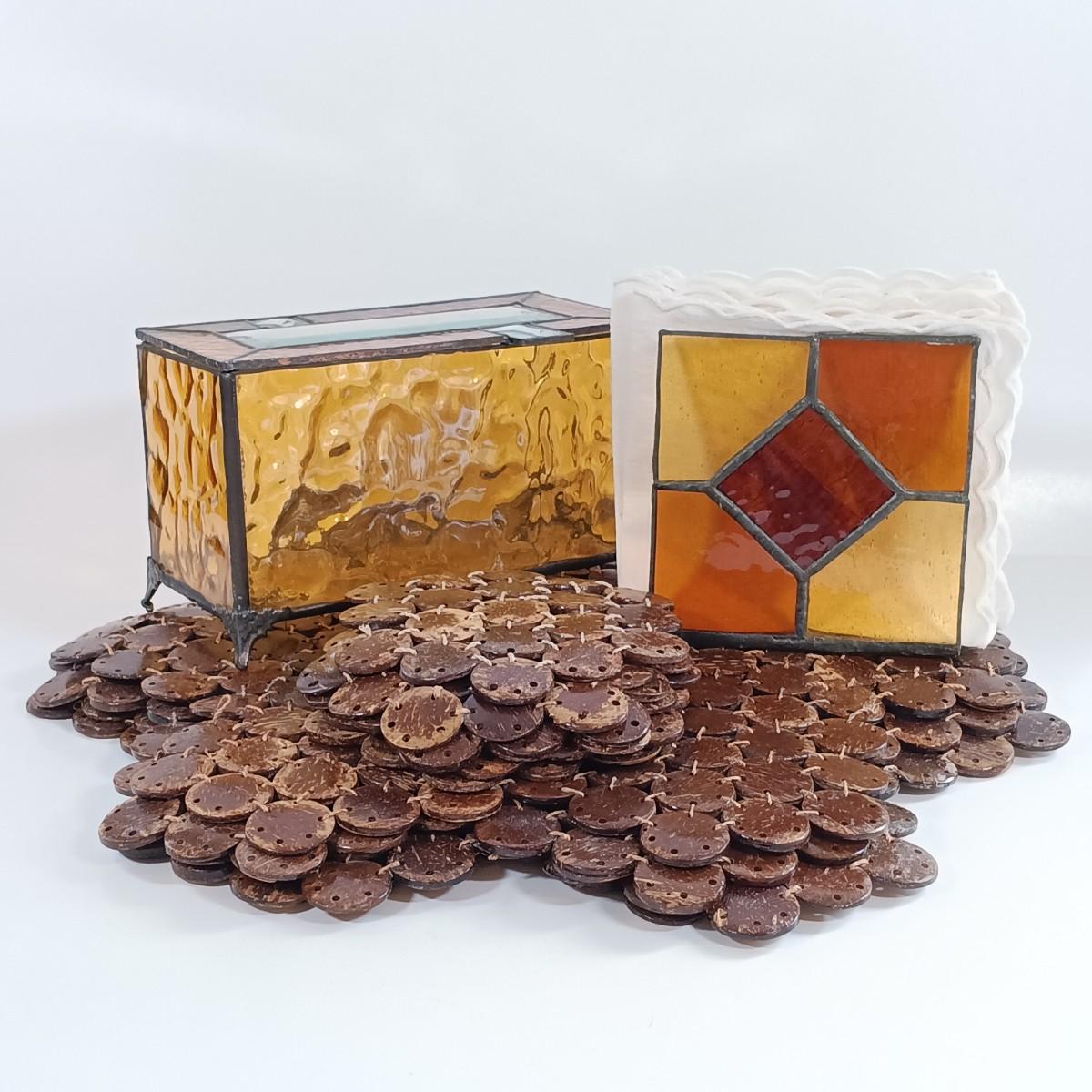 LOT 221: Stained Glass Napkin Holder and Box with Wood / Nut Shell Placemats