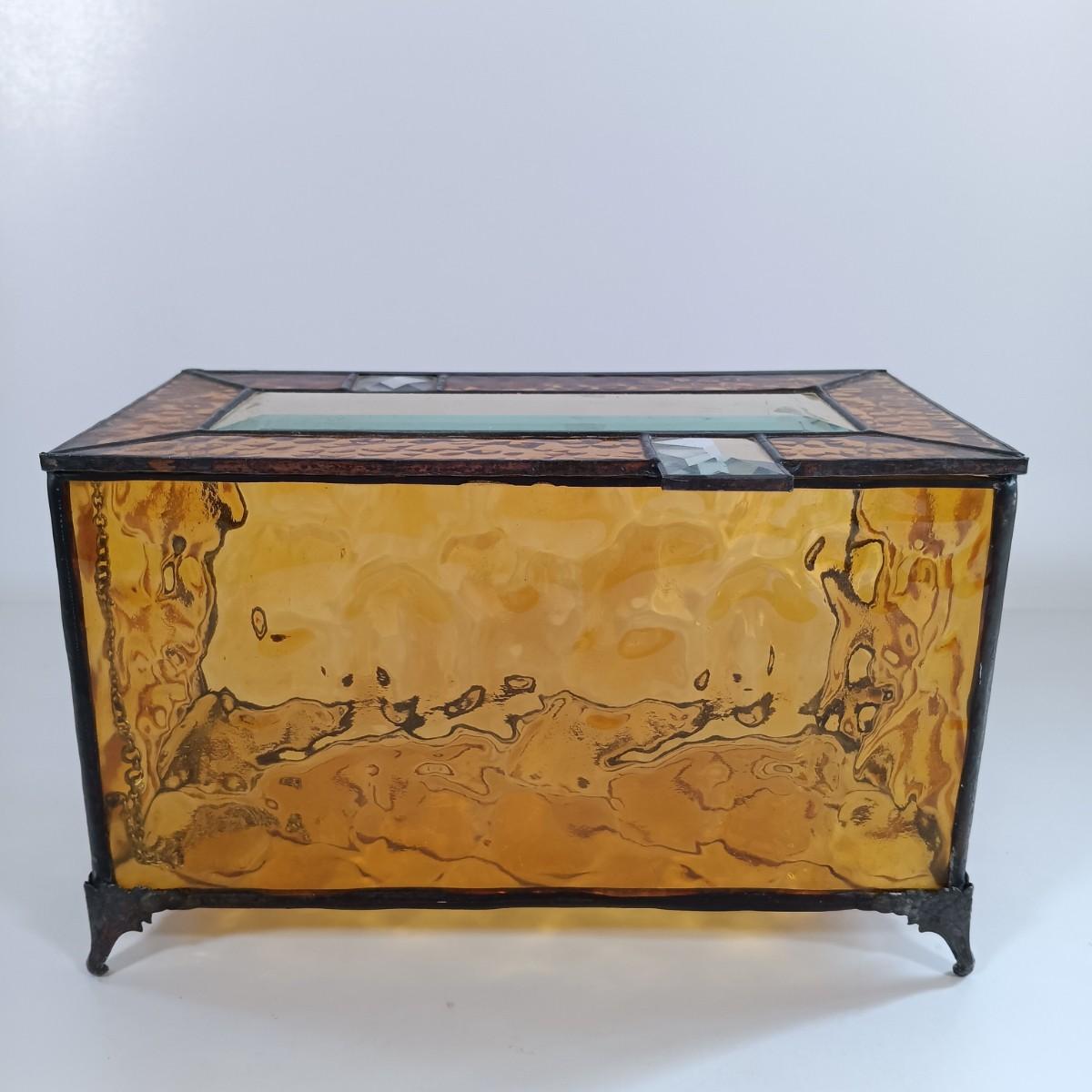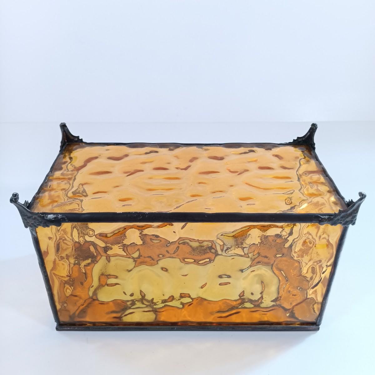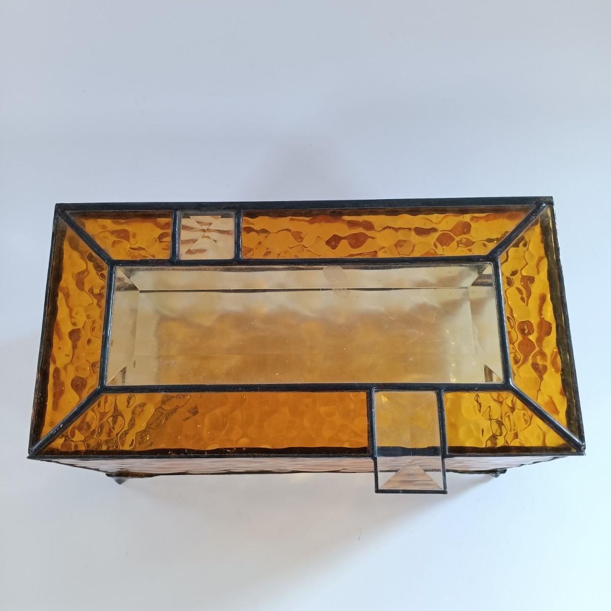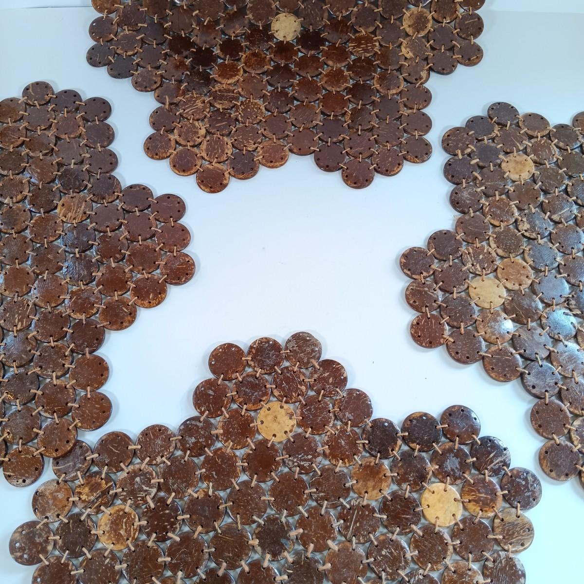 LOT 221: Stained Glass Napkin Holder and Box with Wood / Nut Shell Placemats