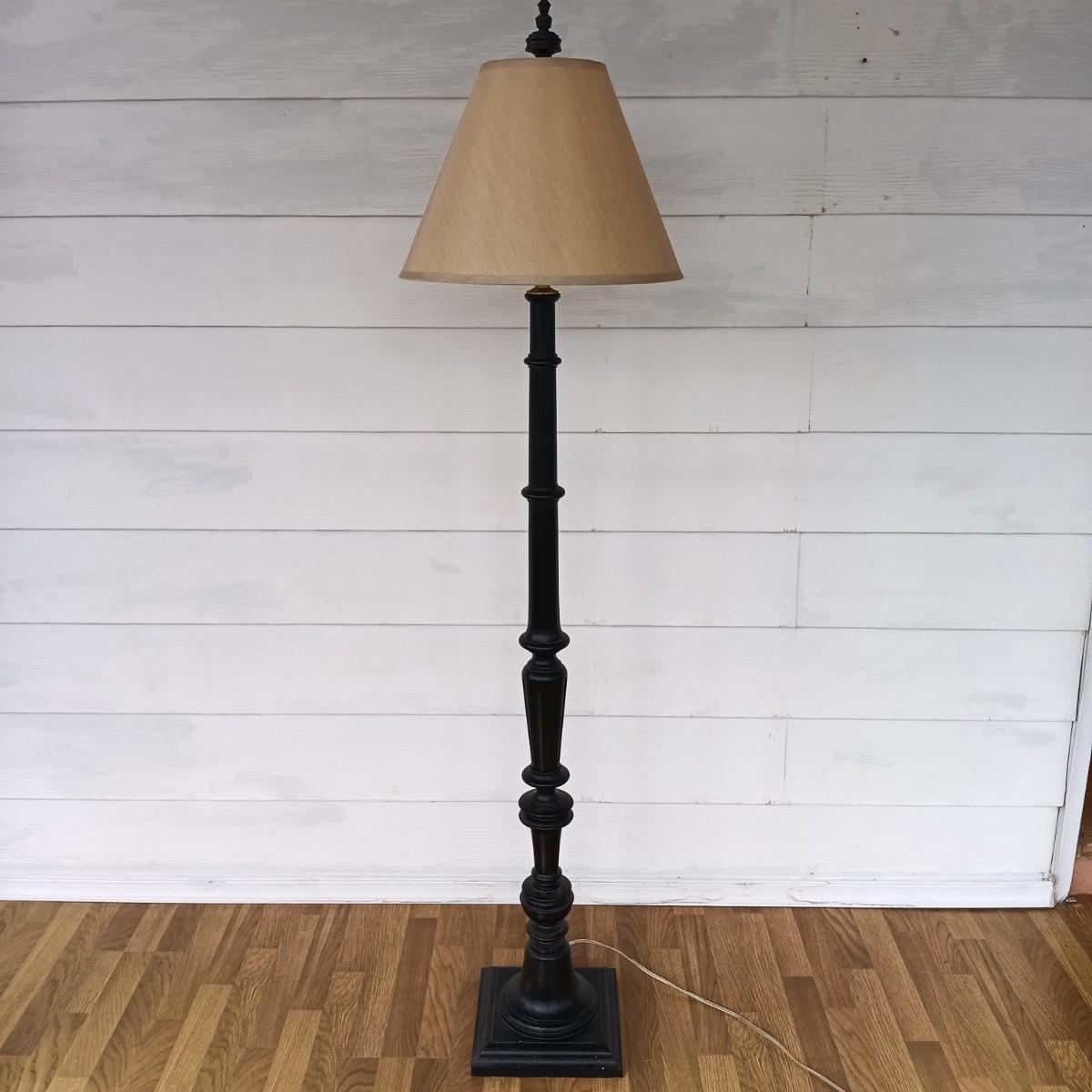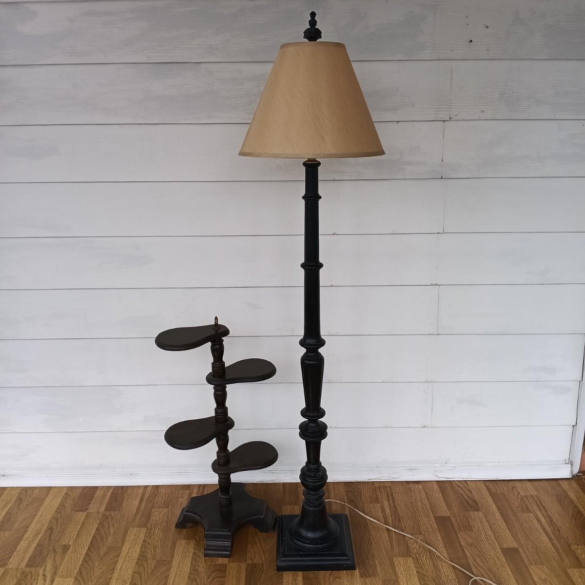 LOT 222: MCM Wooden Floor Lamp with Plant Stand