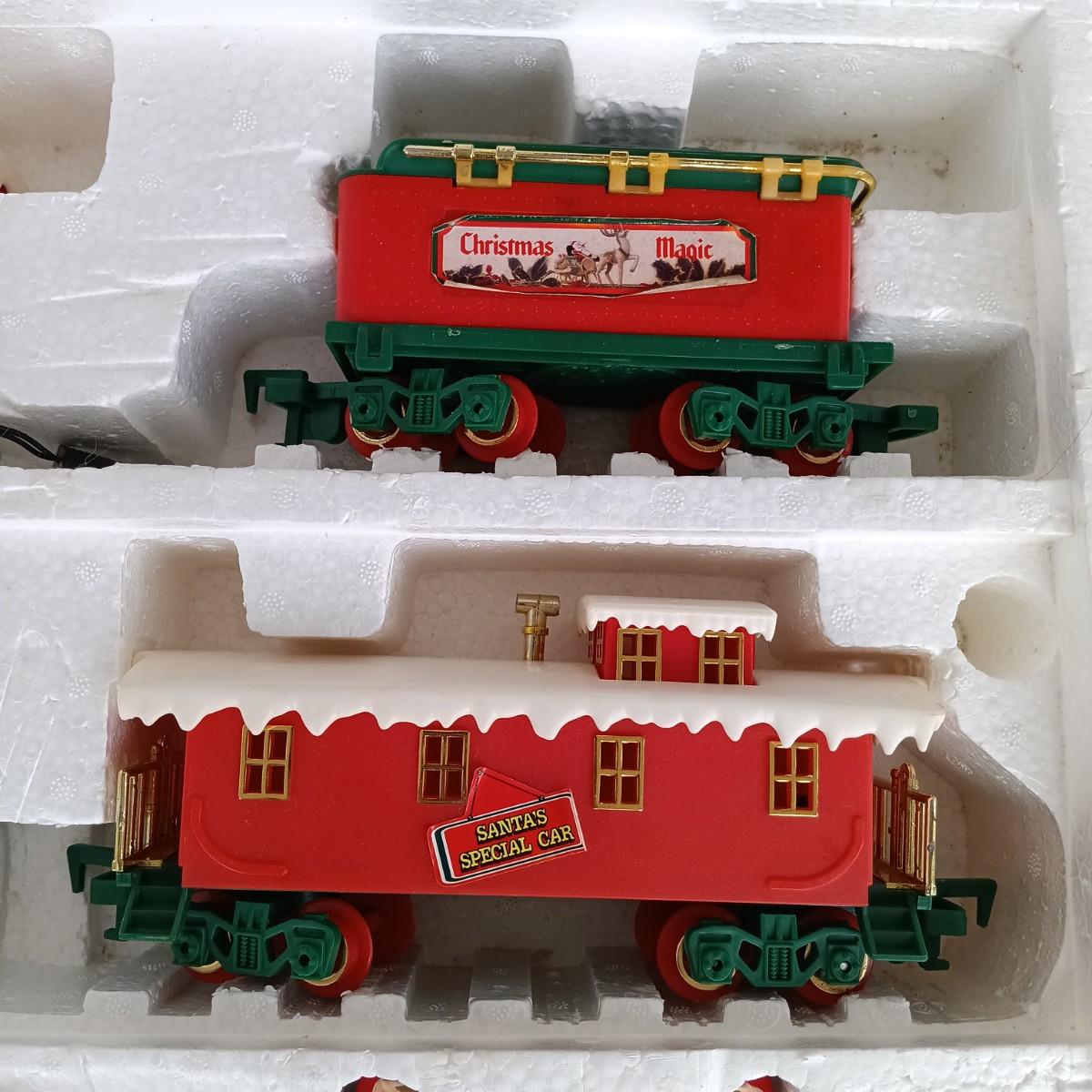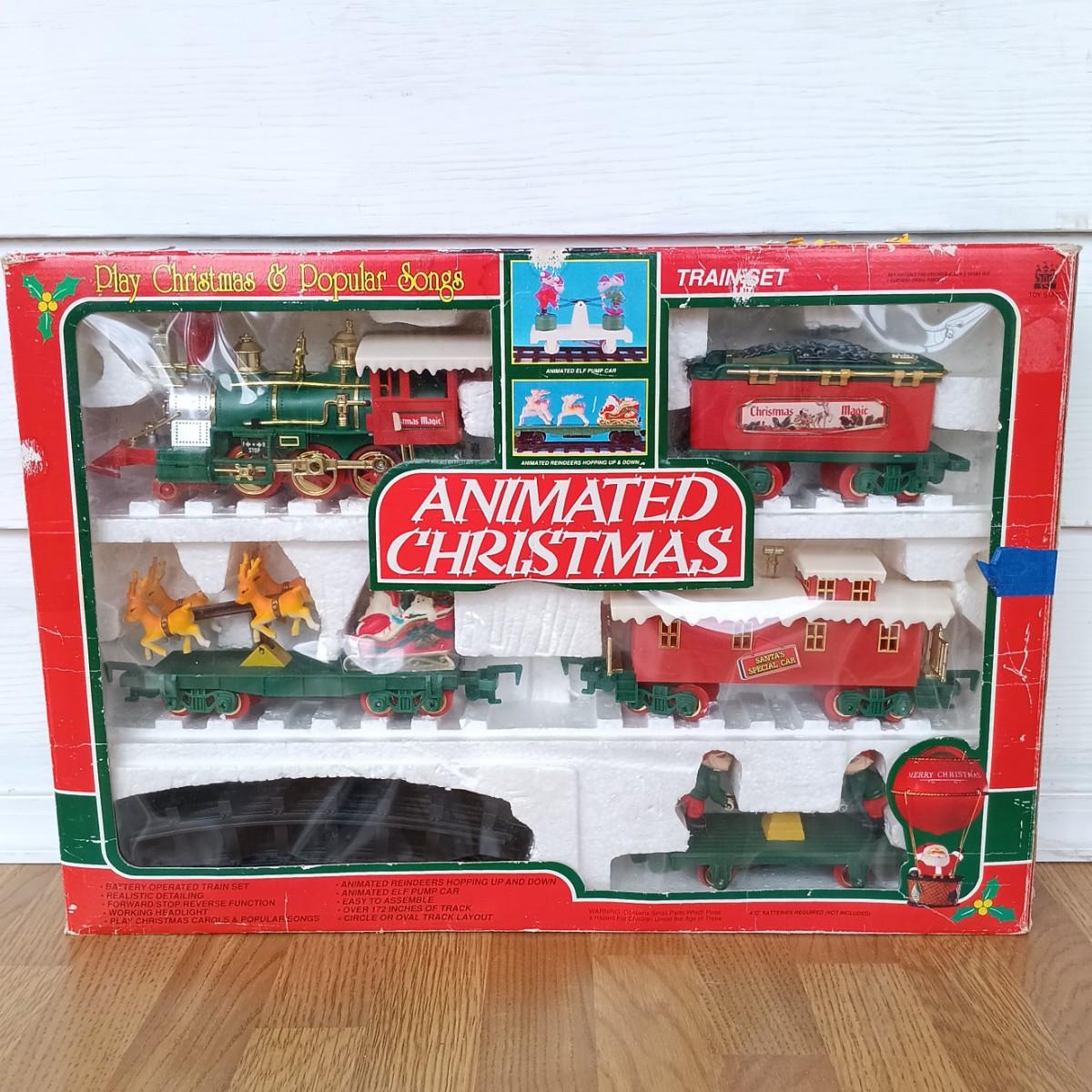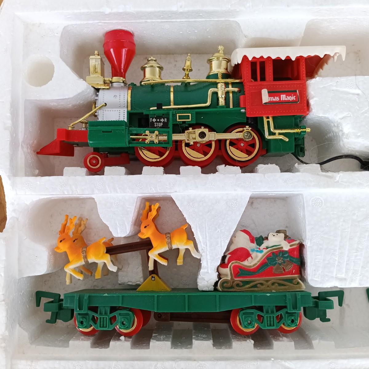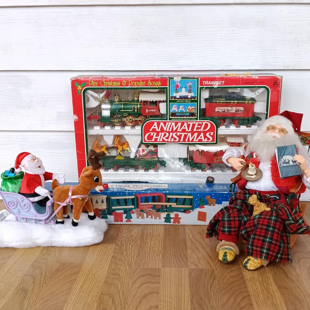 LOT 223: Vintage Christmas Train Sets with Santa in Rocking Chair & Rudolph and Santa