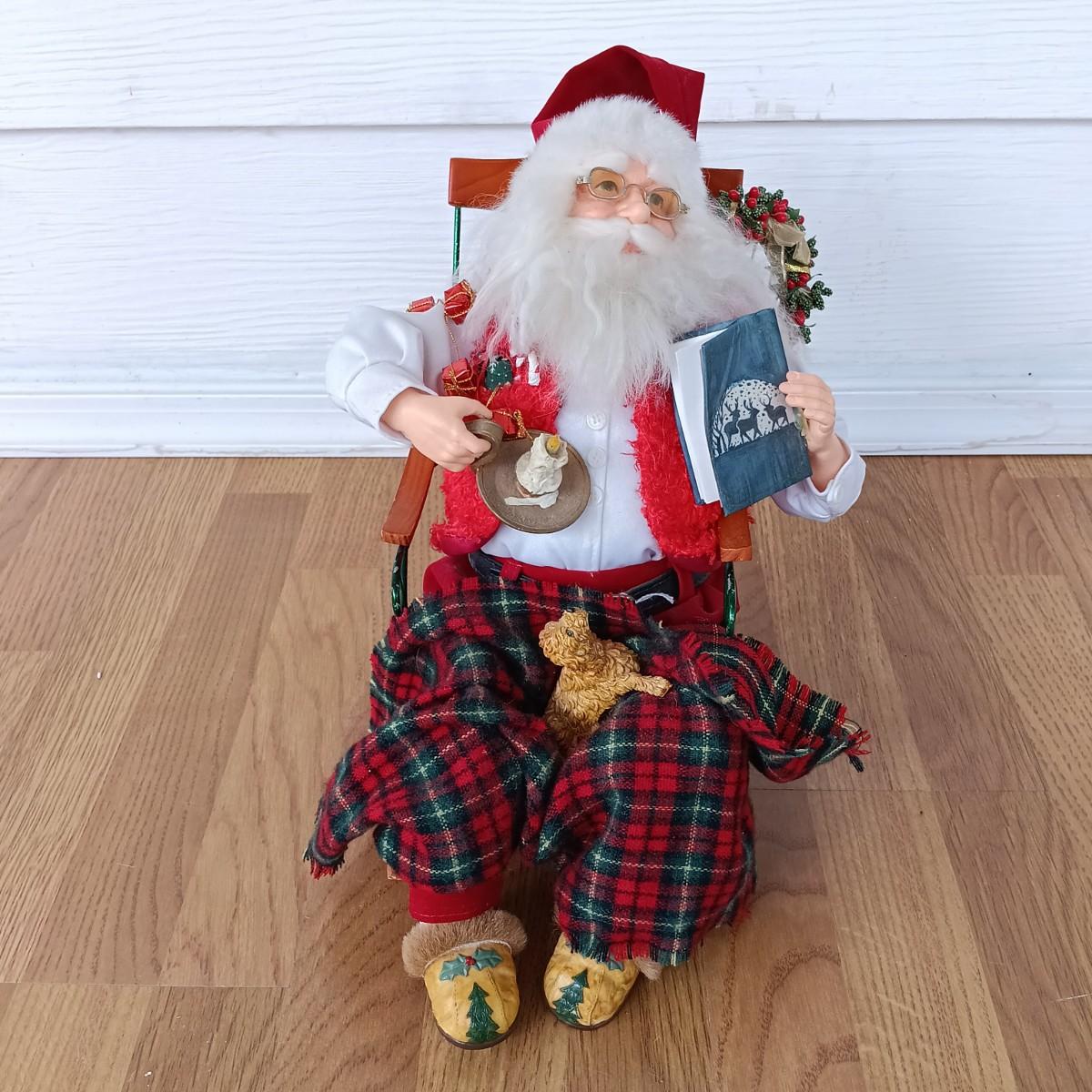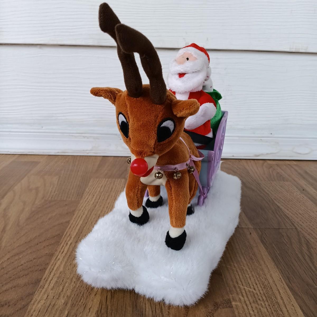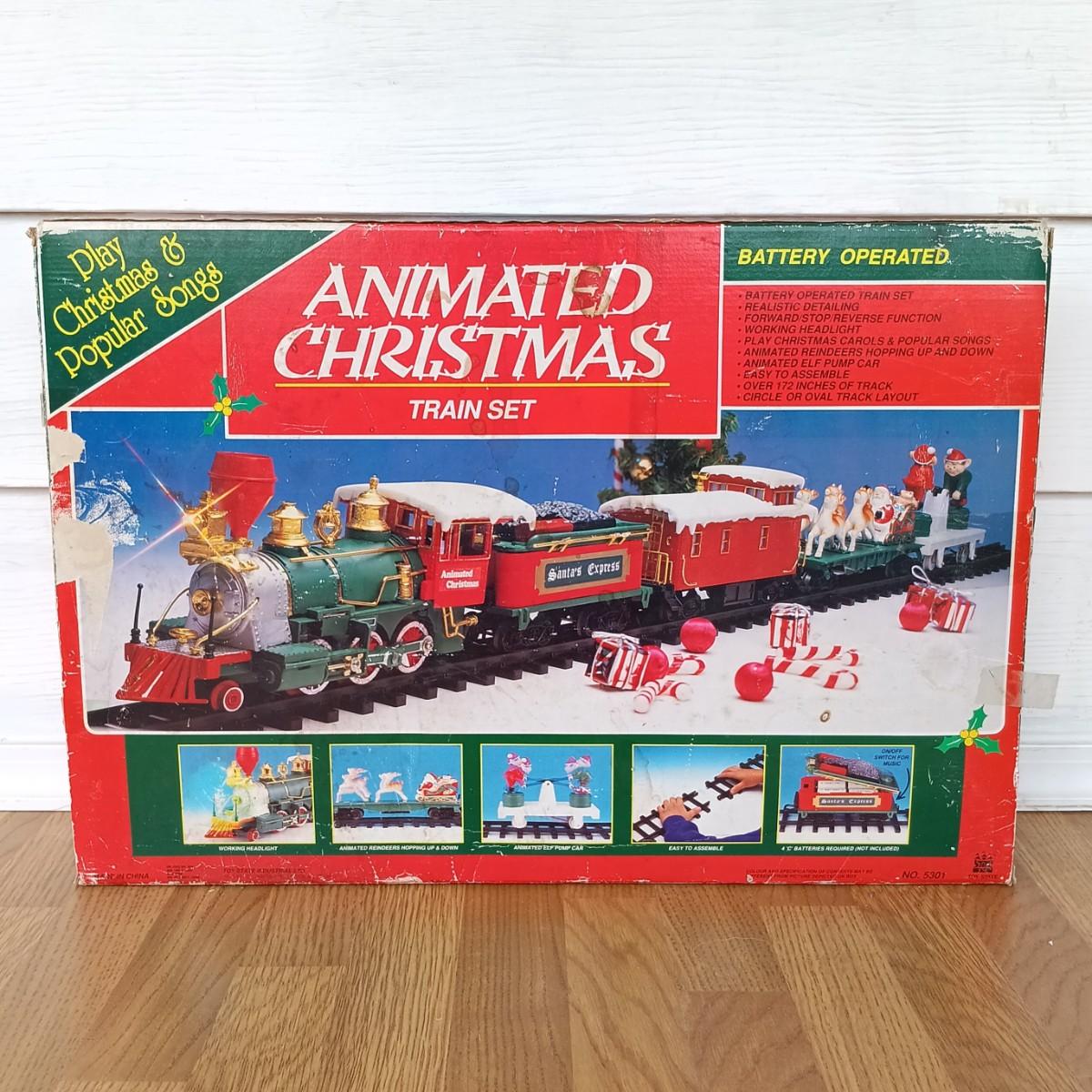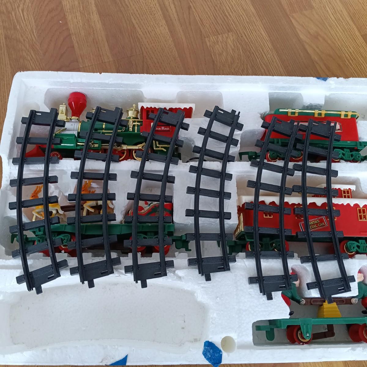 LOT 223: Vintage Christmas Train Sets with Santa in Rocking Chair & Rudolph and Santa