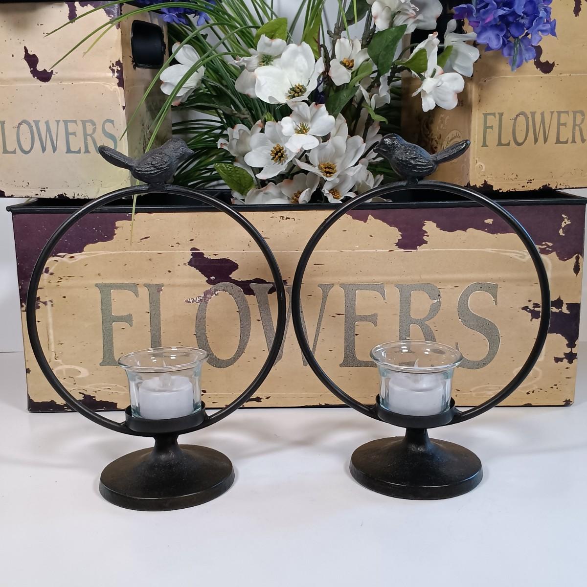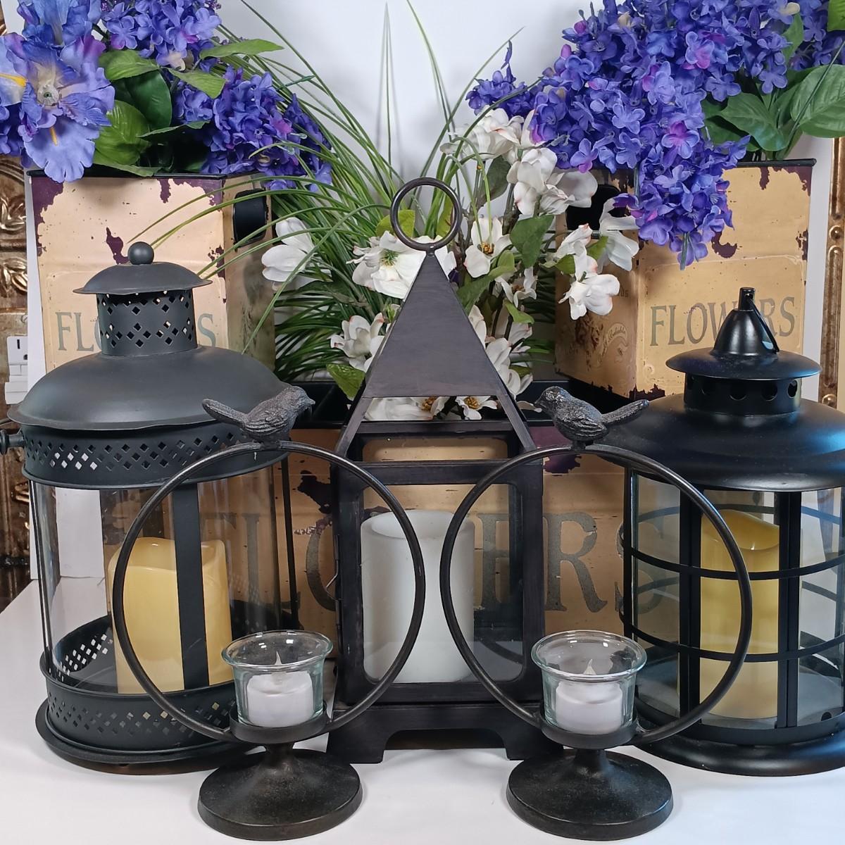 LOT 227: Metal Flower Boxes, Lantern Candle Holders & Bird Candle Holders