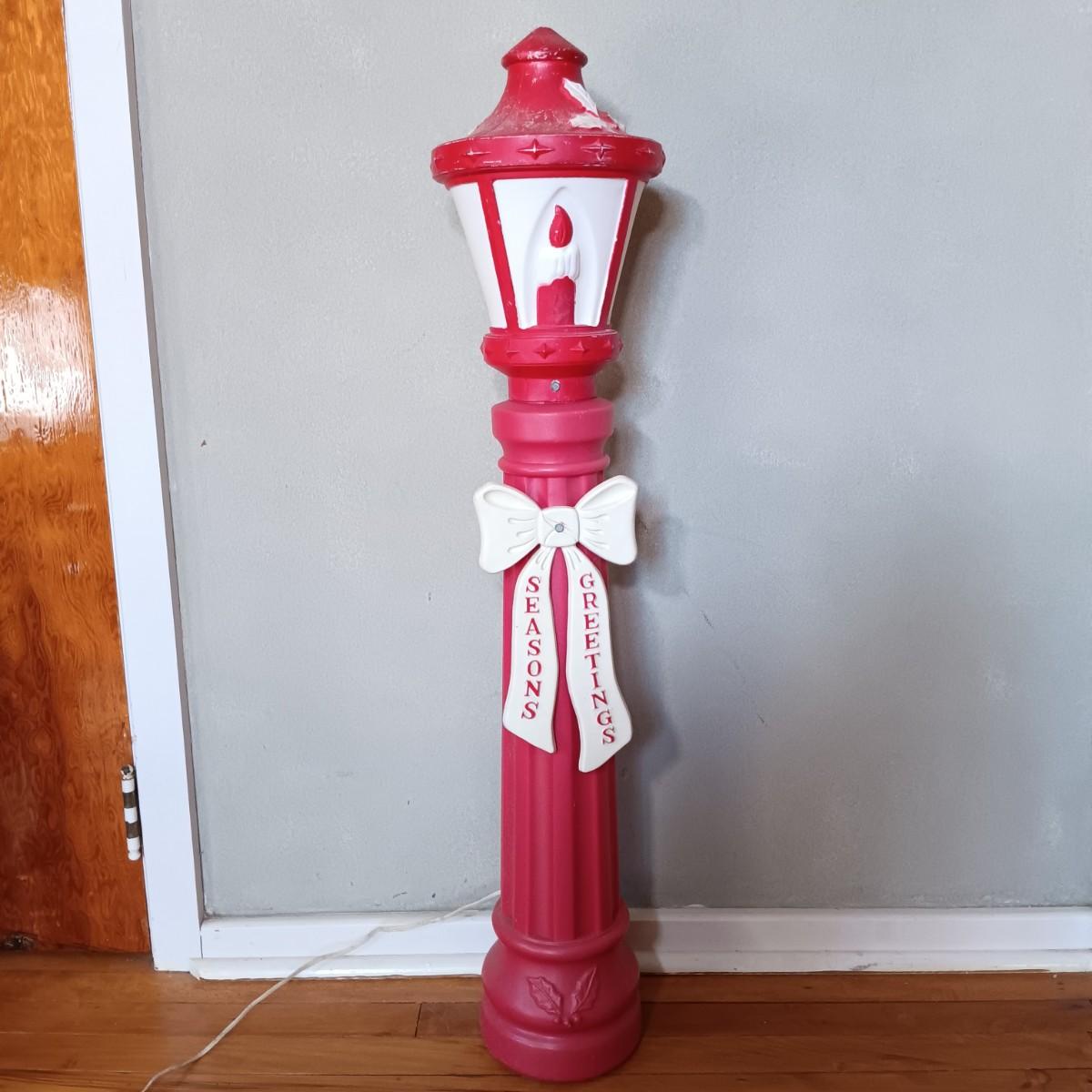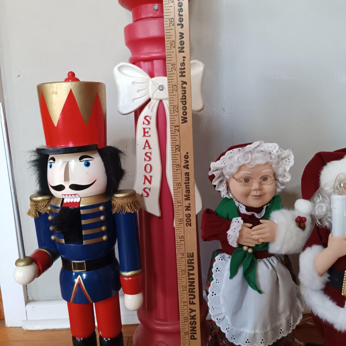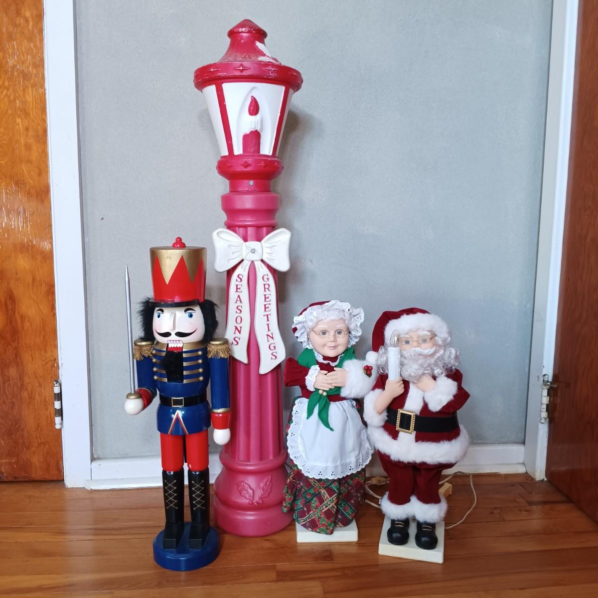 LOT 230: BECO Blow Mold Christmas Lamp Post with Nutcracker, Mrs Claus & Santa Claus