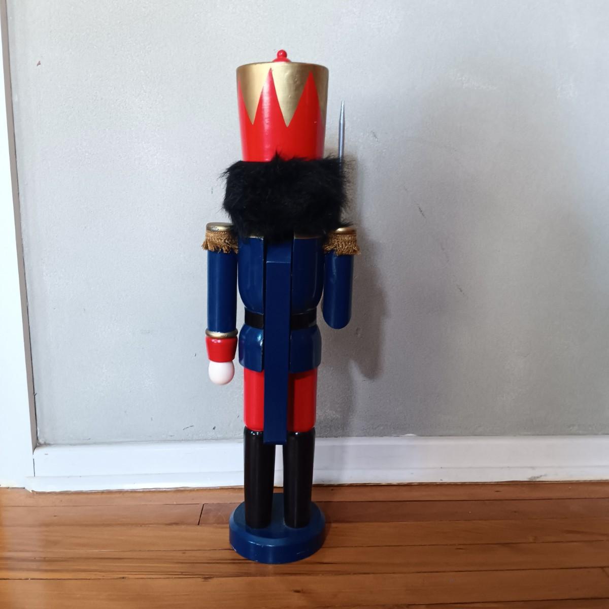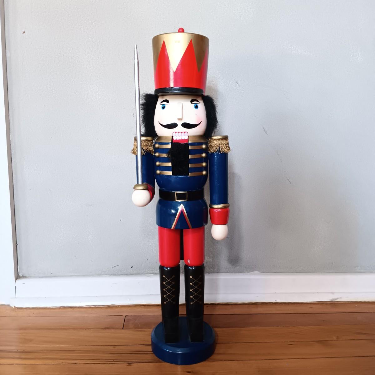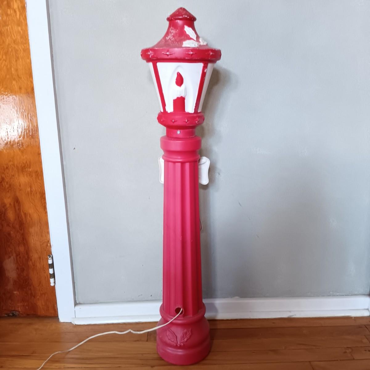 LOT 230: BECO Blow Mold Christmas Lamp Post with Nutcracker, Mrs Claus & Santa Claus