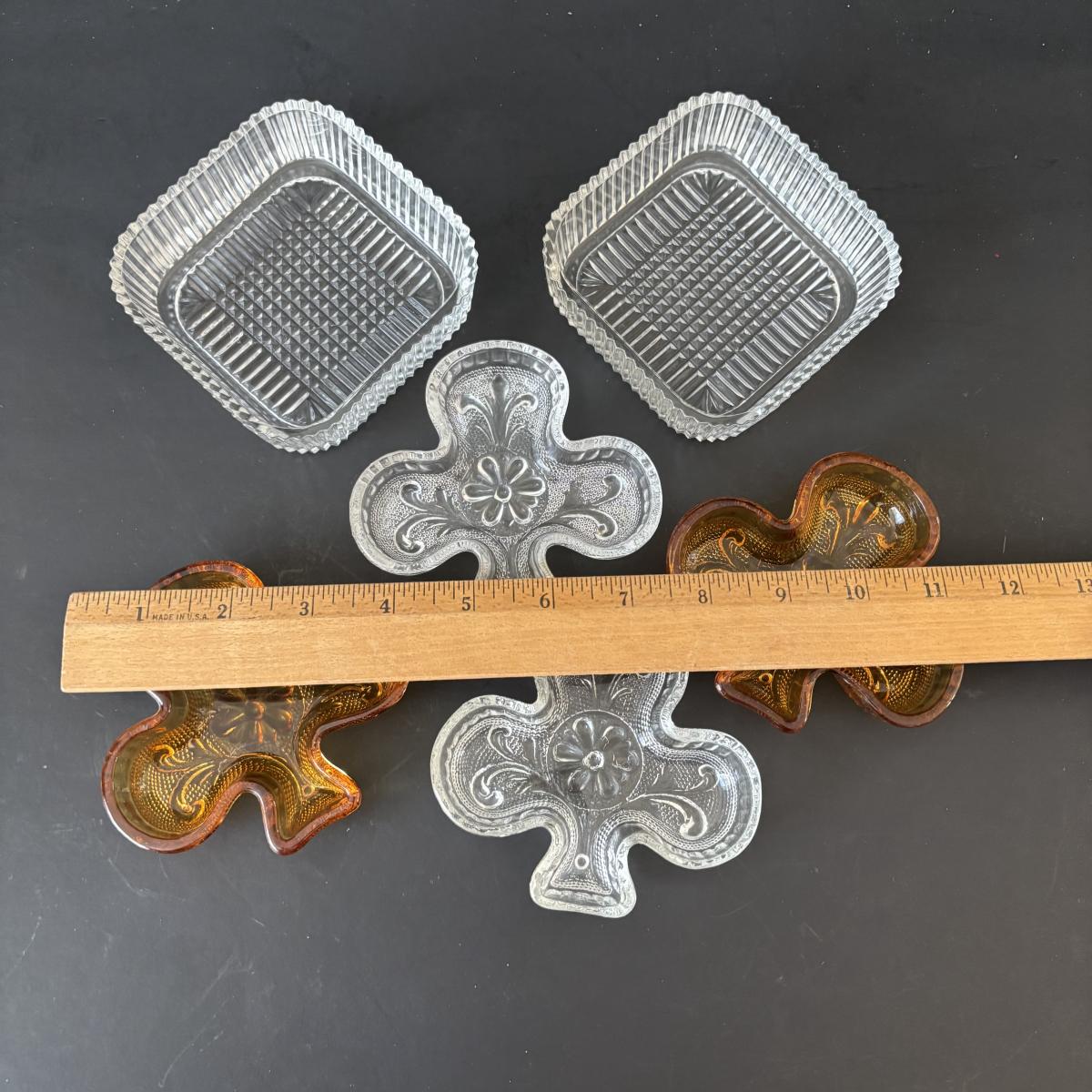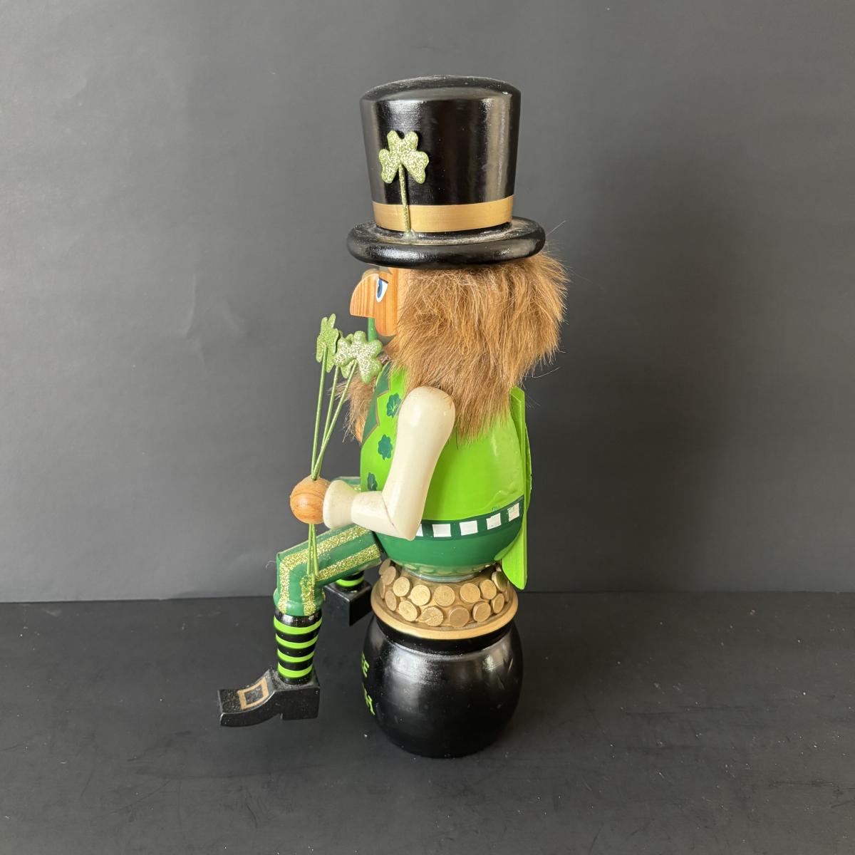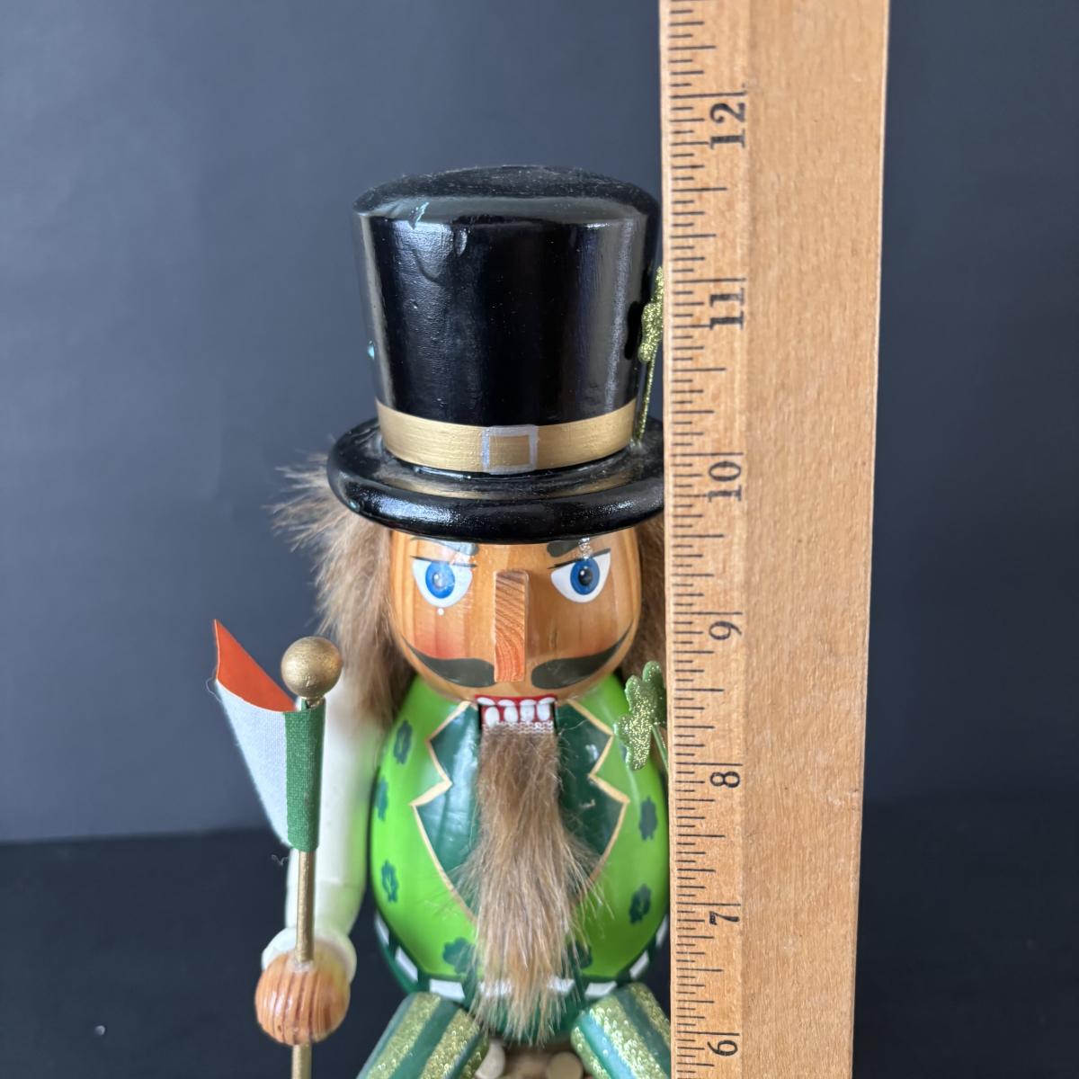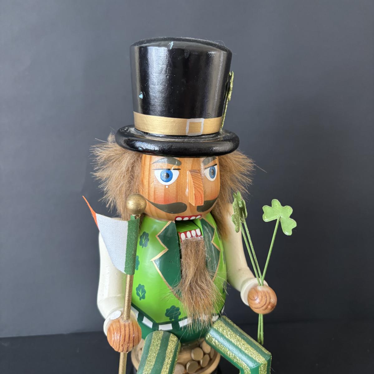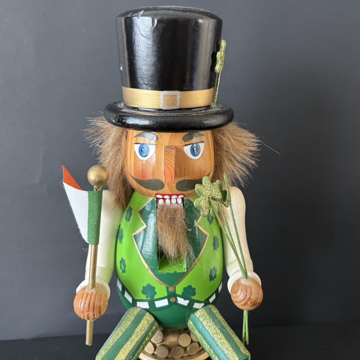 LOT 86: It's Good to Be Irish Collection: Nutcracker, Milk Glass Mugs, Clear & Amber Shamrock Trinket Dishes & More