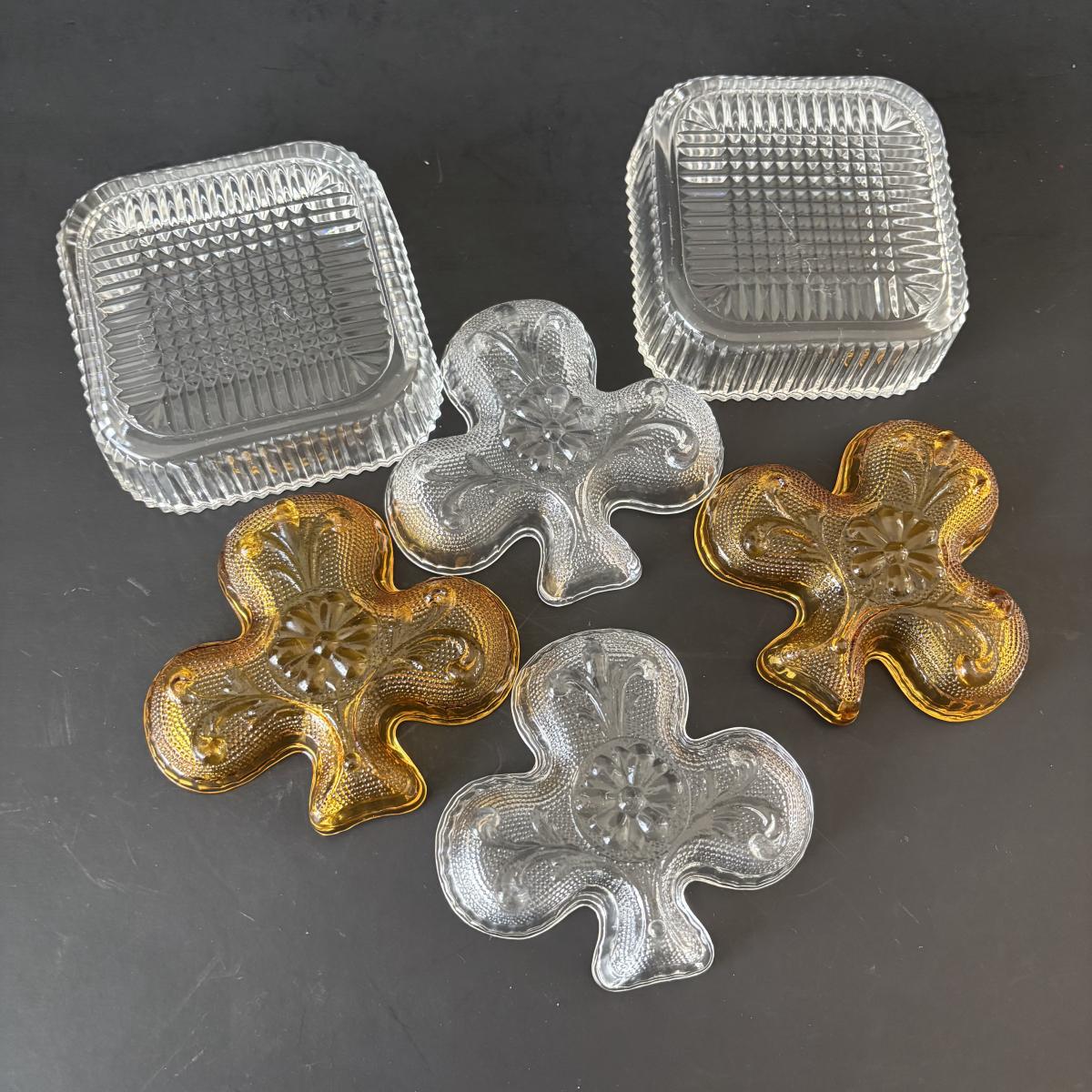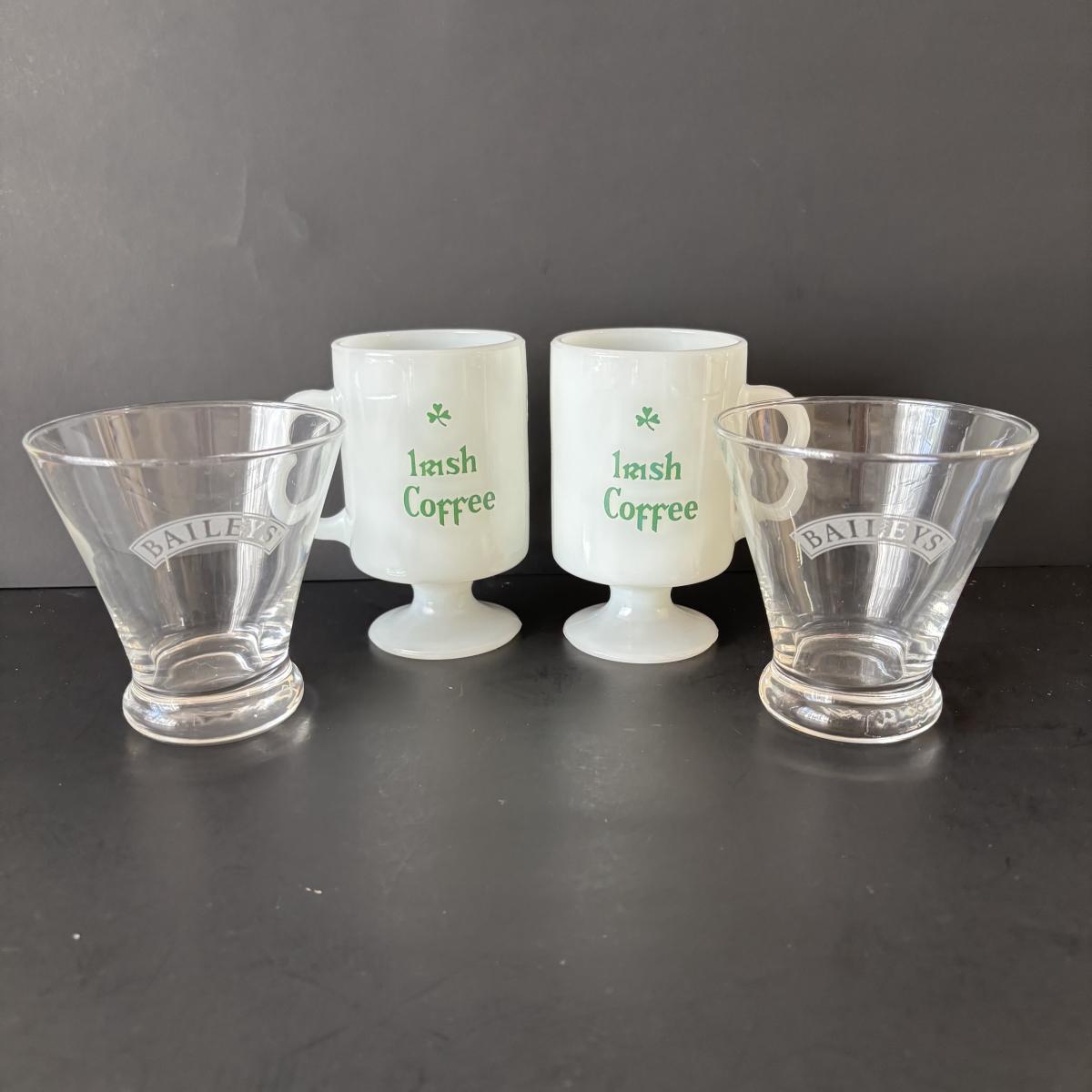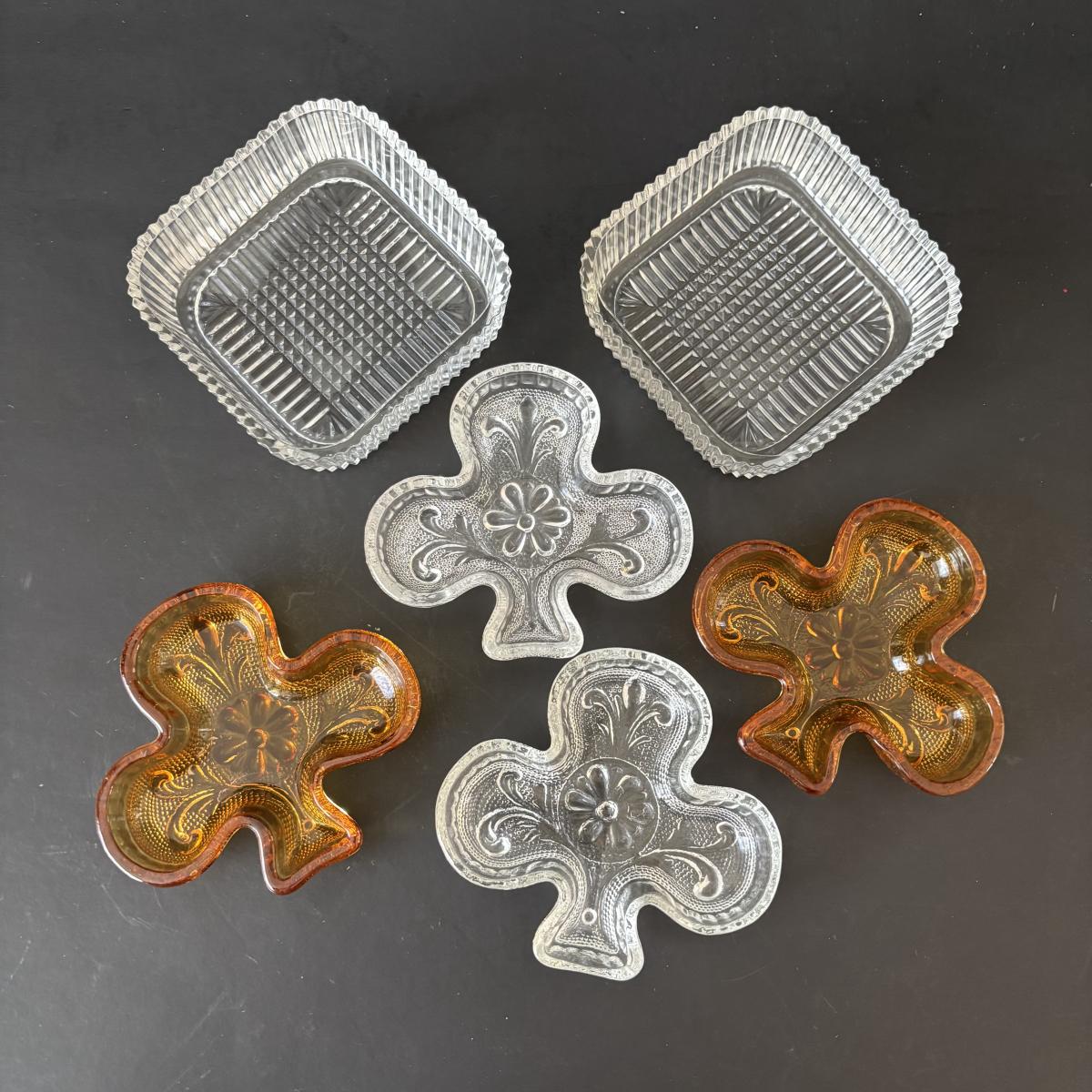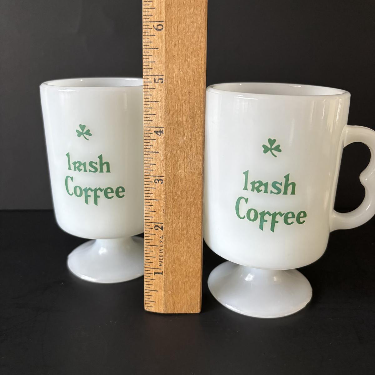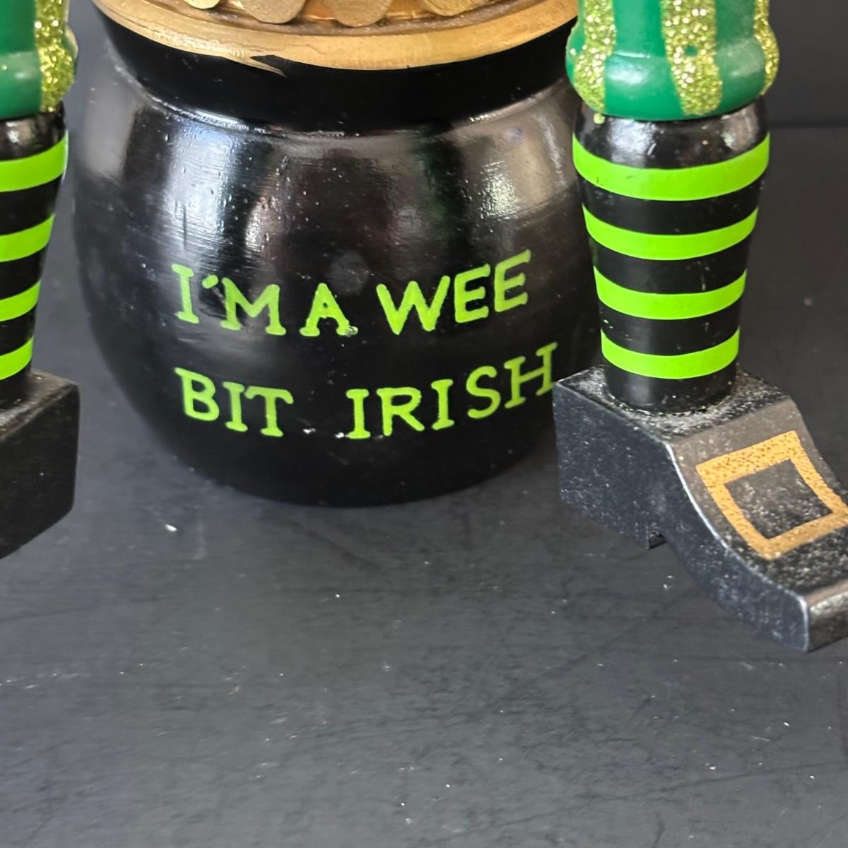 LOT 86: It's Good to Be Irish Collection: Nutcracker, Milk Glass Mugs, Clear & Amber Shamrock Trinket Dishes & More