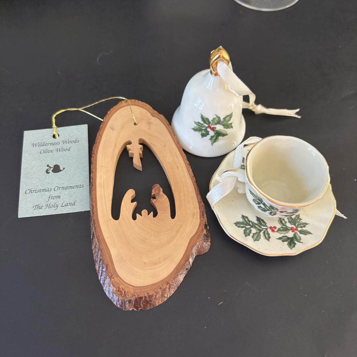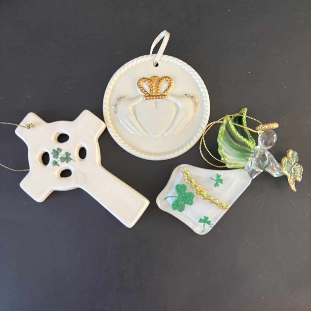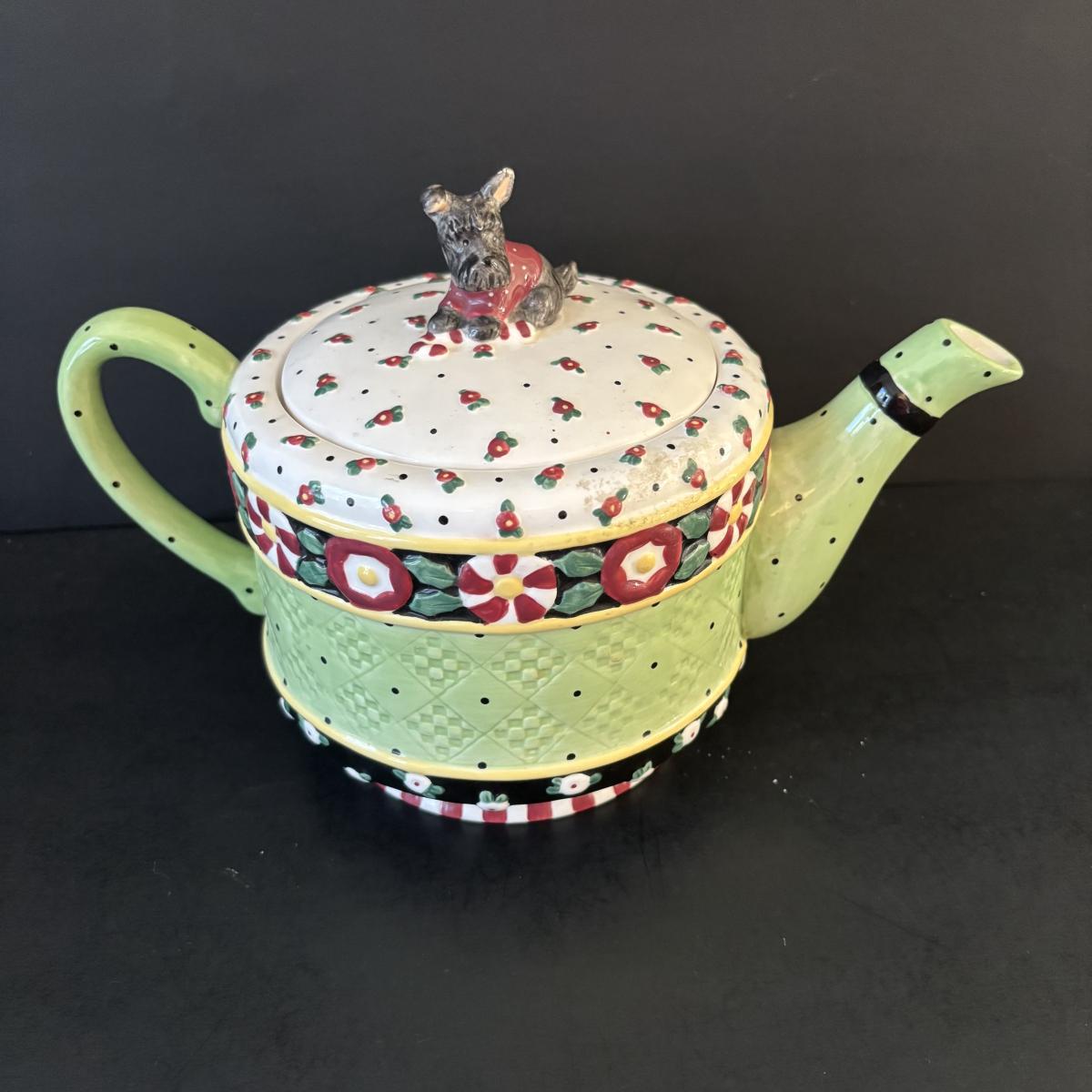 LOT 247: Collection of Irish Holiday Ornaments, Irish Coffee Stemware, Mary Engelbreit Scottie Dog Holiday Teapot