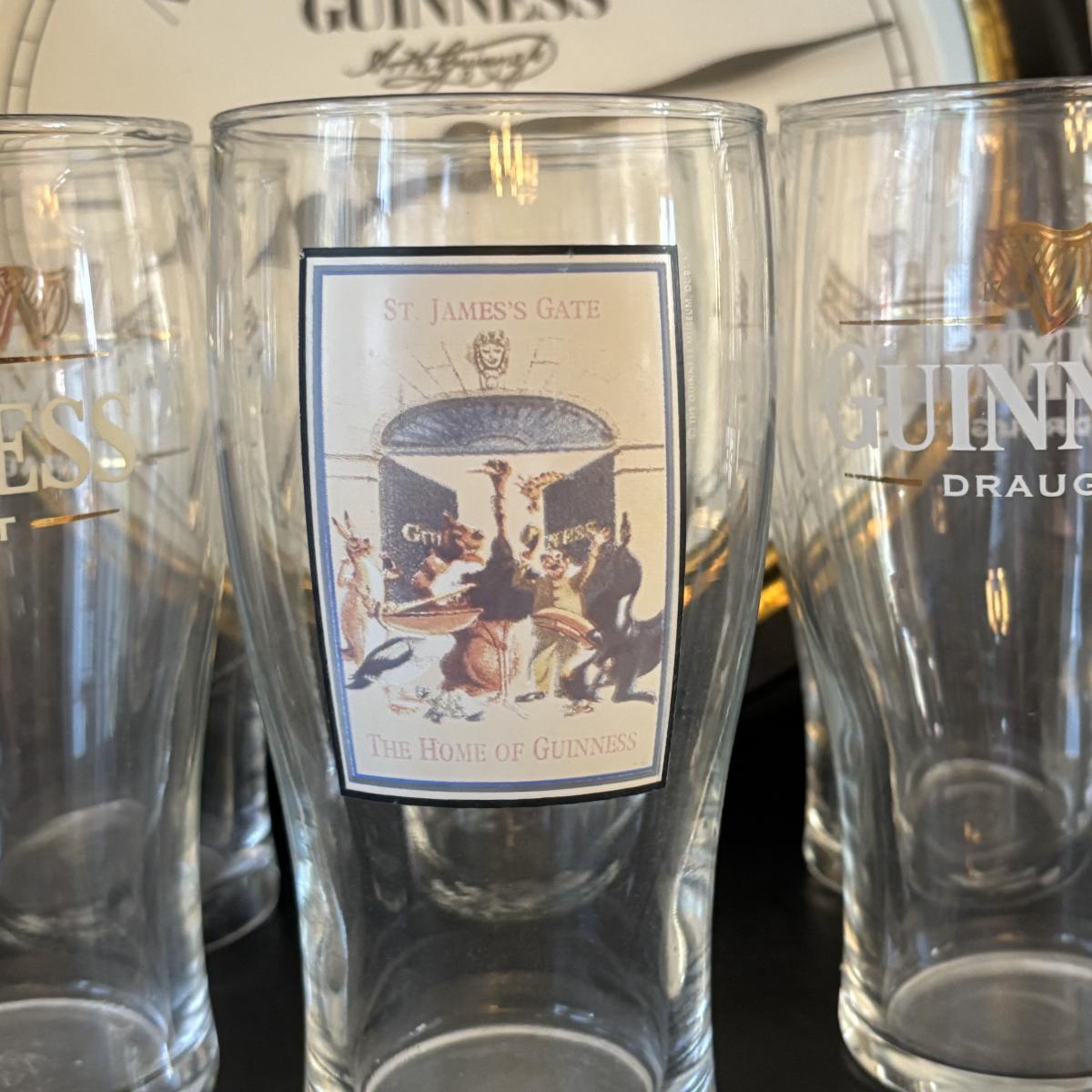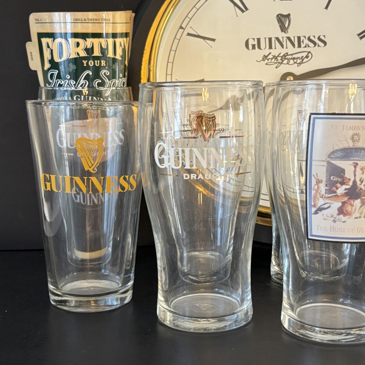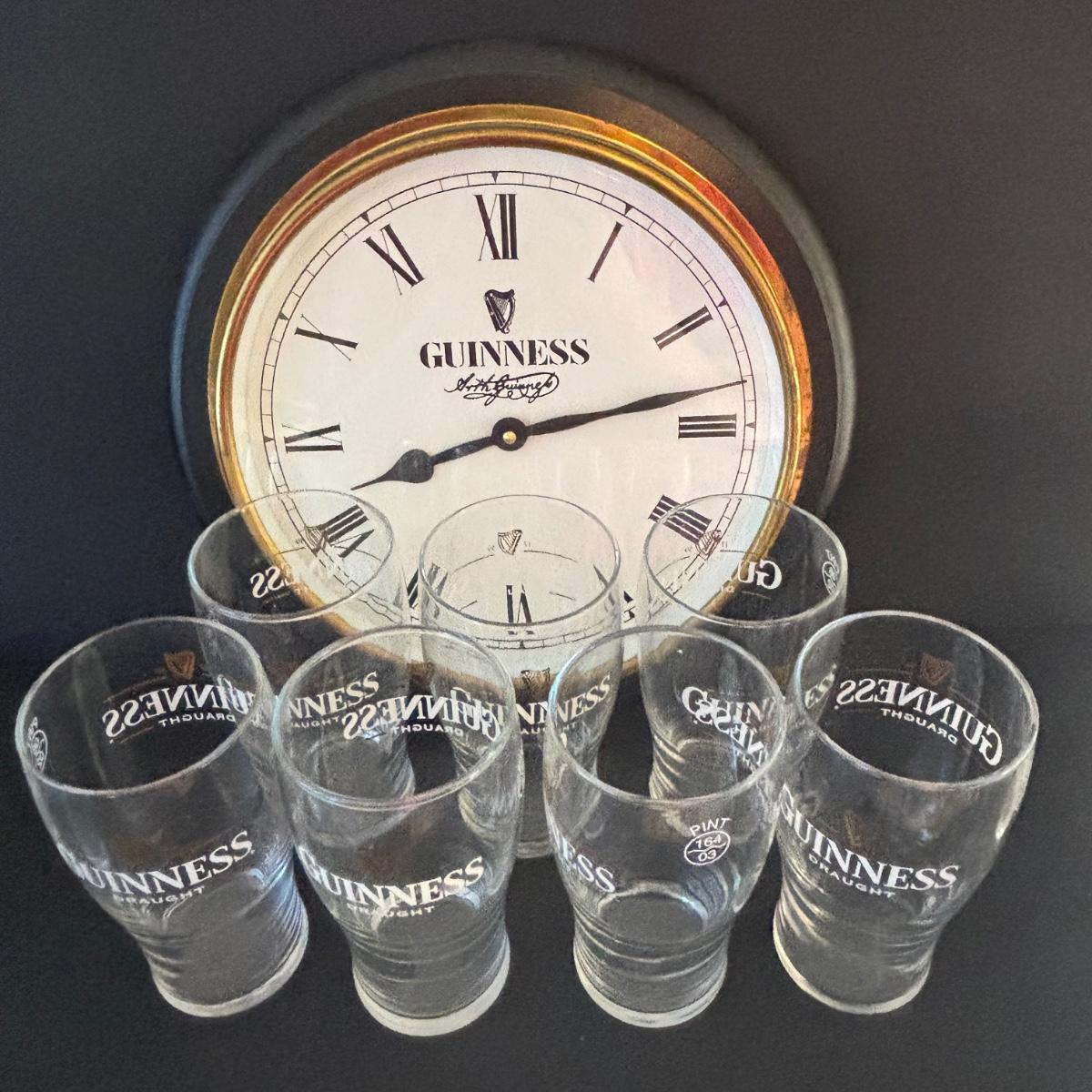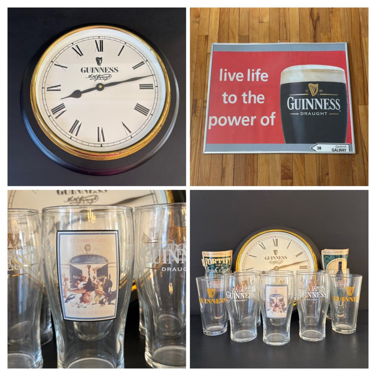 LOT 248: Guinness Collection: Wooden Clock, Pint Glasses and a Framed Poster