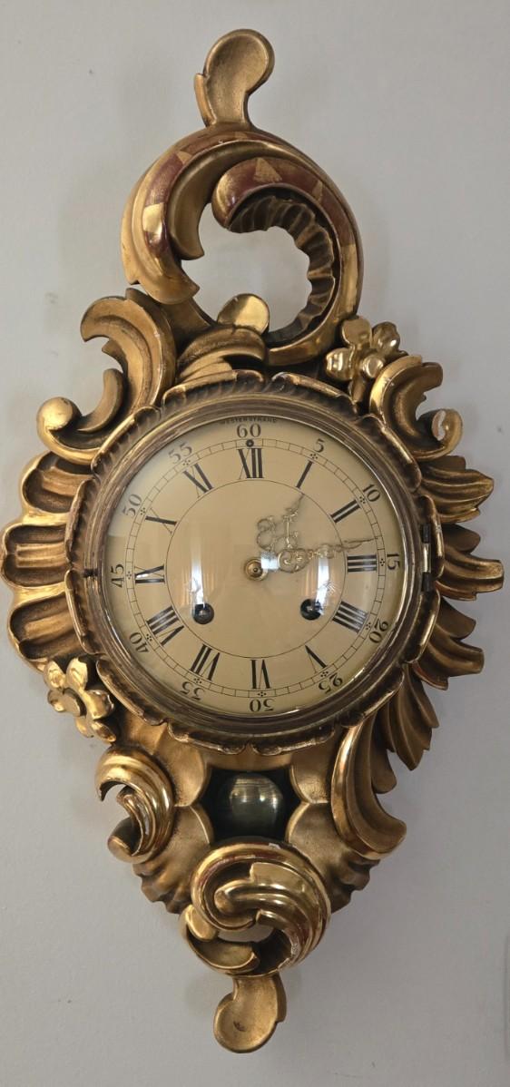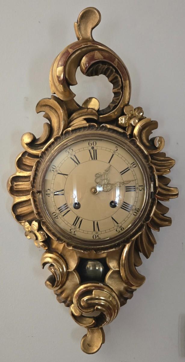 LOT 8L: Westerstrand Swedish Gold-tone Wall Hanging Clock Rococo Style