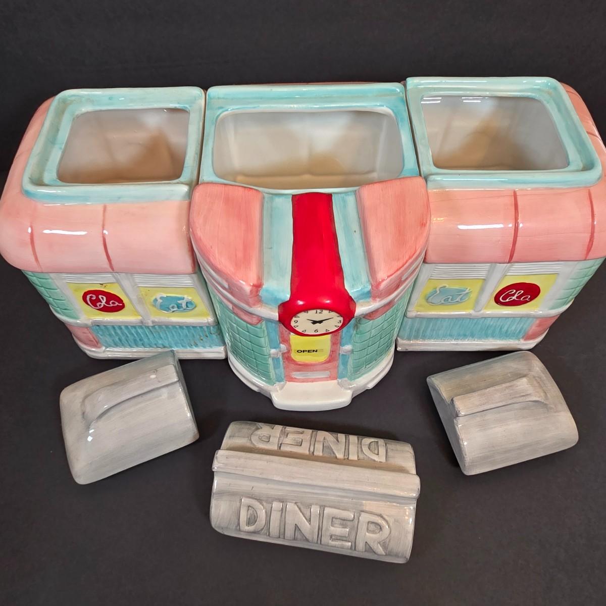 LOT 8W: Vintage Oggi American Diner Series Ceramic Canisters, Set of 3