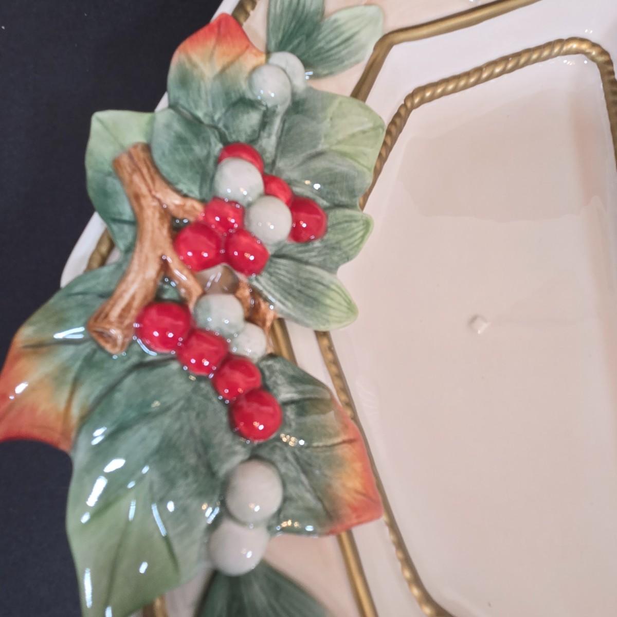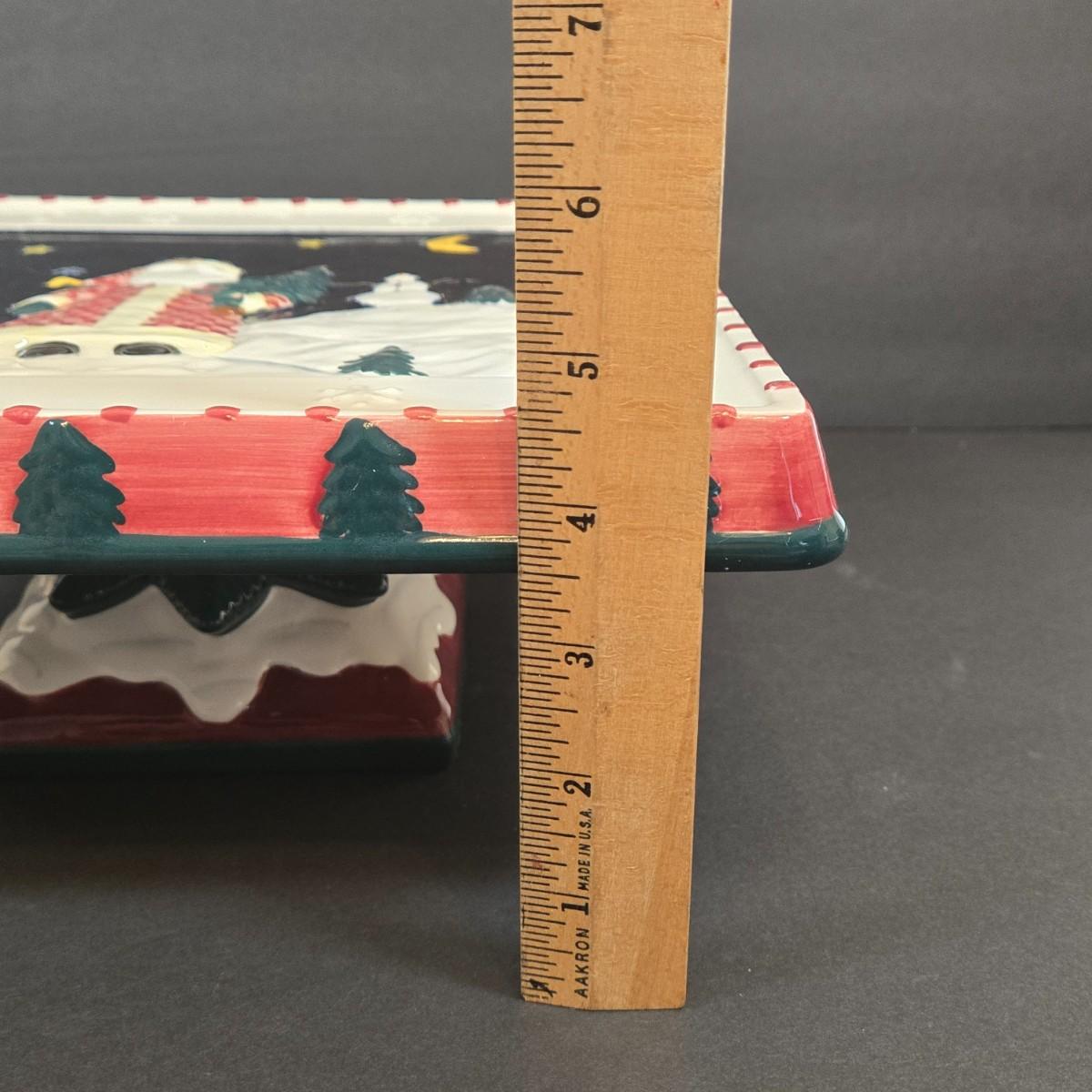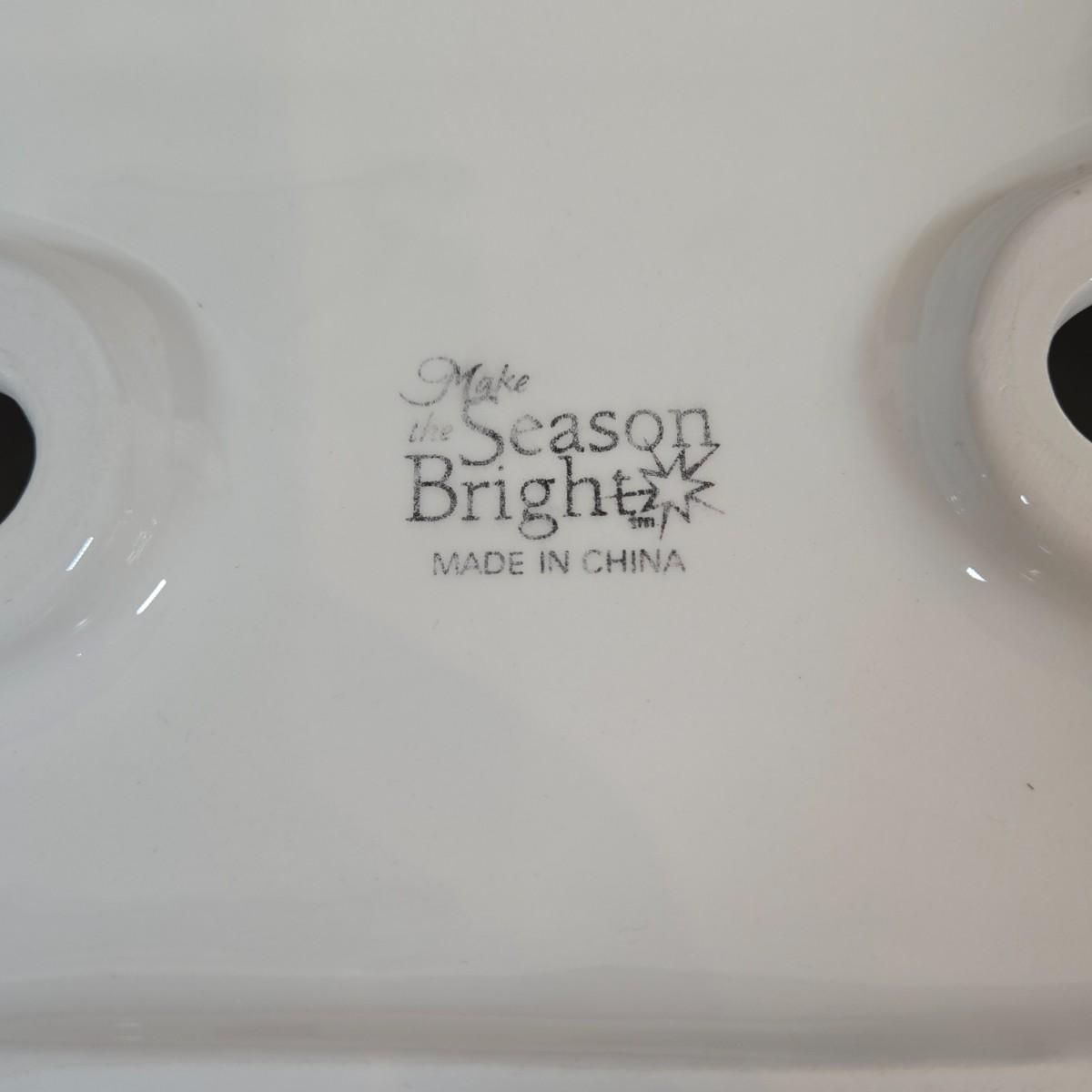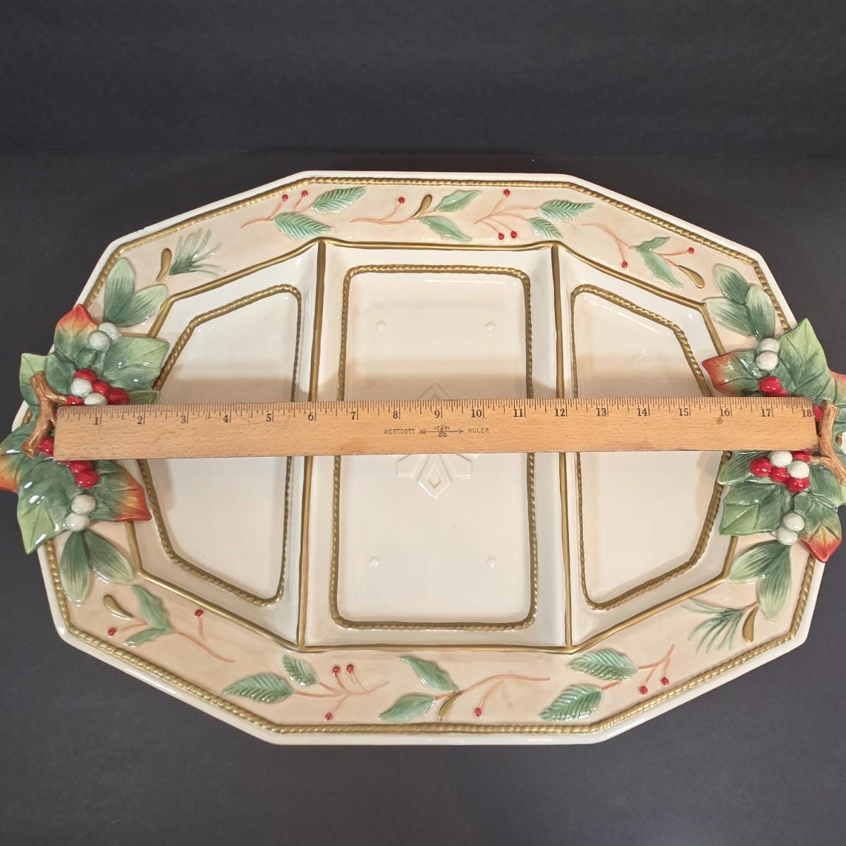 LOT 12D: Fitz and Floyd Divided Serving Platter, Make the Season Bright Cake Stand, and 2 Fitz and Floyd Musicals