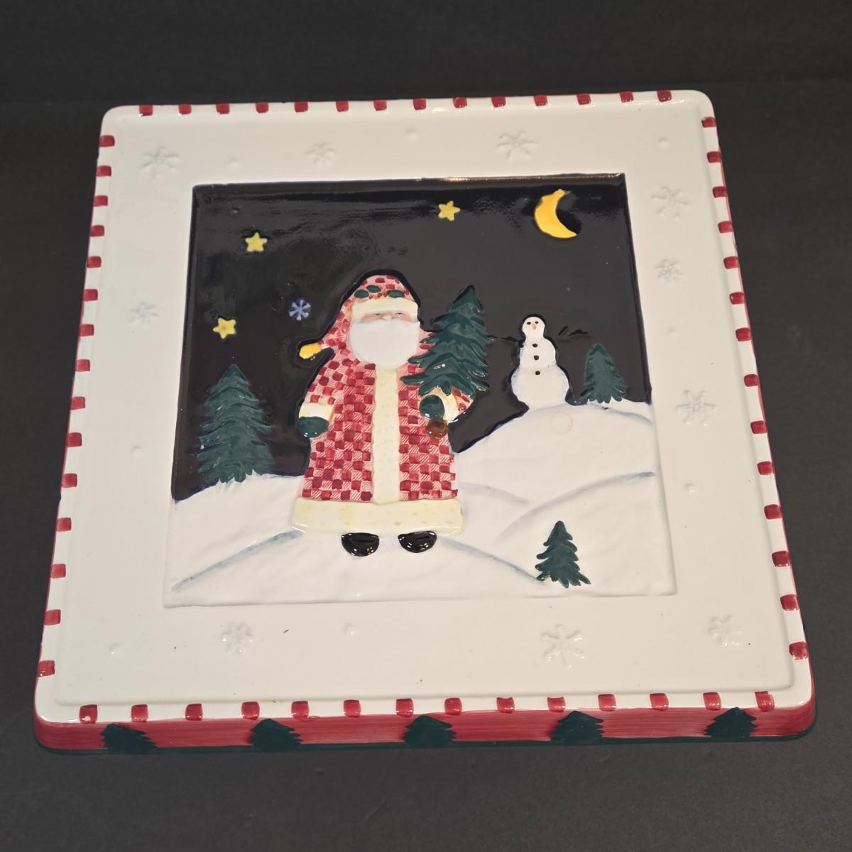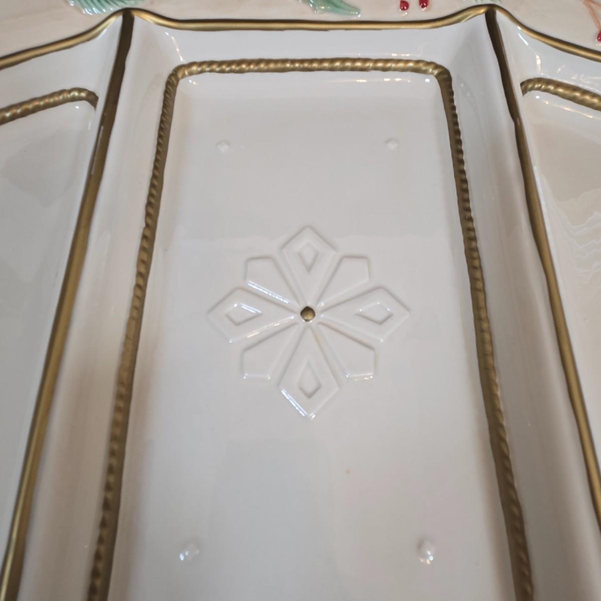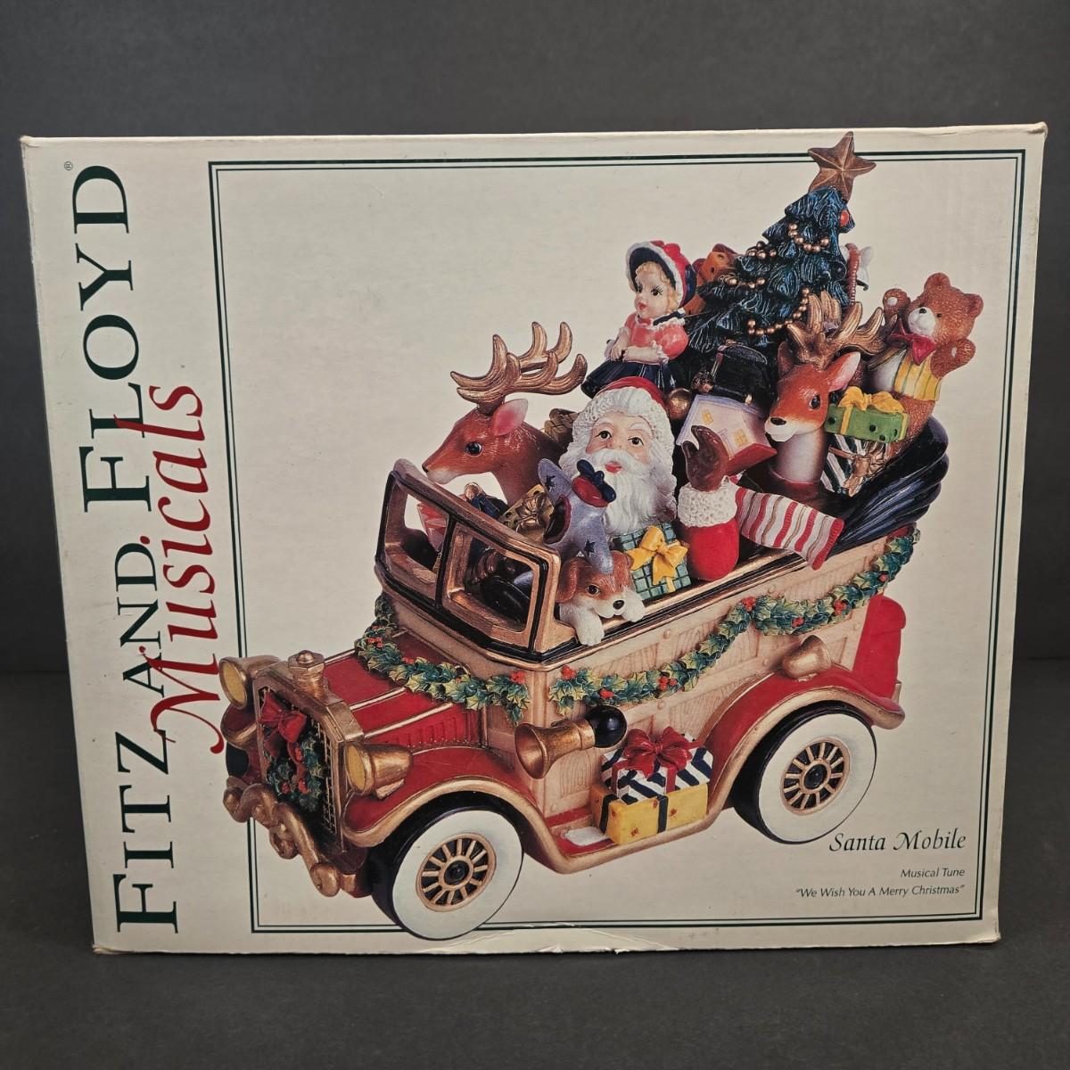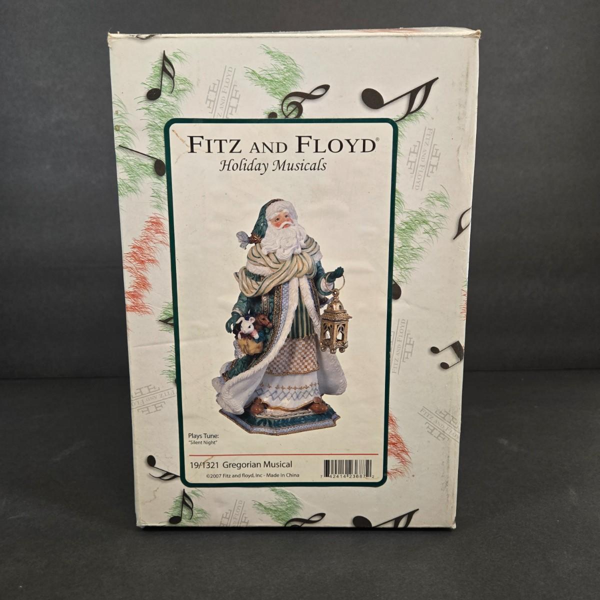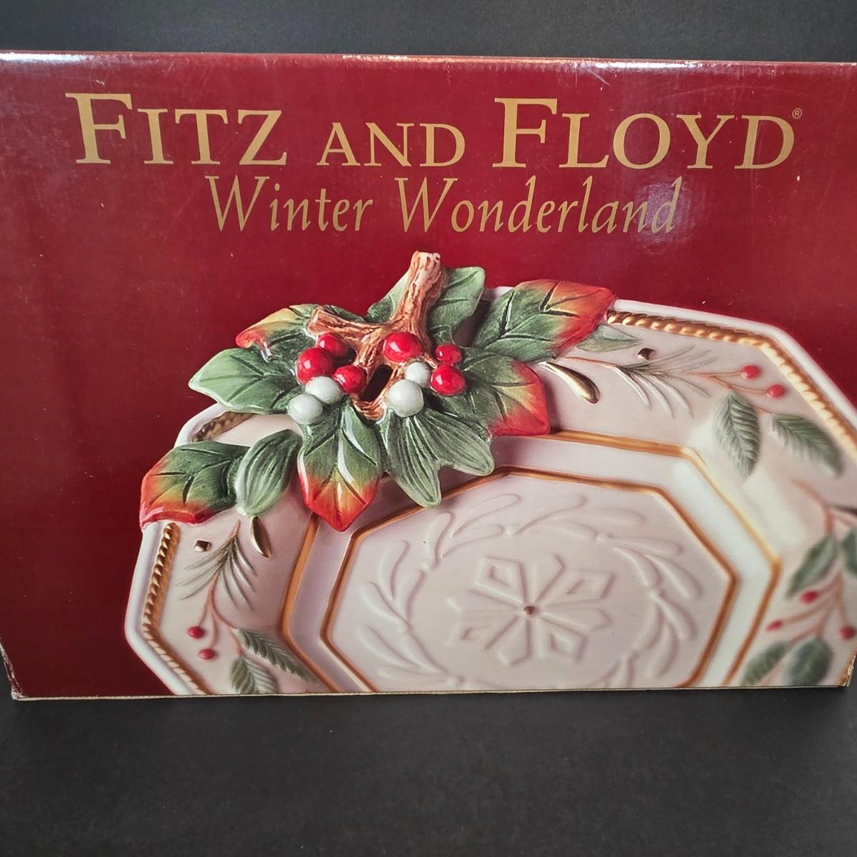 LOT 12D: Fitz and Floyd Divided Serving Platter, Make the Season Bright Cake Stand, and 2 Fitz and Floyd Musicals