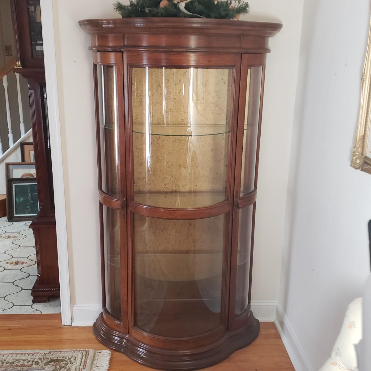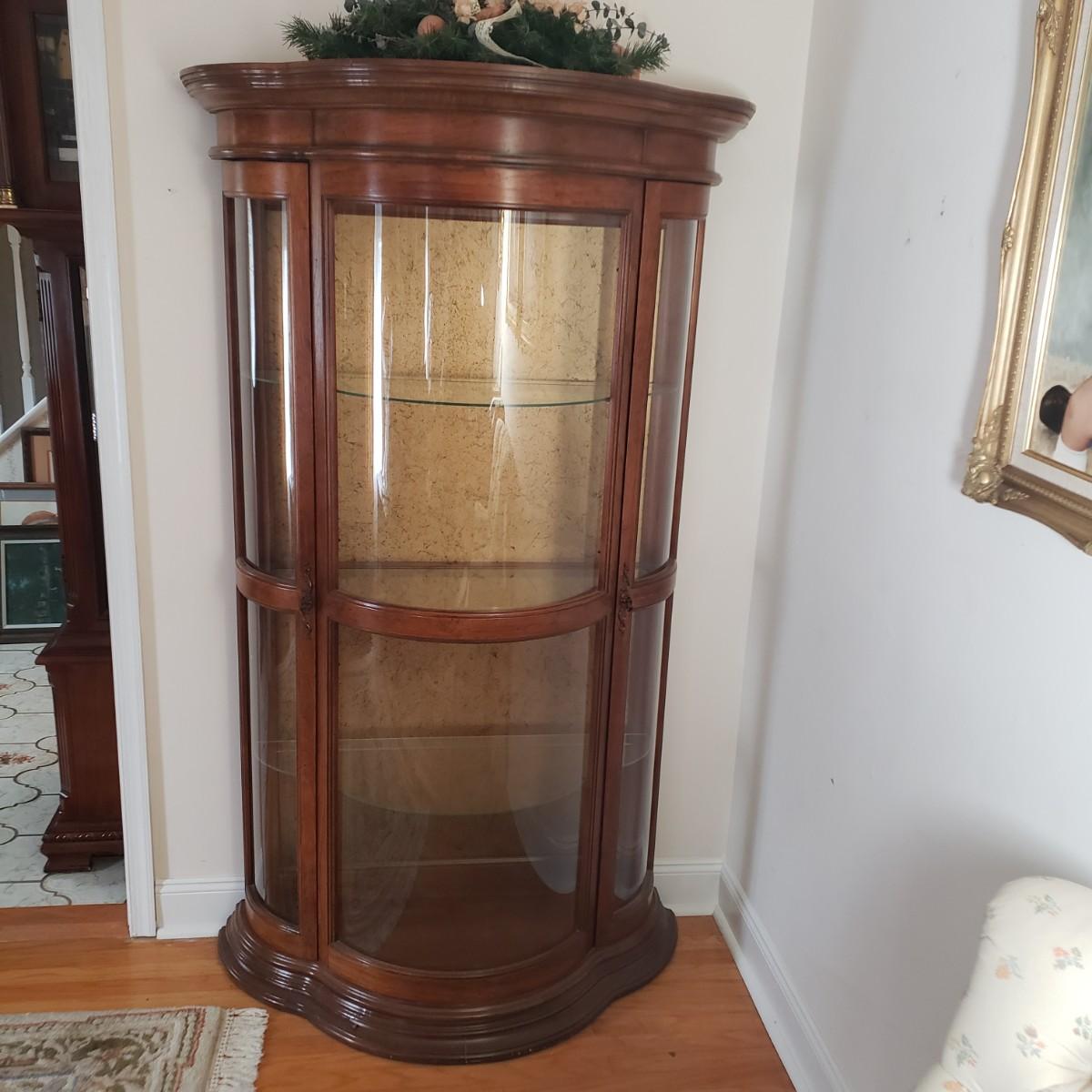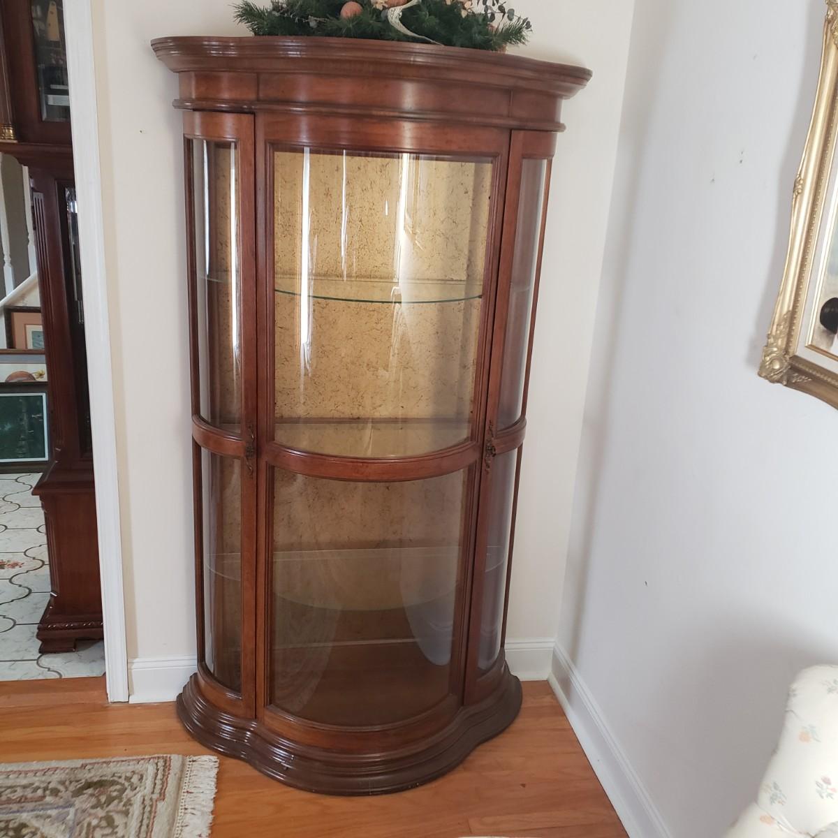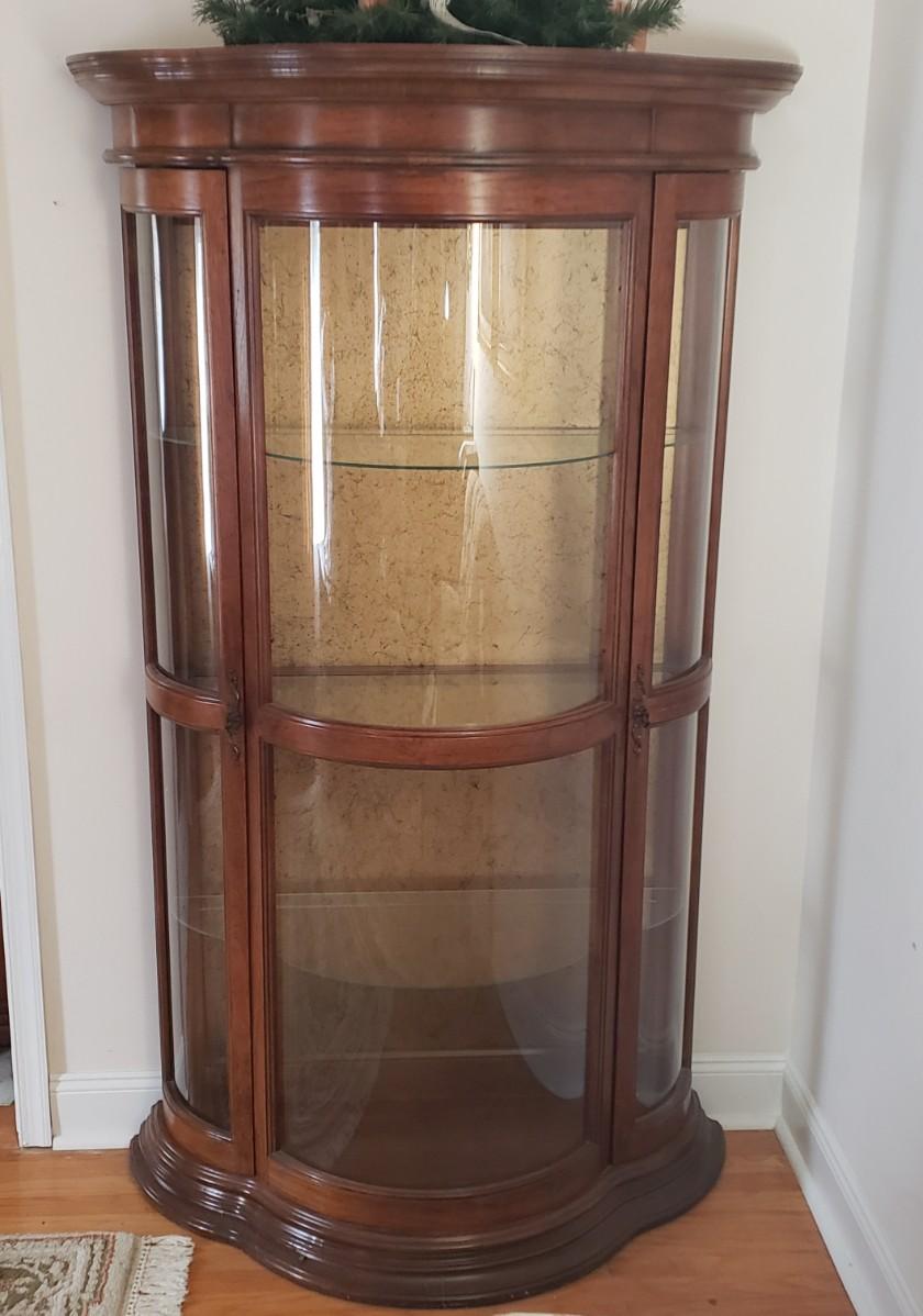 LOT 21L: Lighted Curved Glass Curio Cabinet