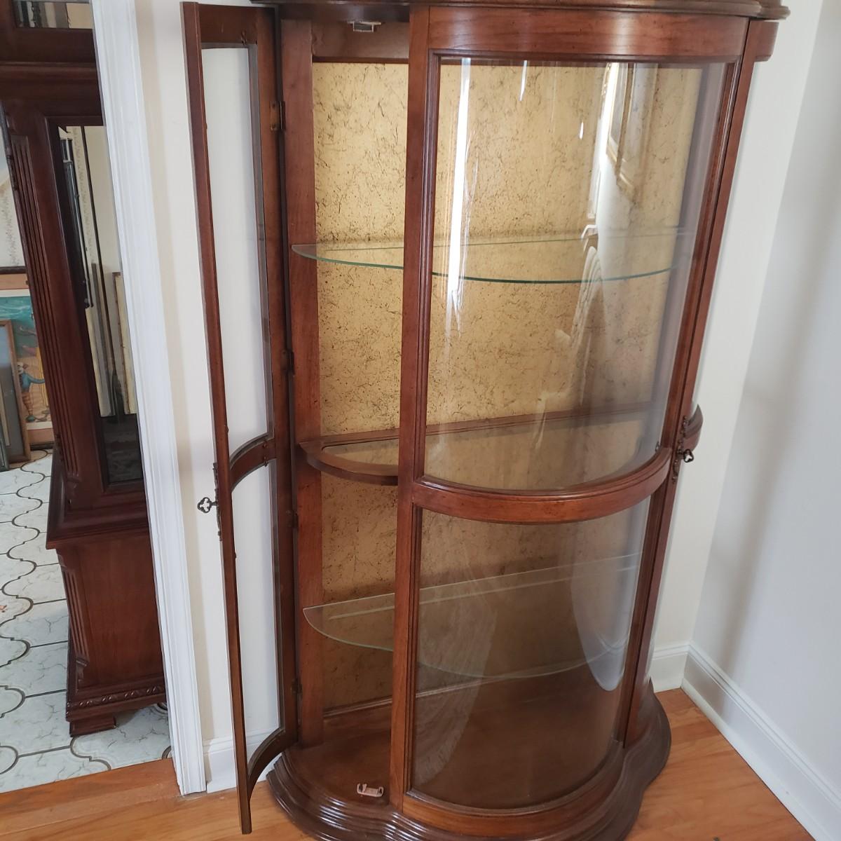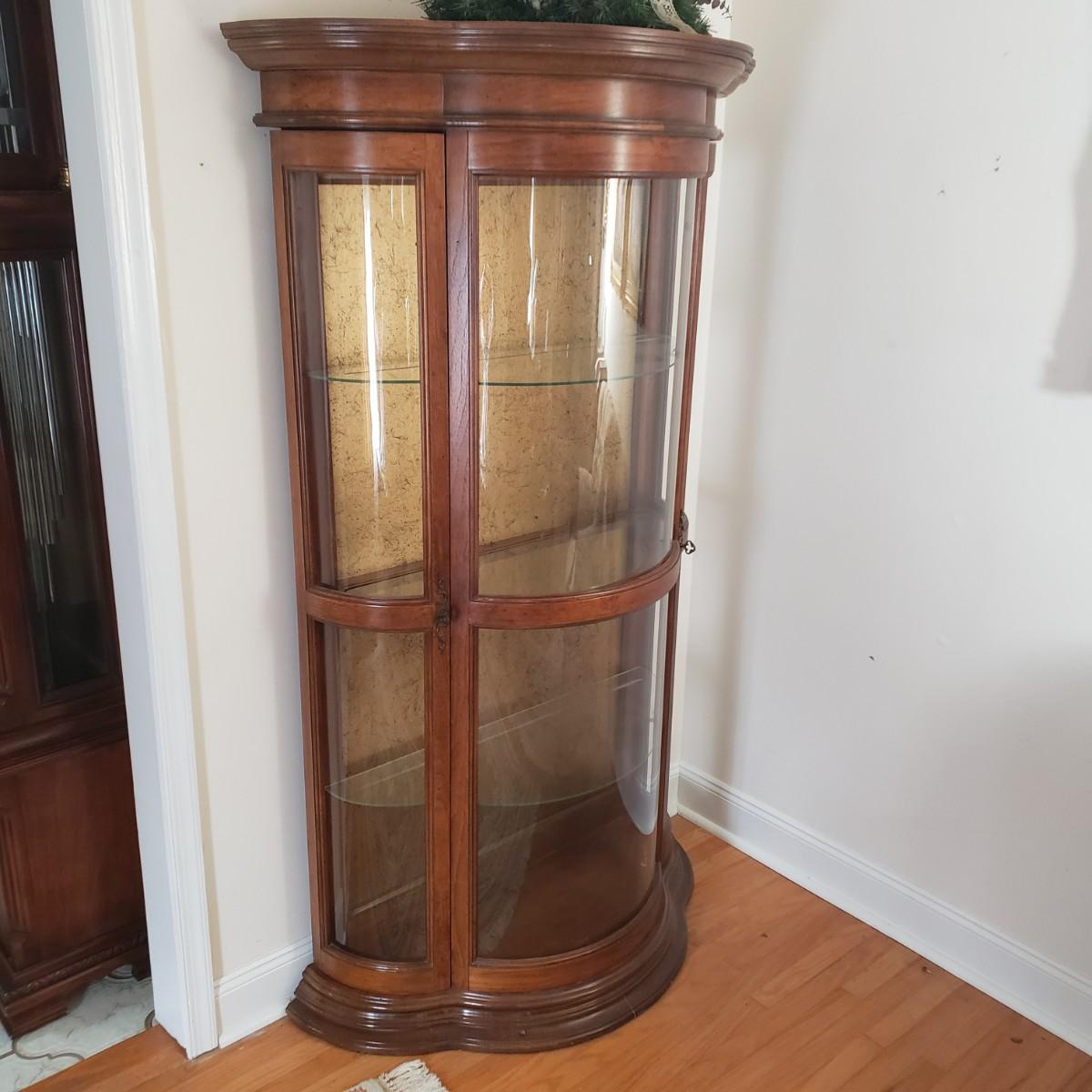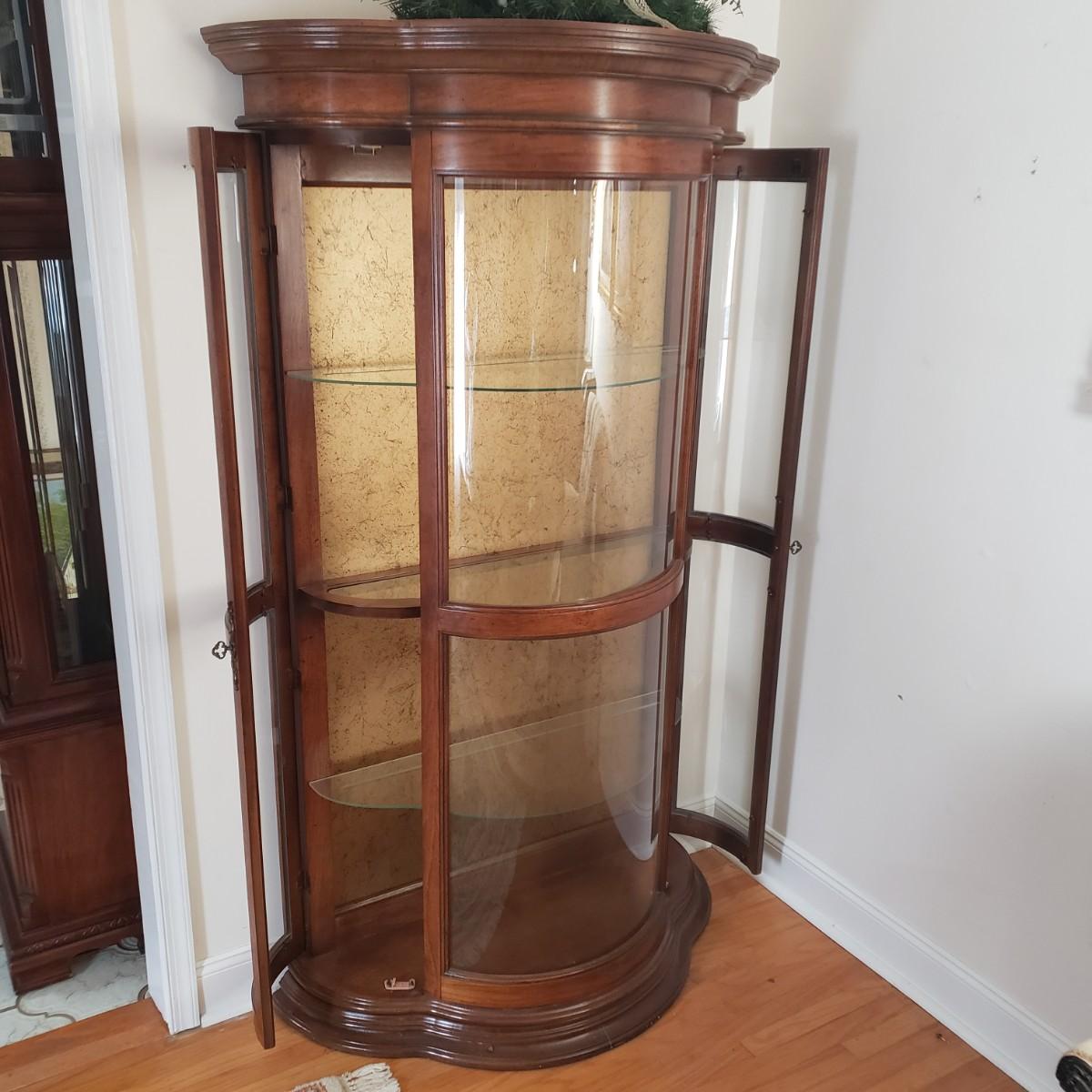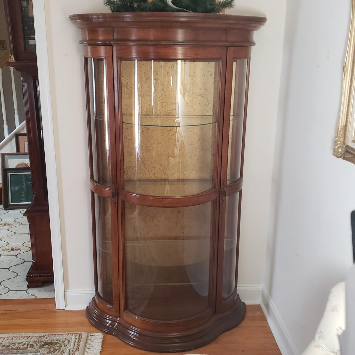 LOT 21L: Lighted Curved Glass Curio Cabinet