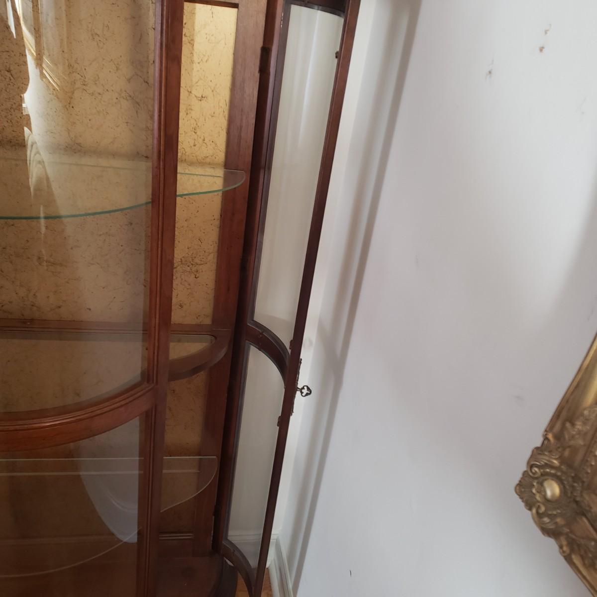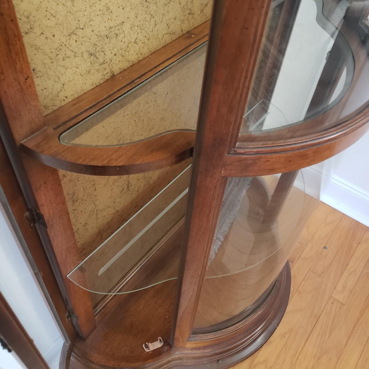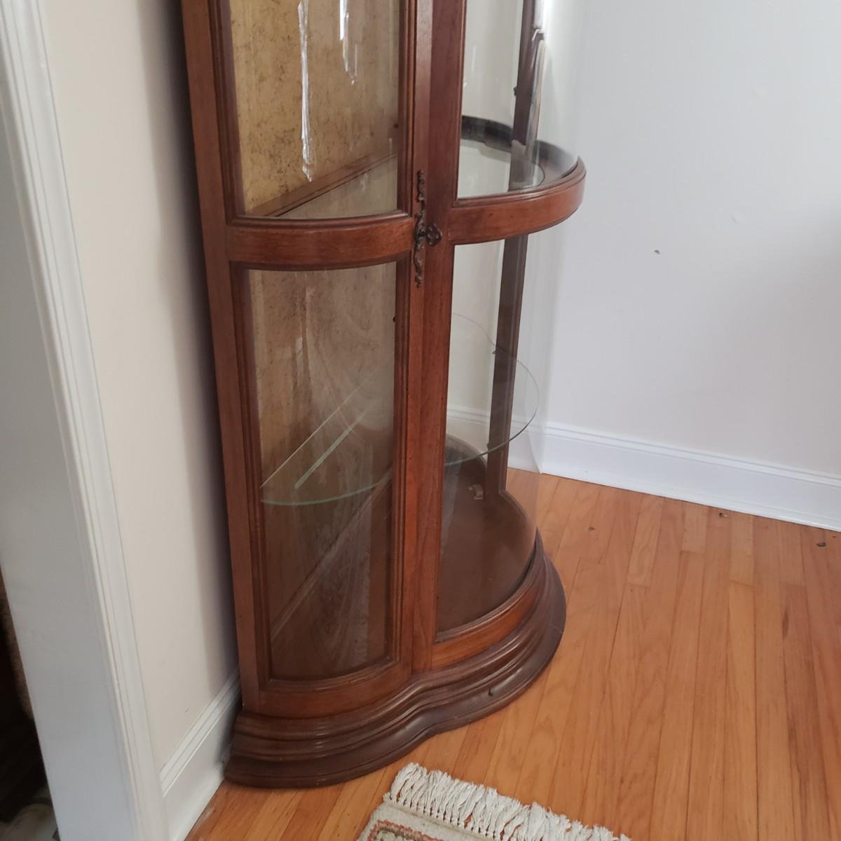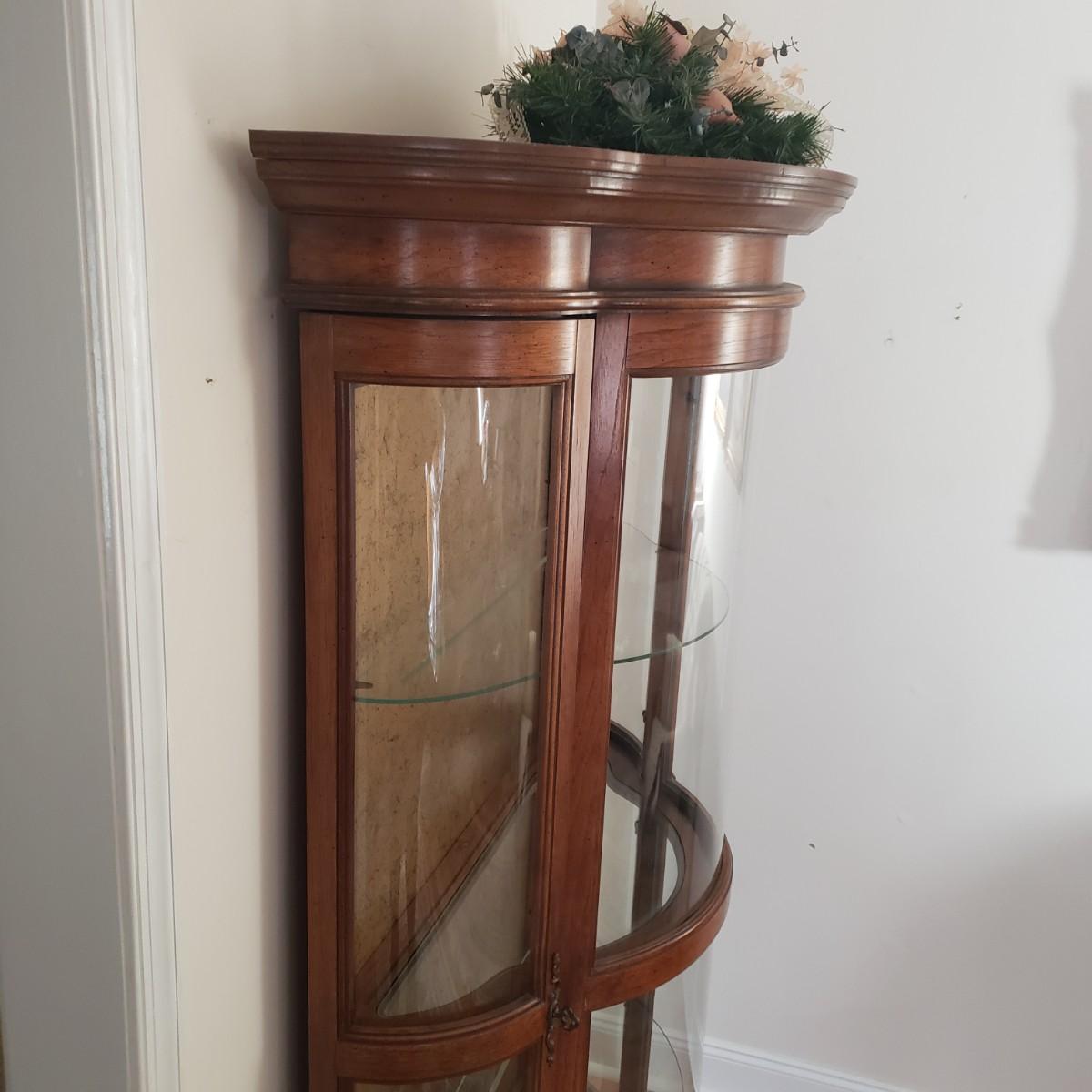 LOT 21L: Lighted Curved Glass Curio Cabinet
