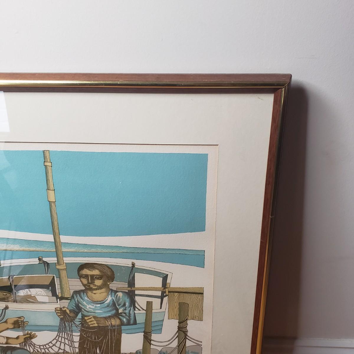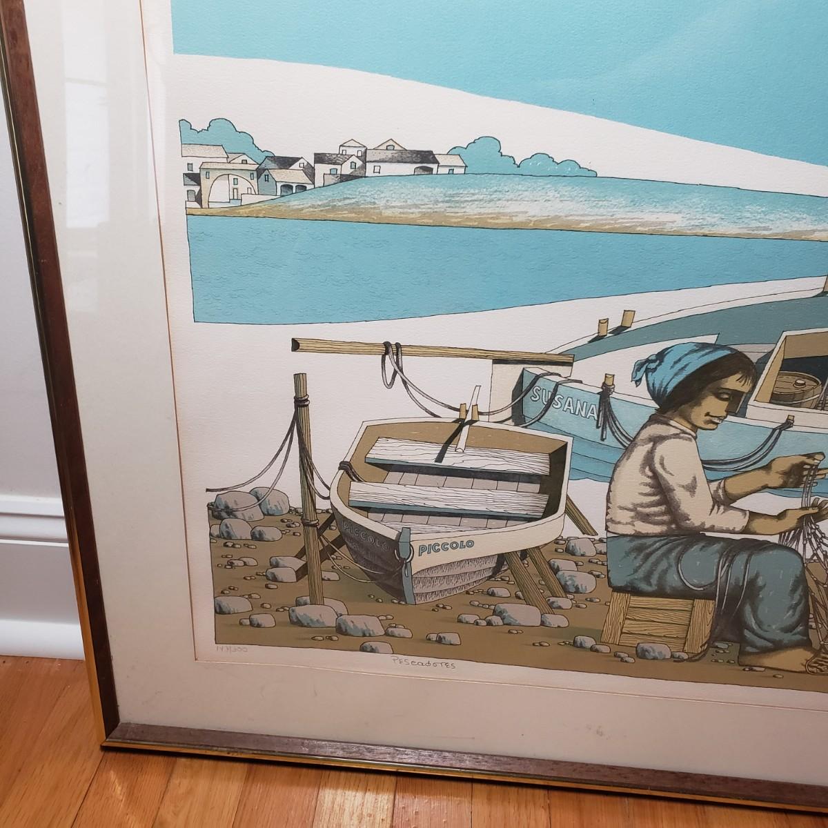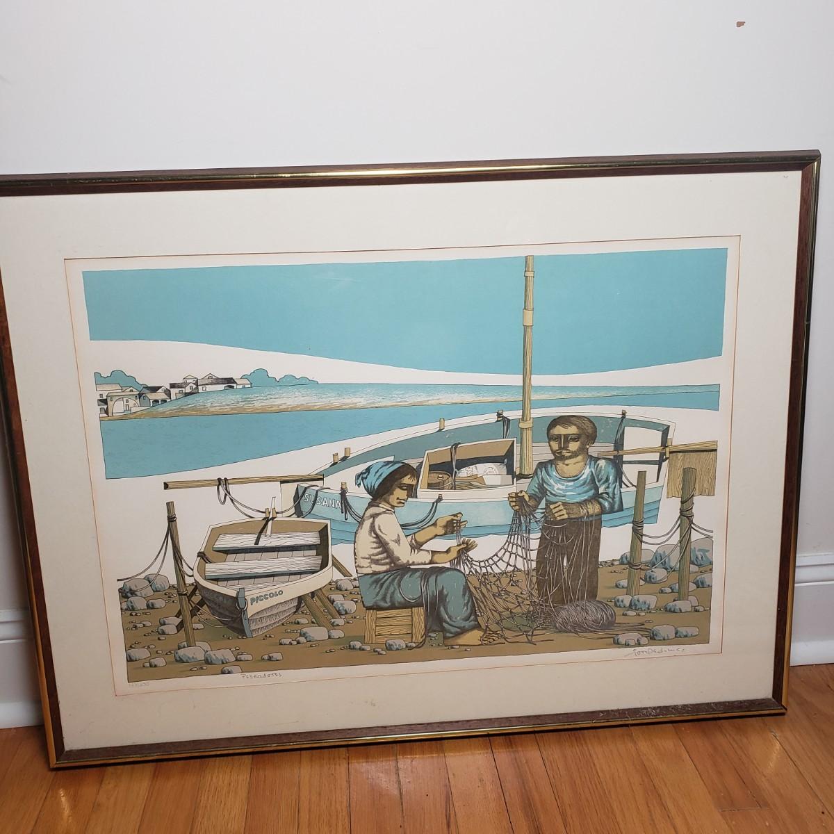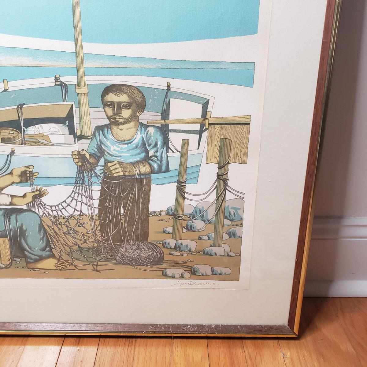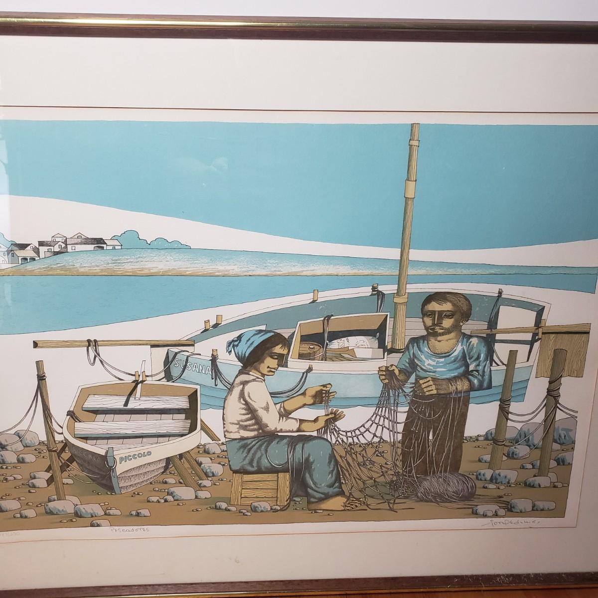 LOT 26L: "Pescadores" by Jorge Dumas Signed Framed Lithograph with COA