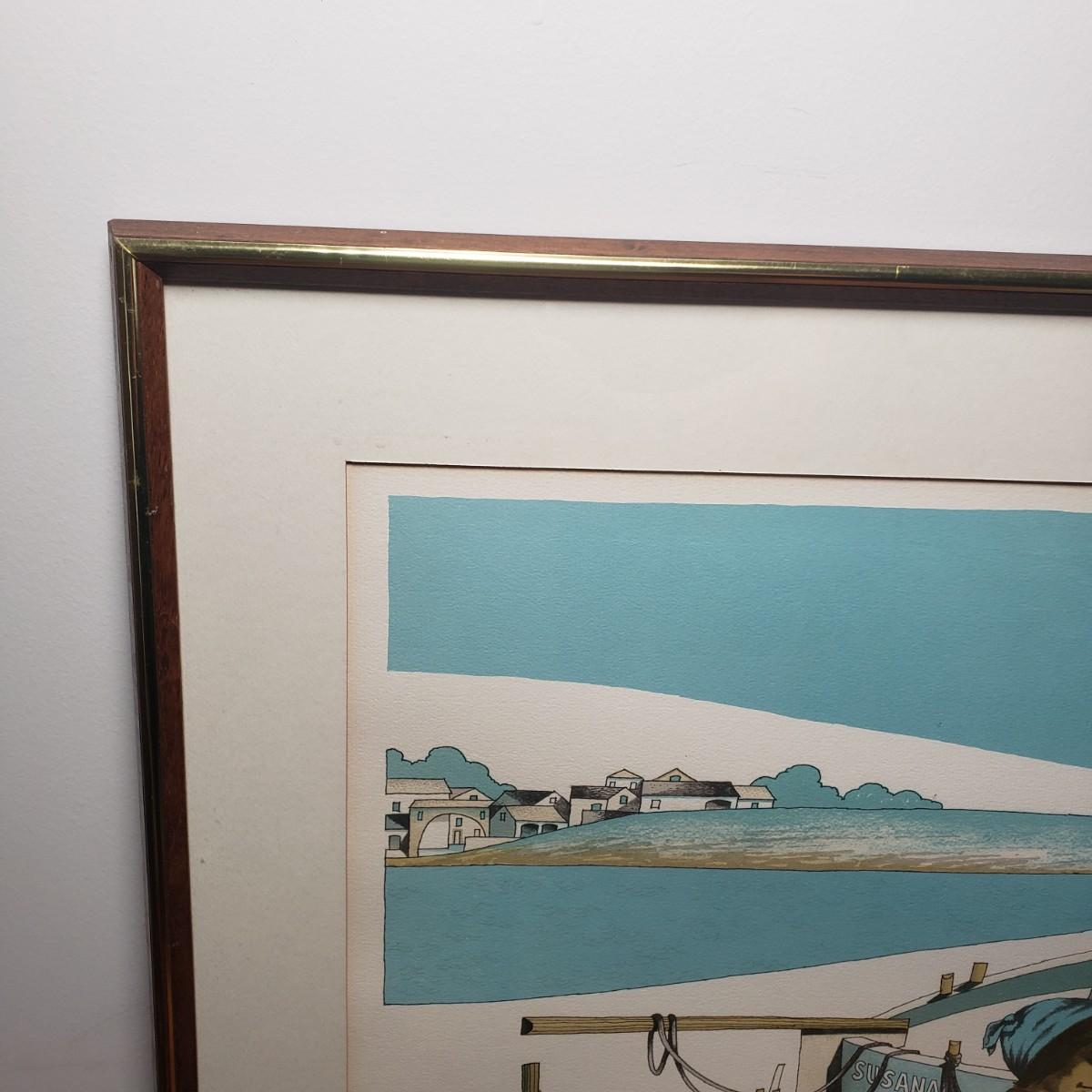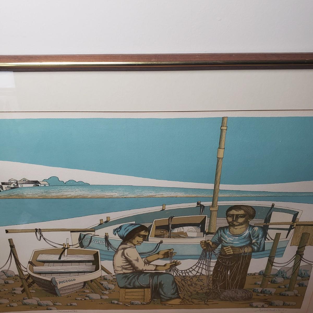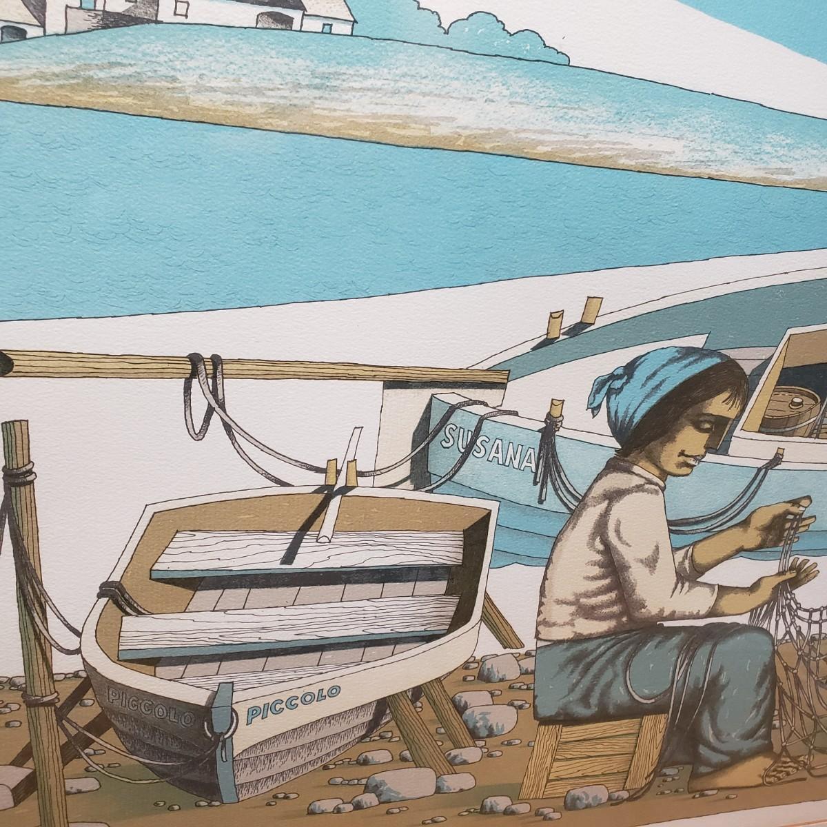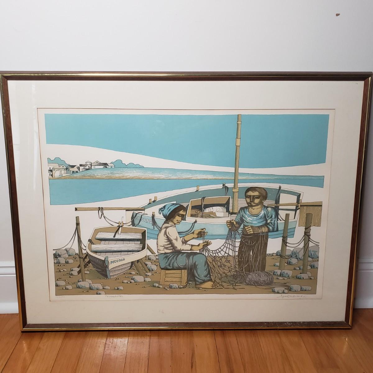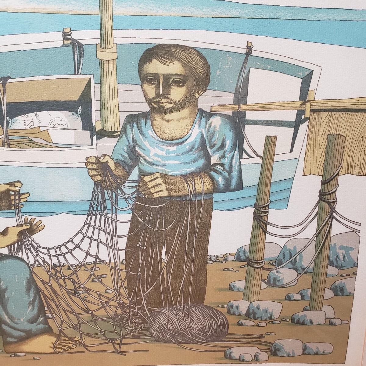 LOT 26L: "Pescadores" by Jorge Dumas Signed Framed Lithograph with COA