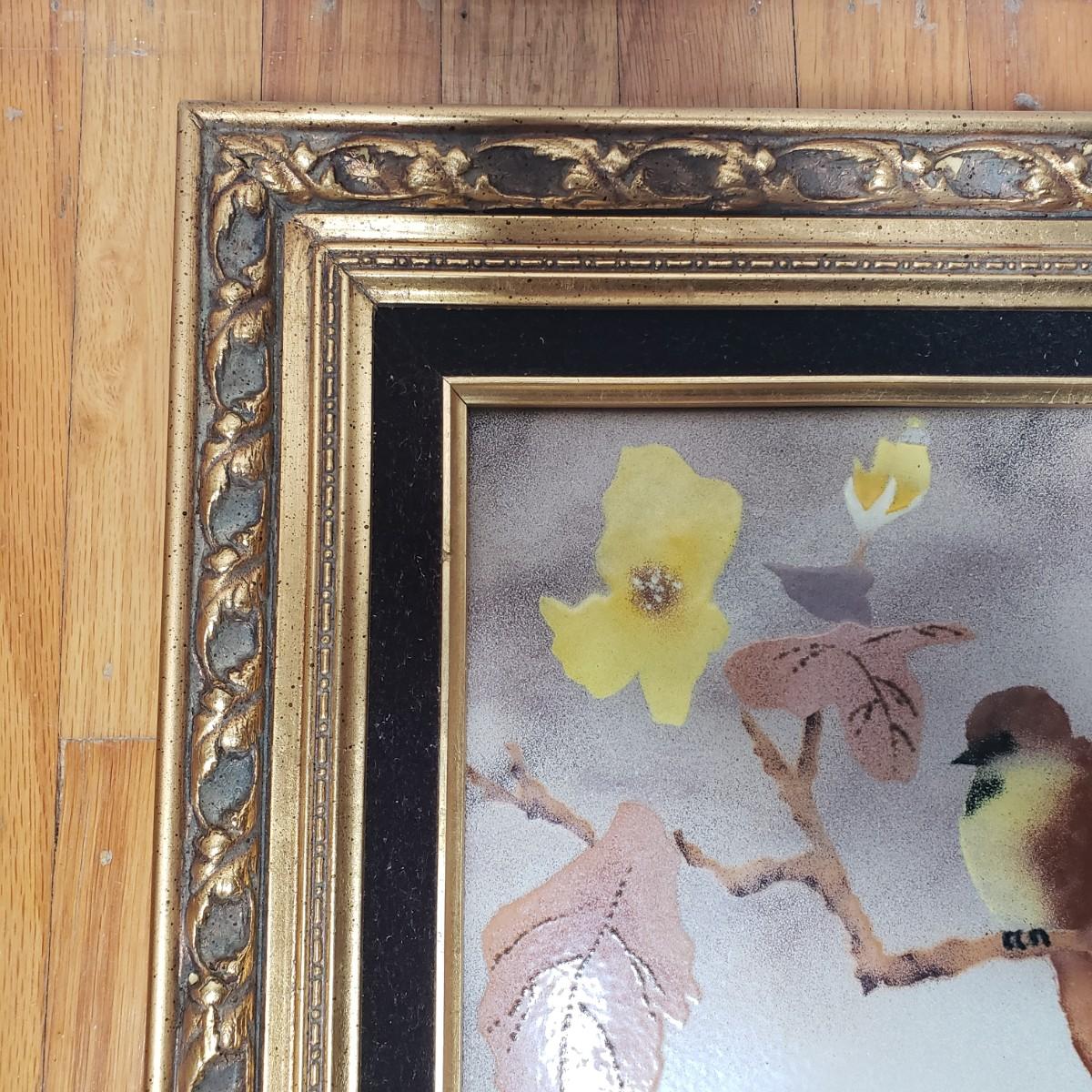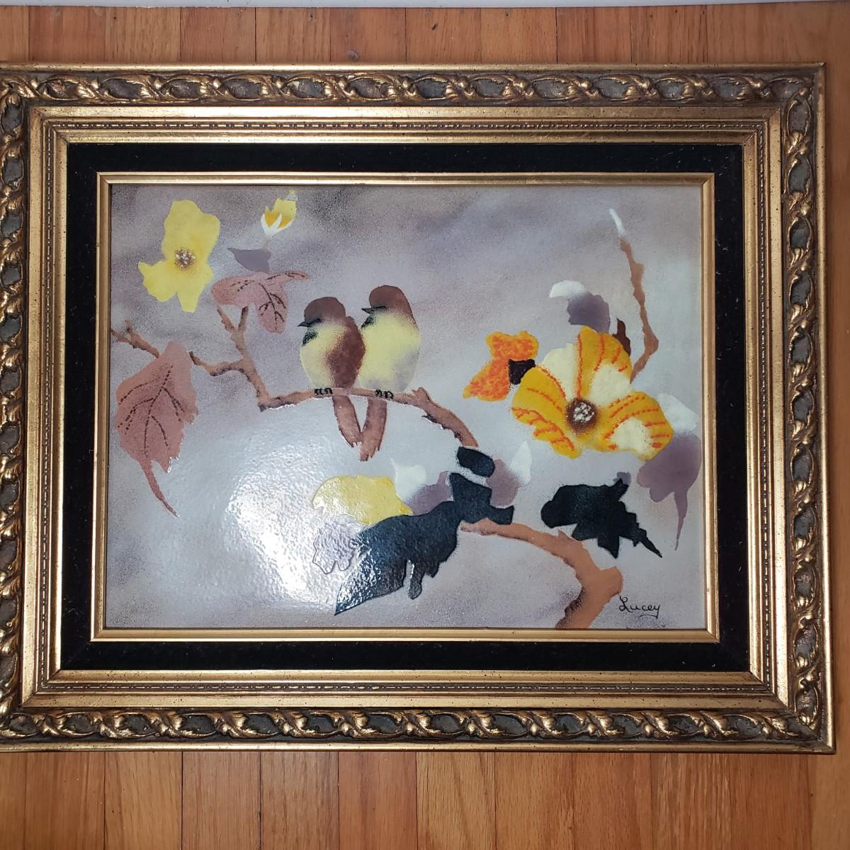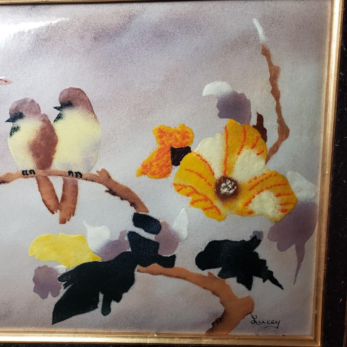 LOT 34L: Enamel on Copper Framed Bird Art by Jean Lucey