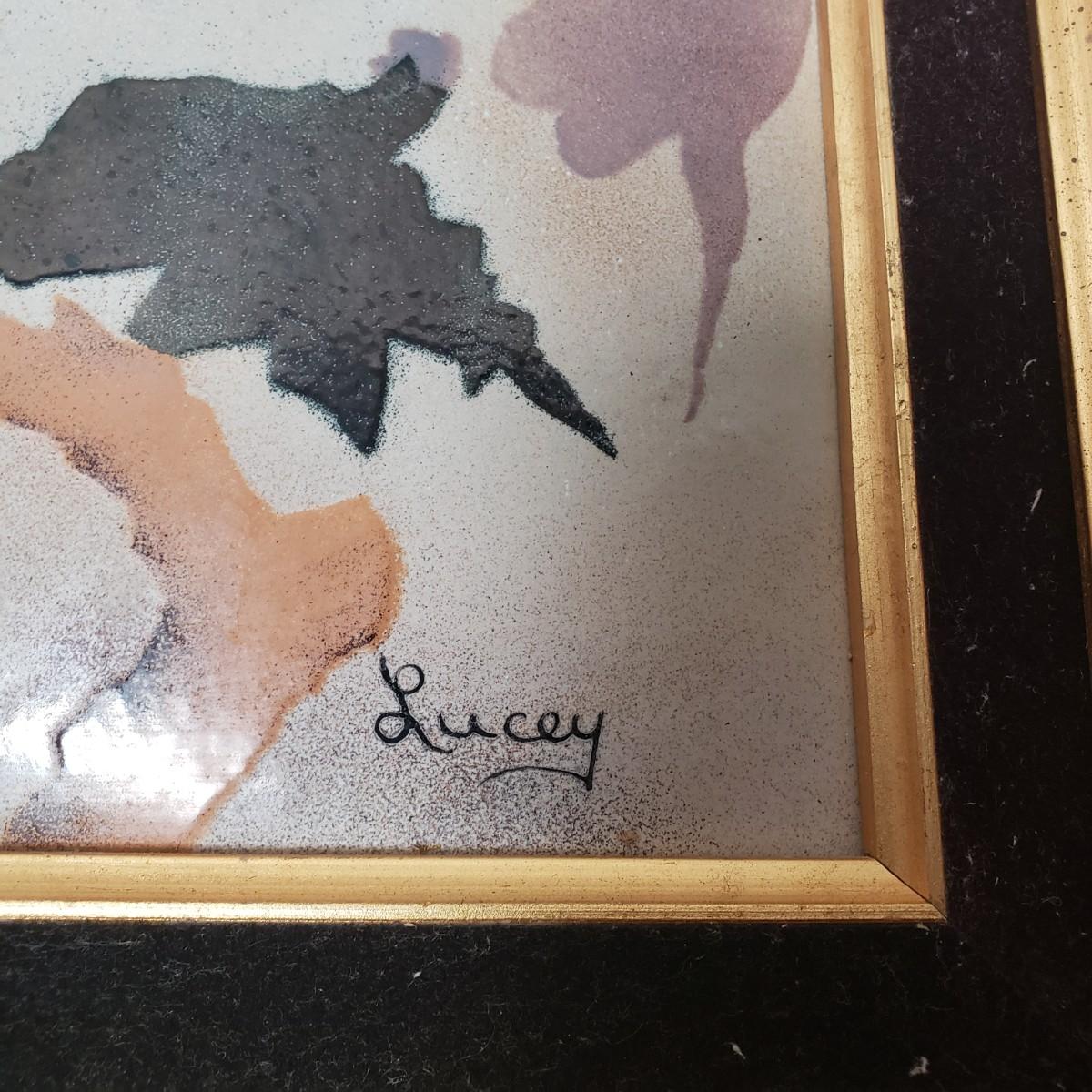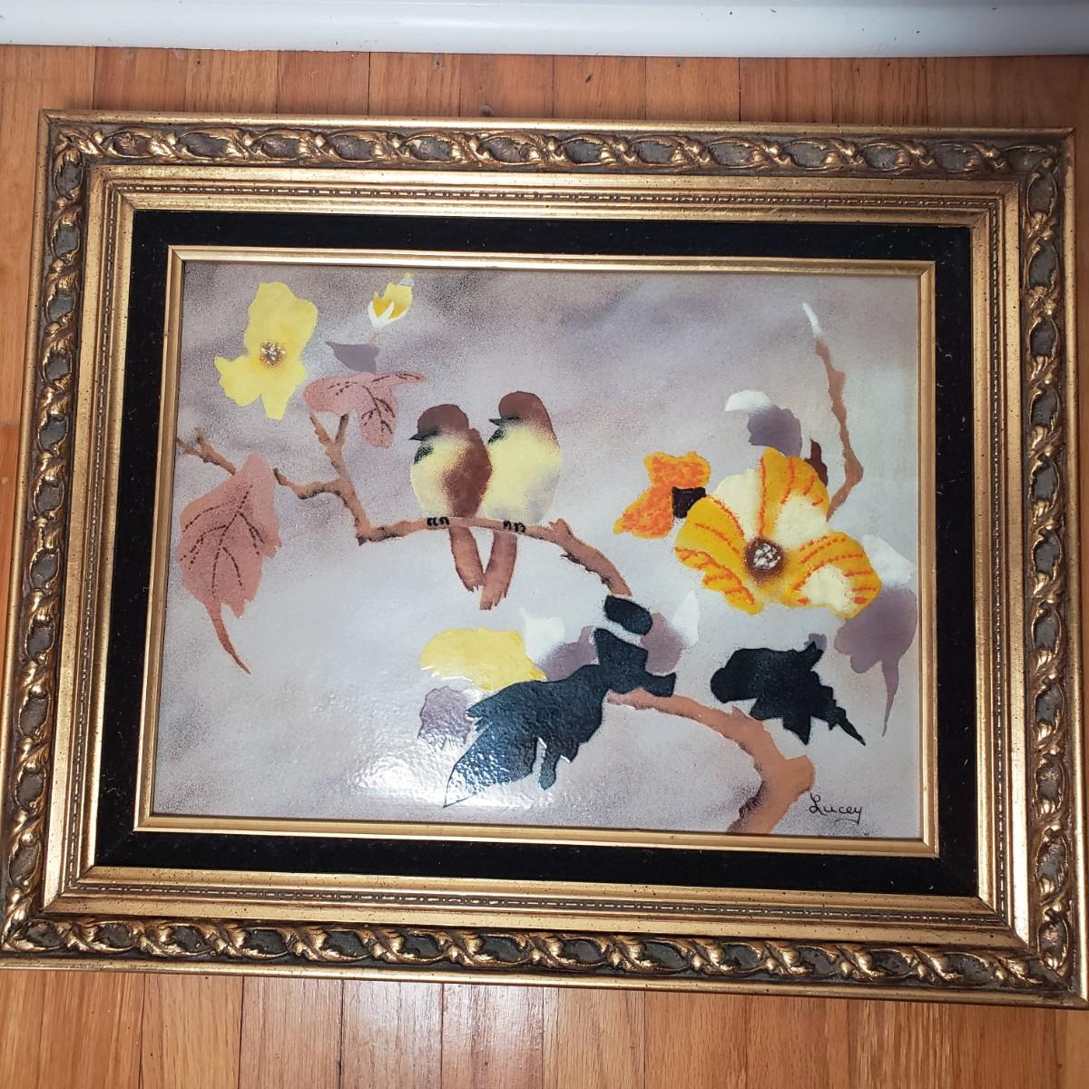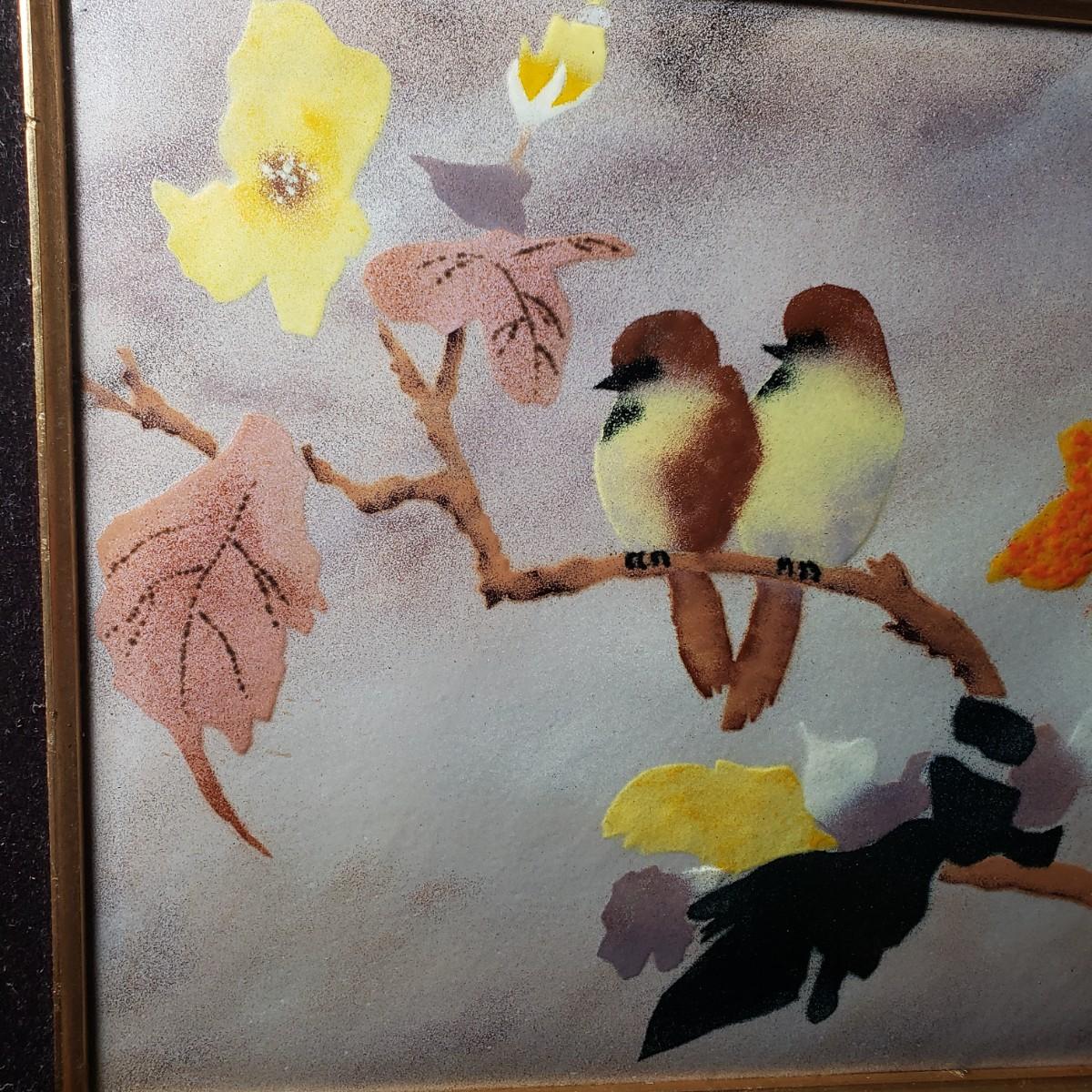 LOT 34L: Enamel on Copper Framed Bird Art by Jean Lucey