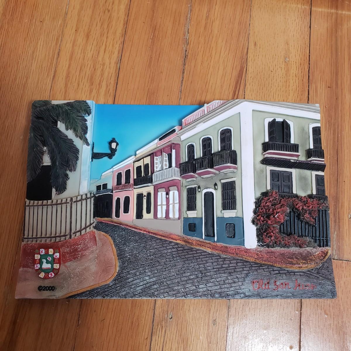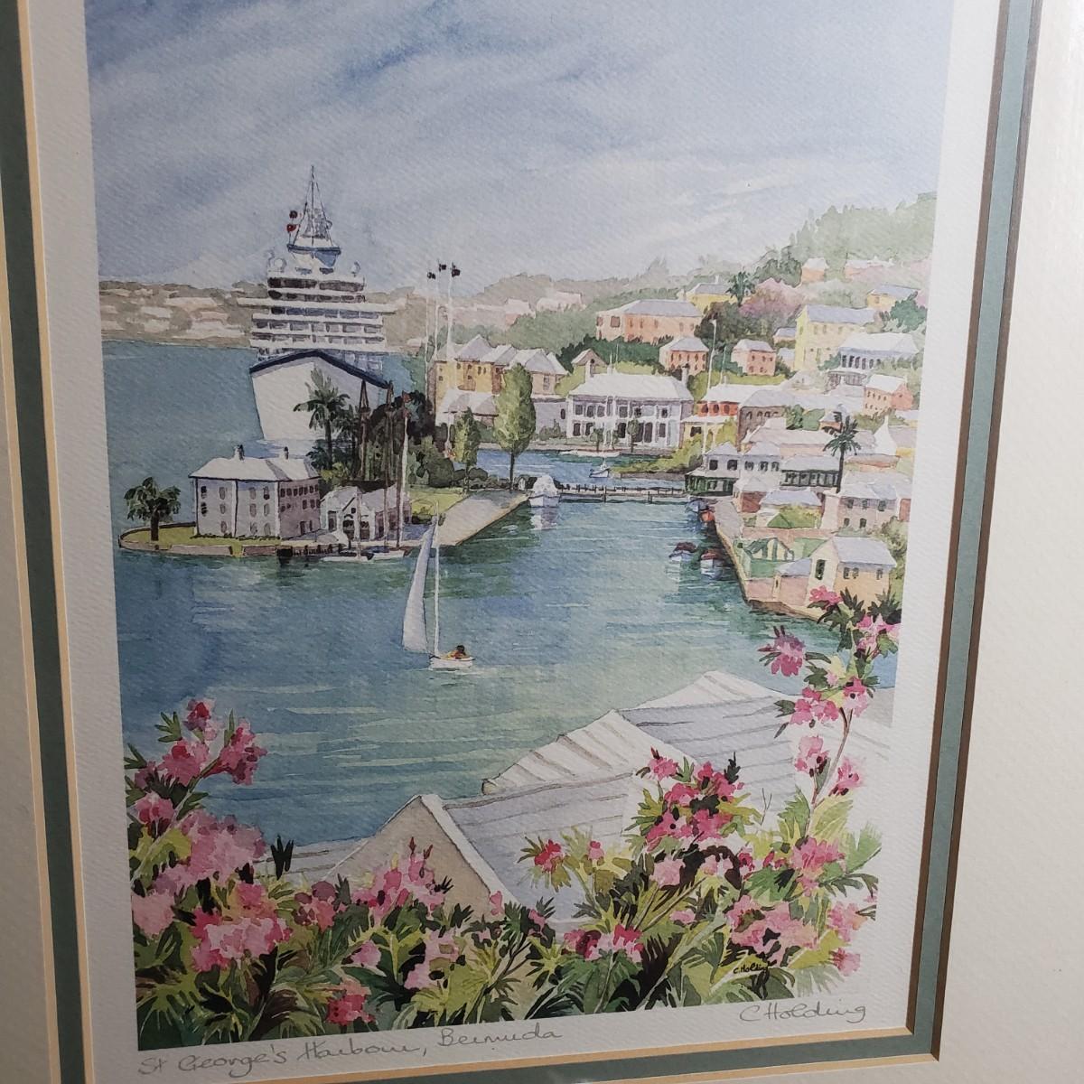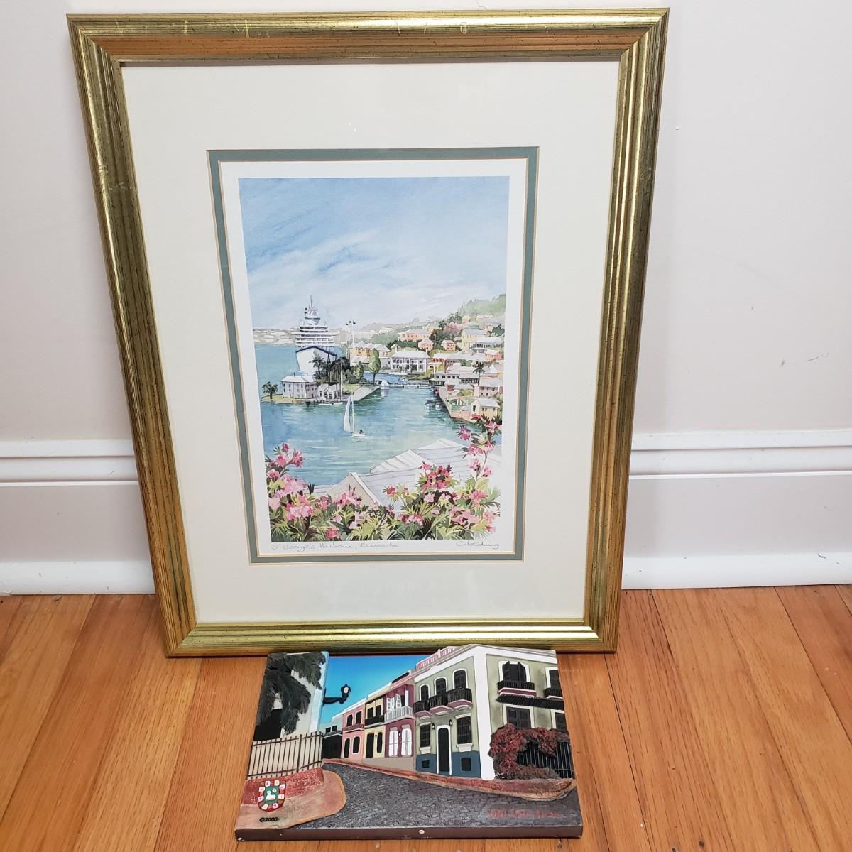 LOT 39L: St. George's Harbour Watercolor by Carole Holding & Old San Juan Ceramic Plaque