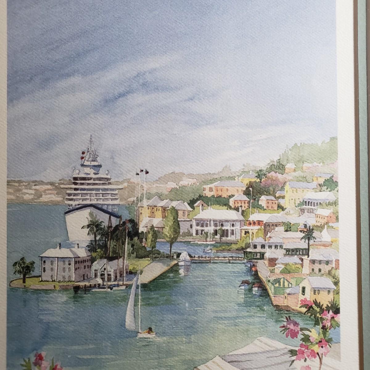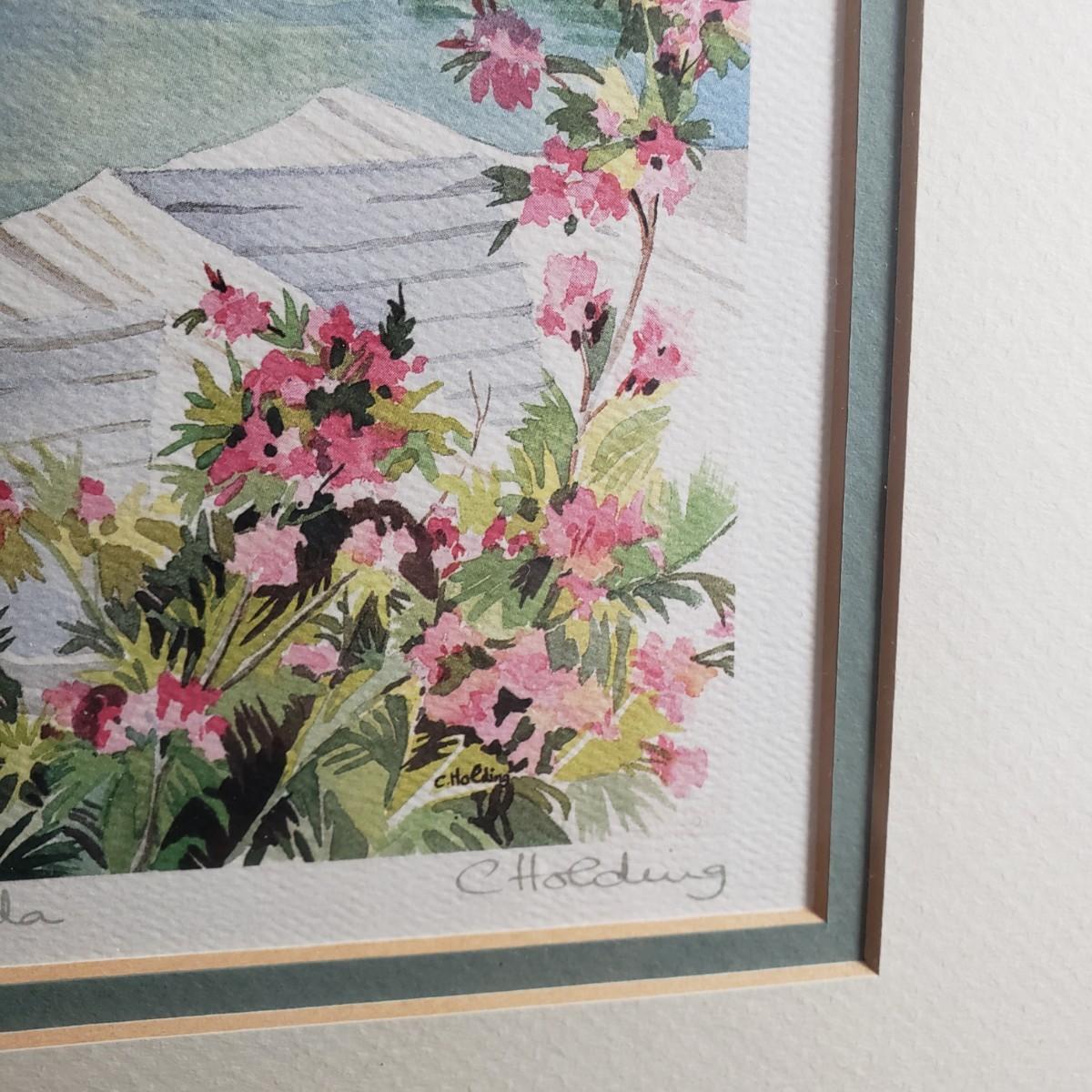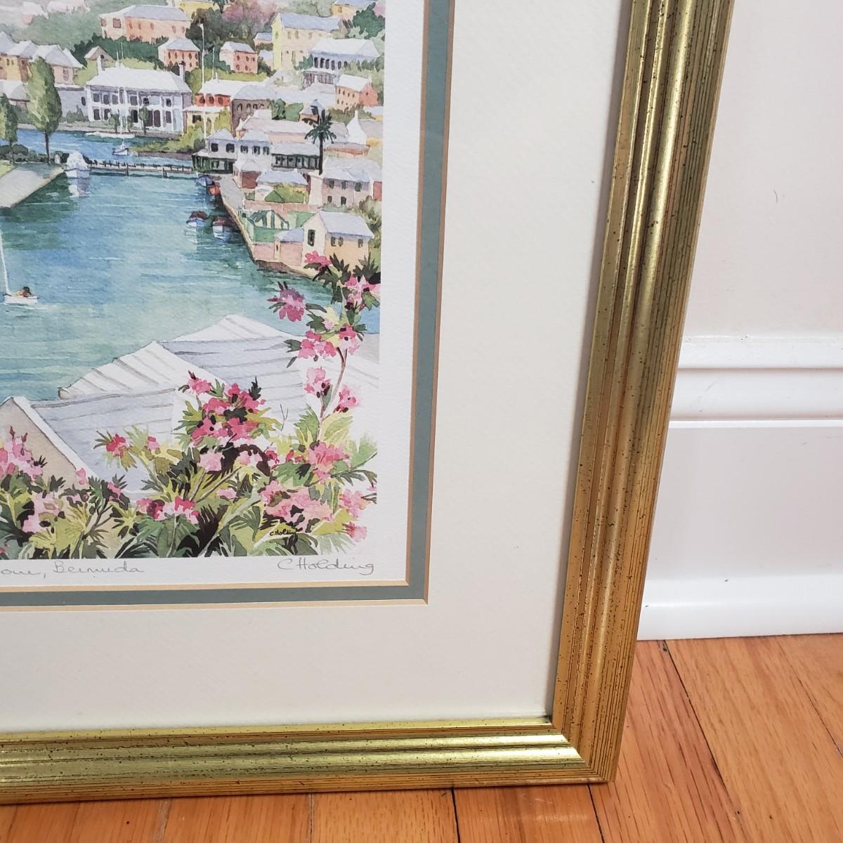 LOT 39L: St. George's Harbour Watercolor by Carole Holding & Old San Juan Ceramic Plaque