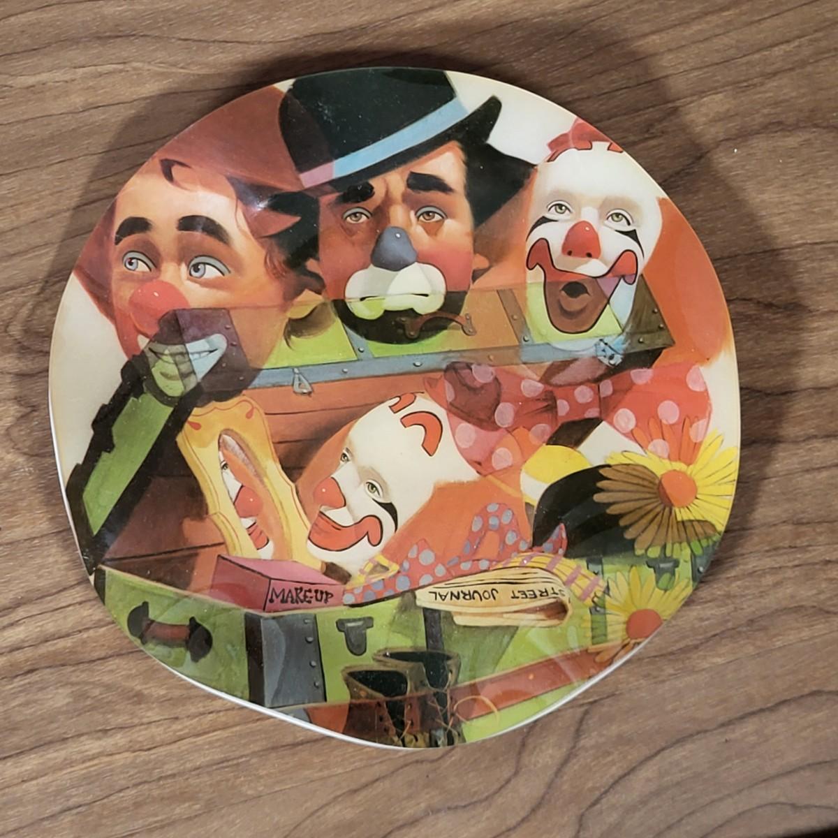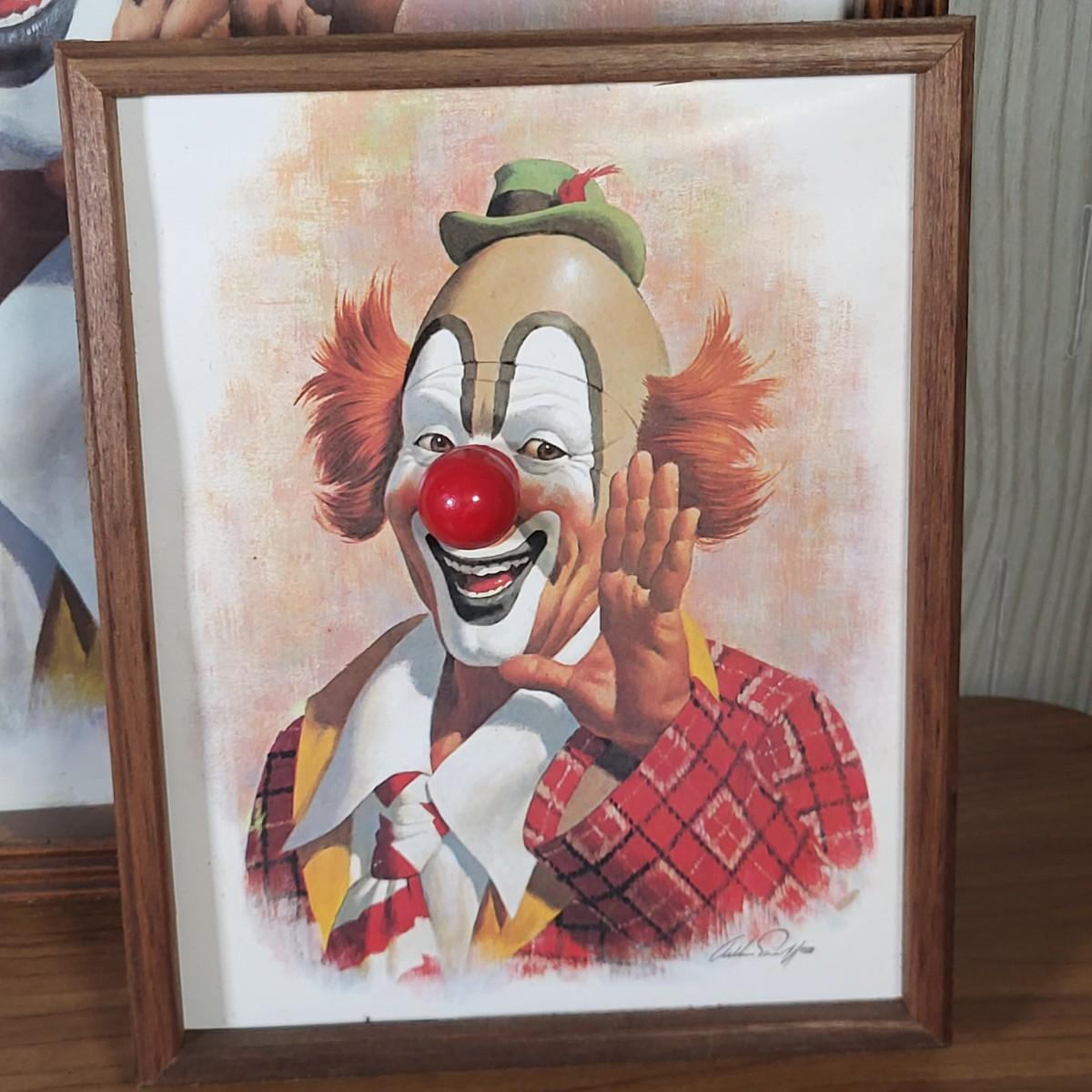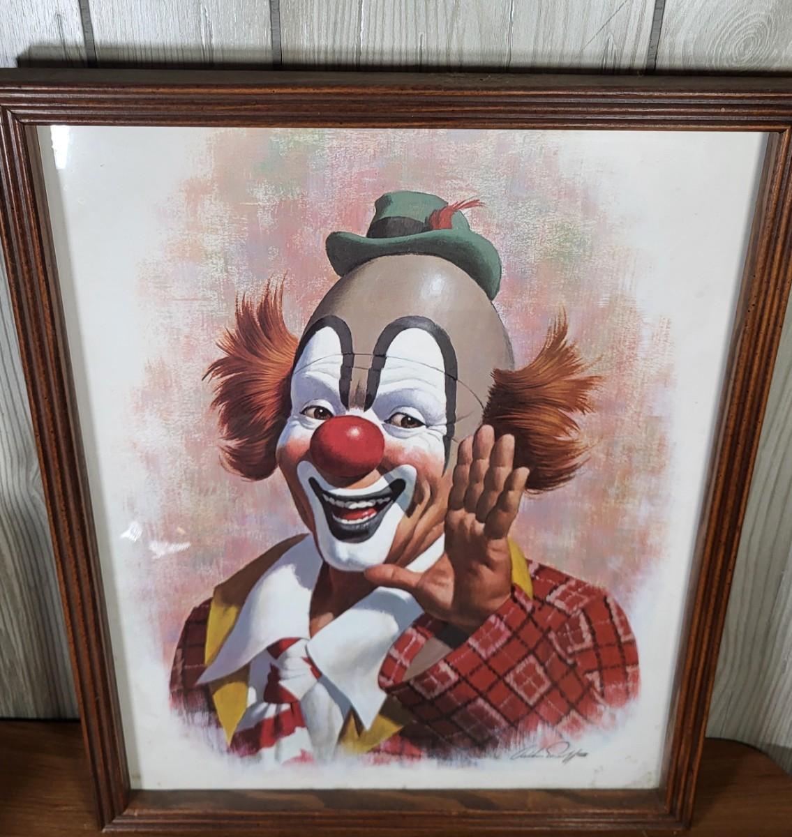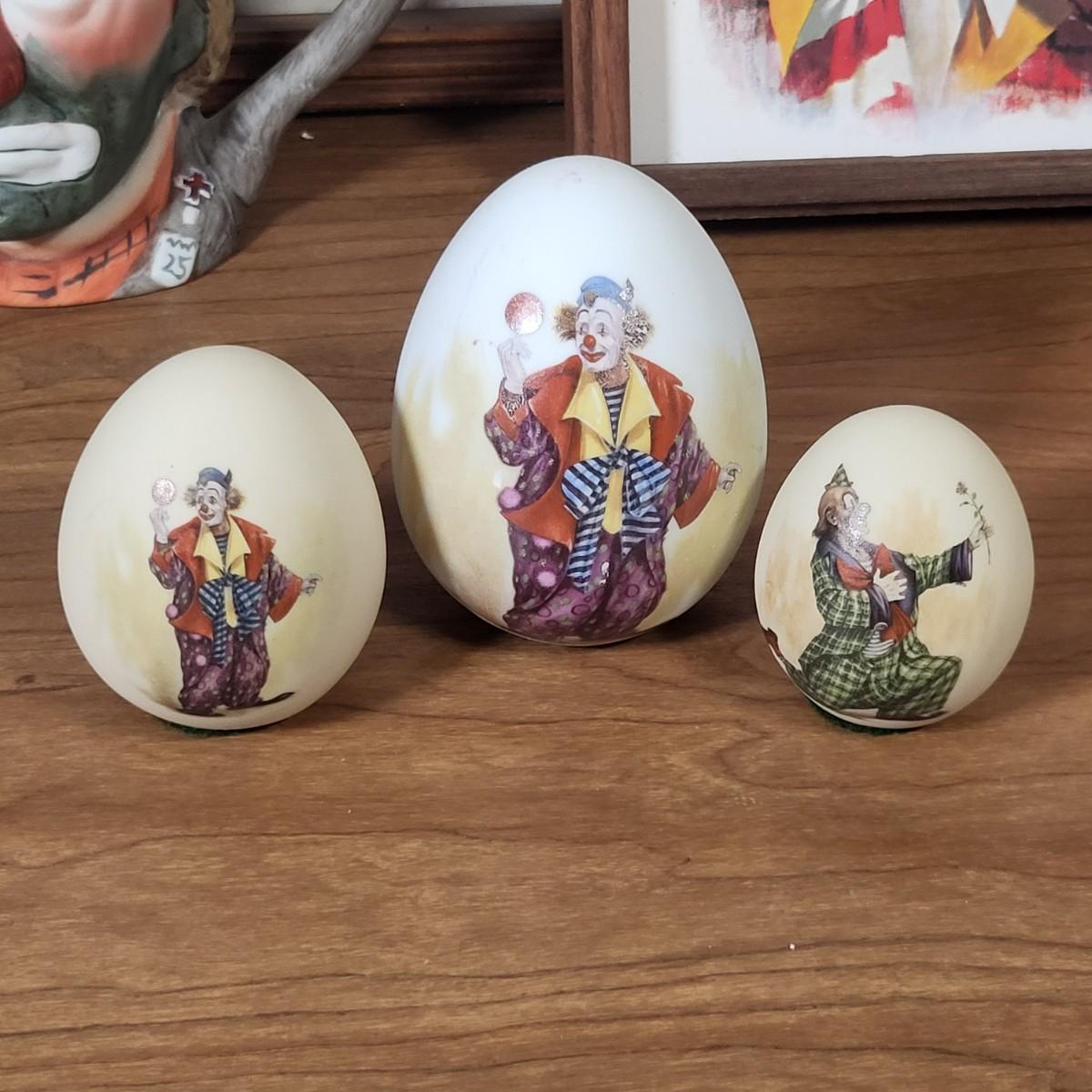 LOT 54B: Vintage Clown Collection Featuring Painted Eggs, Clown Plates and Artwork