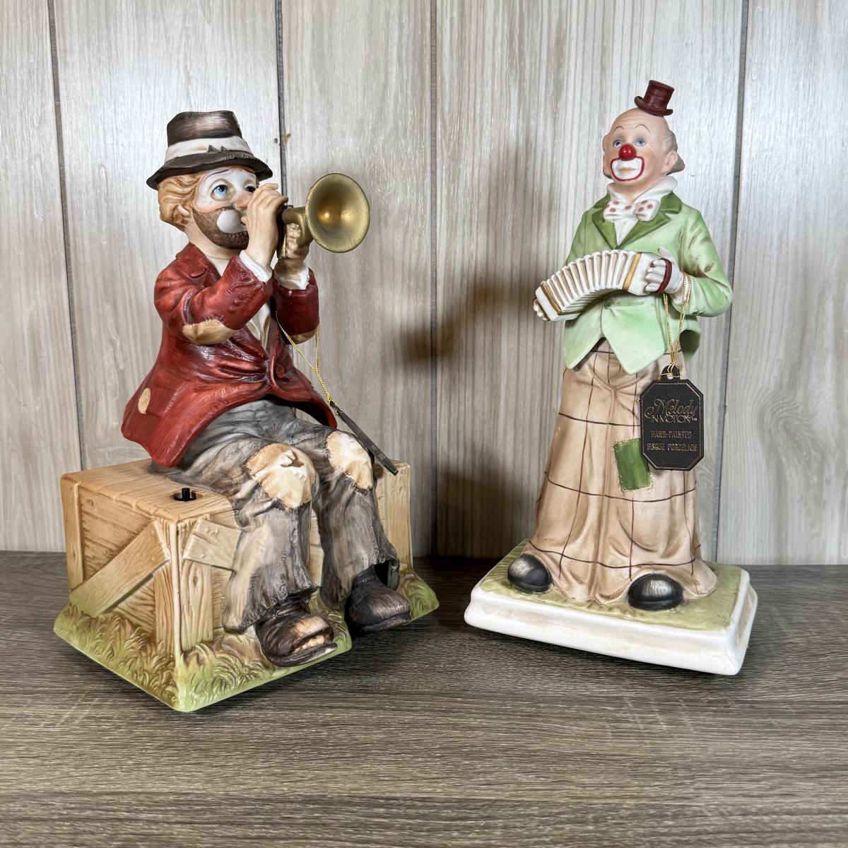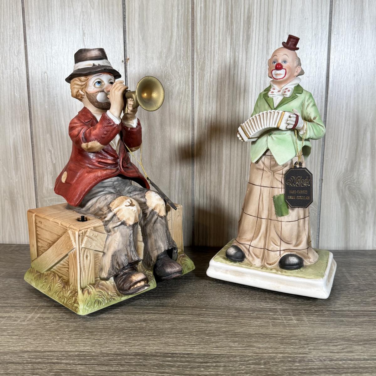 LOT 61B: Two Melody in Motion Hand-Painted Bisque Porcelain Clown Music Boxes